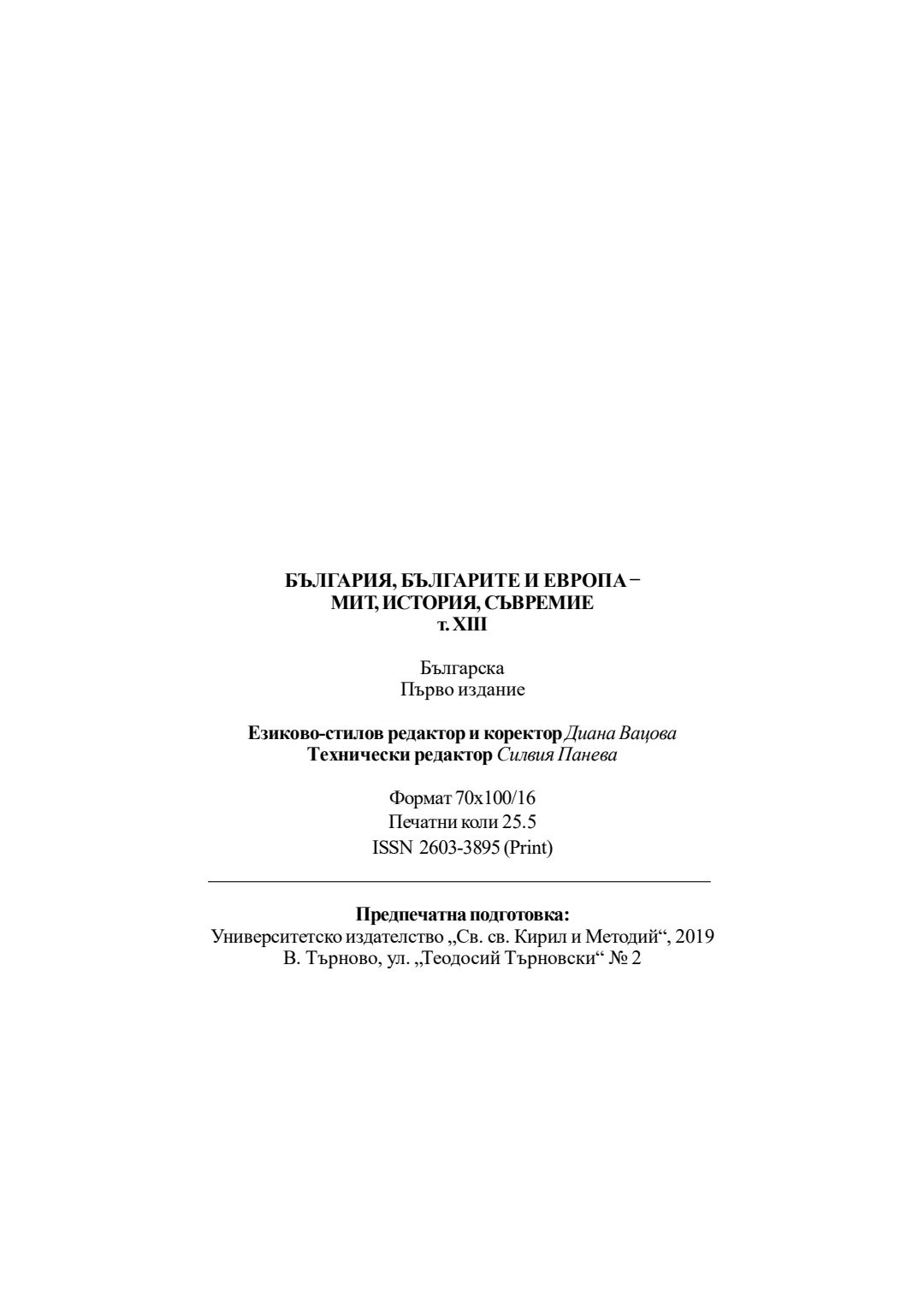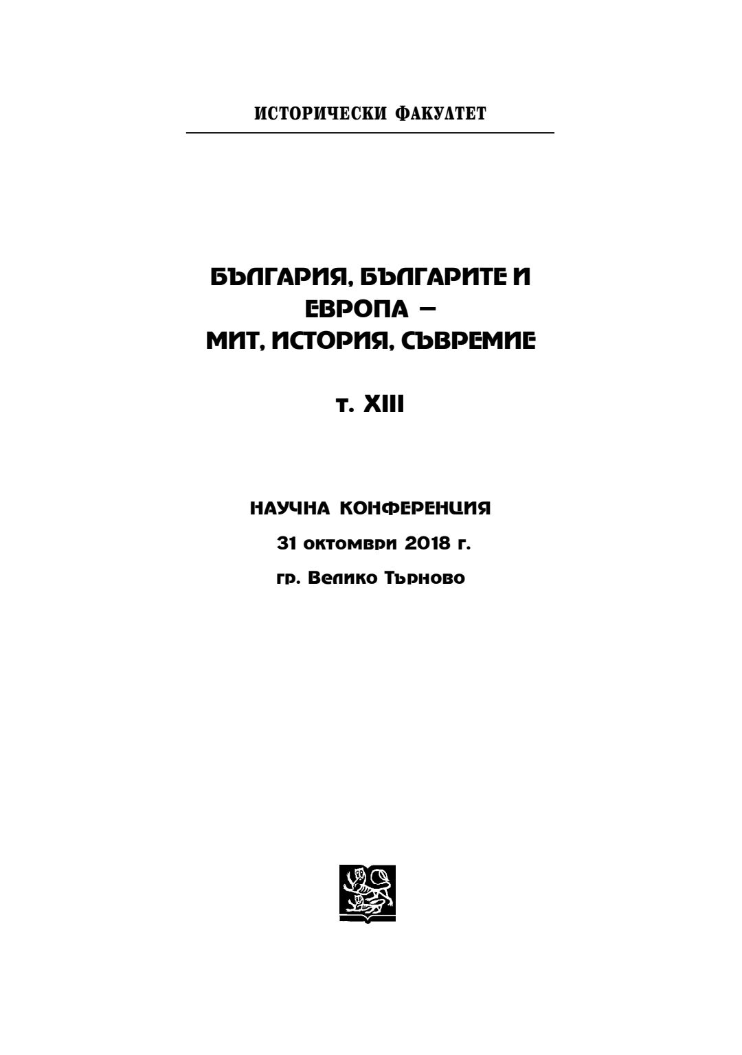 [Т. 13.] България, българите и Европа - мит, история, съвремие : Научна конференция 31 октомври 2018 г., В. Търново