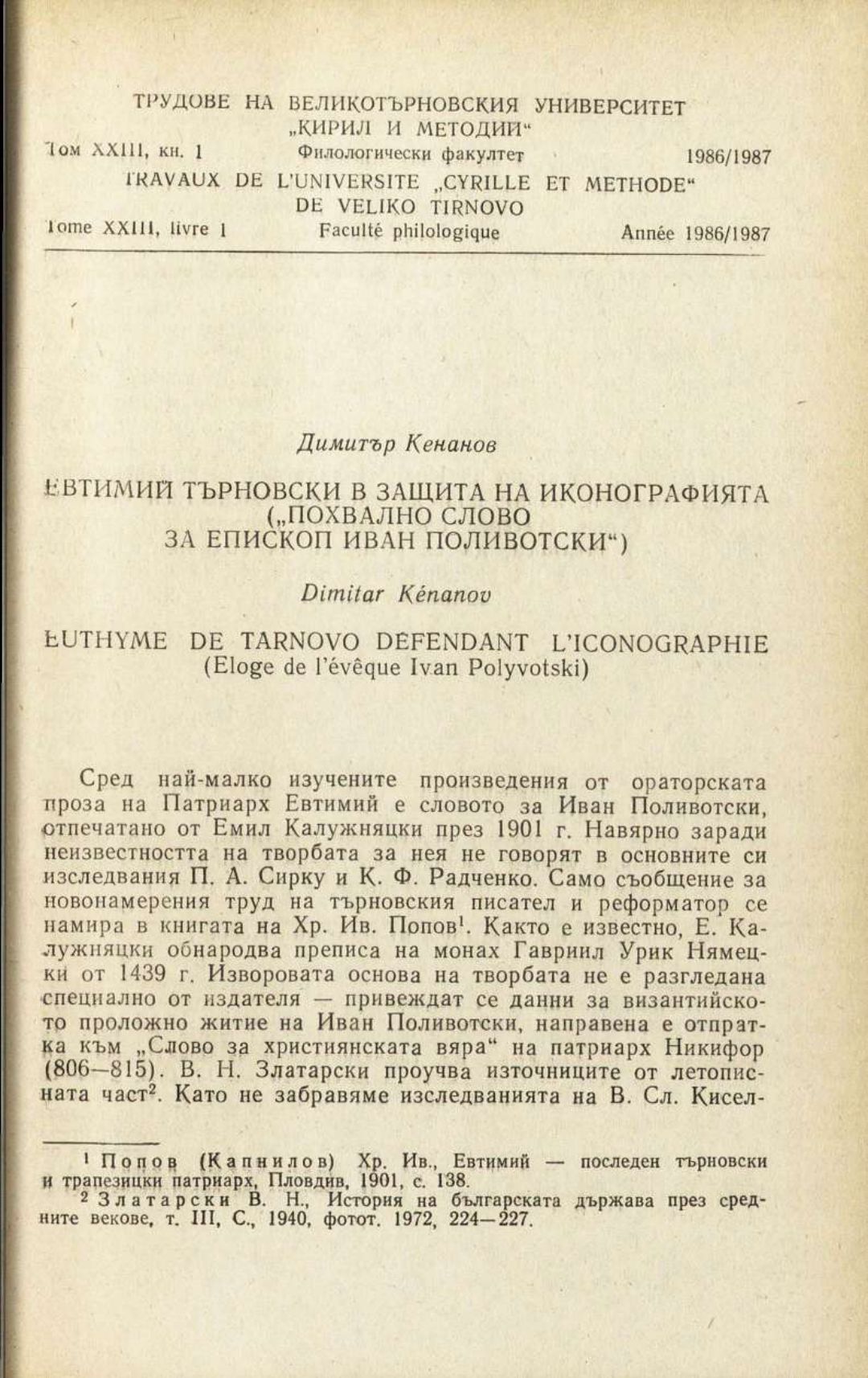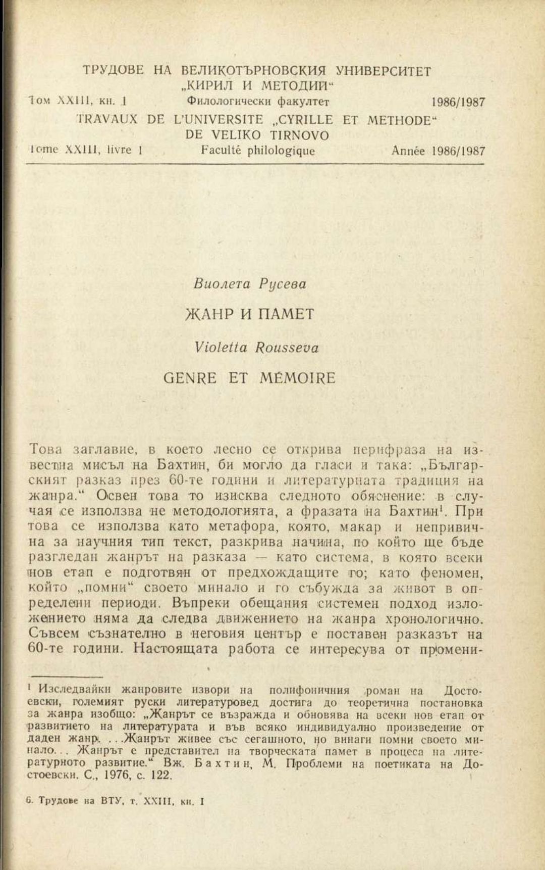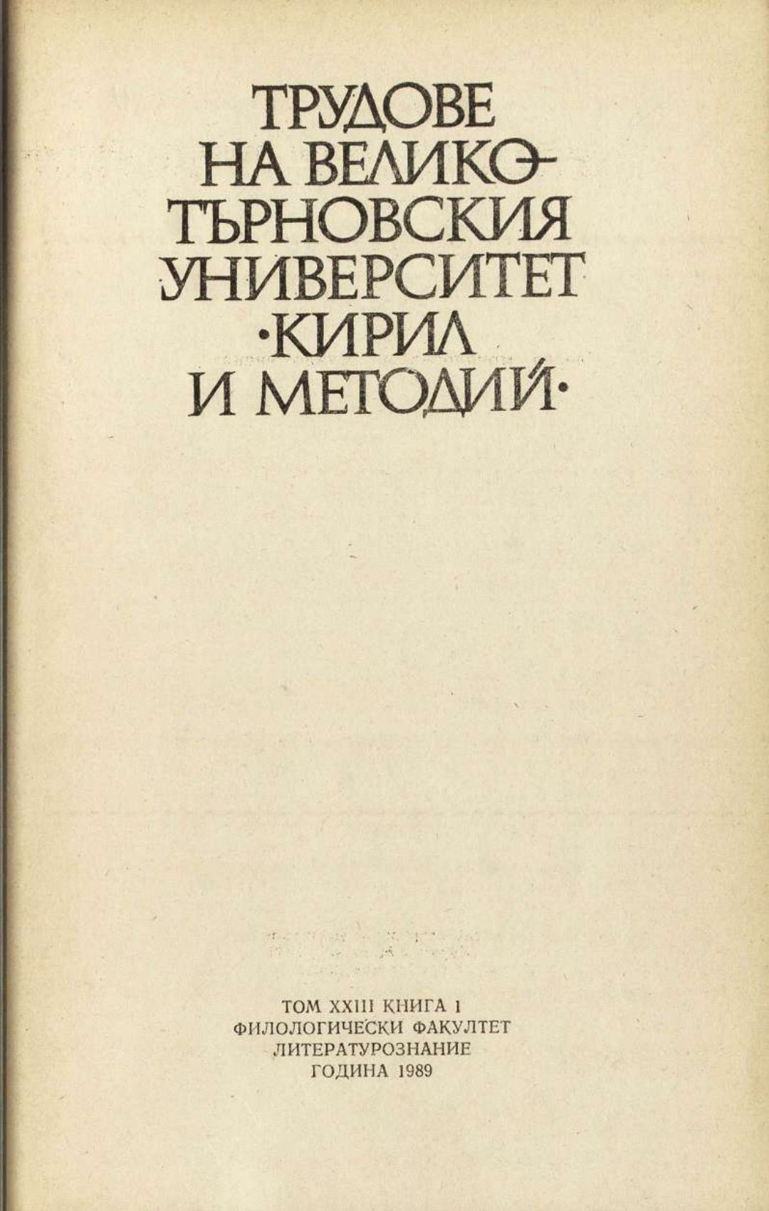 Том 23. Кн.1. Трудове на Великотърновския университет "Св. св. Кирил и Методий". Филологически факултет = Travaux de L'universite St. St. Cyrille et Methode de Veliko Tirnovo. Faculte de philologue Литературознание