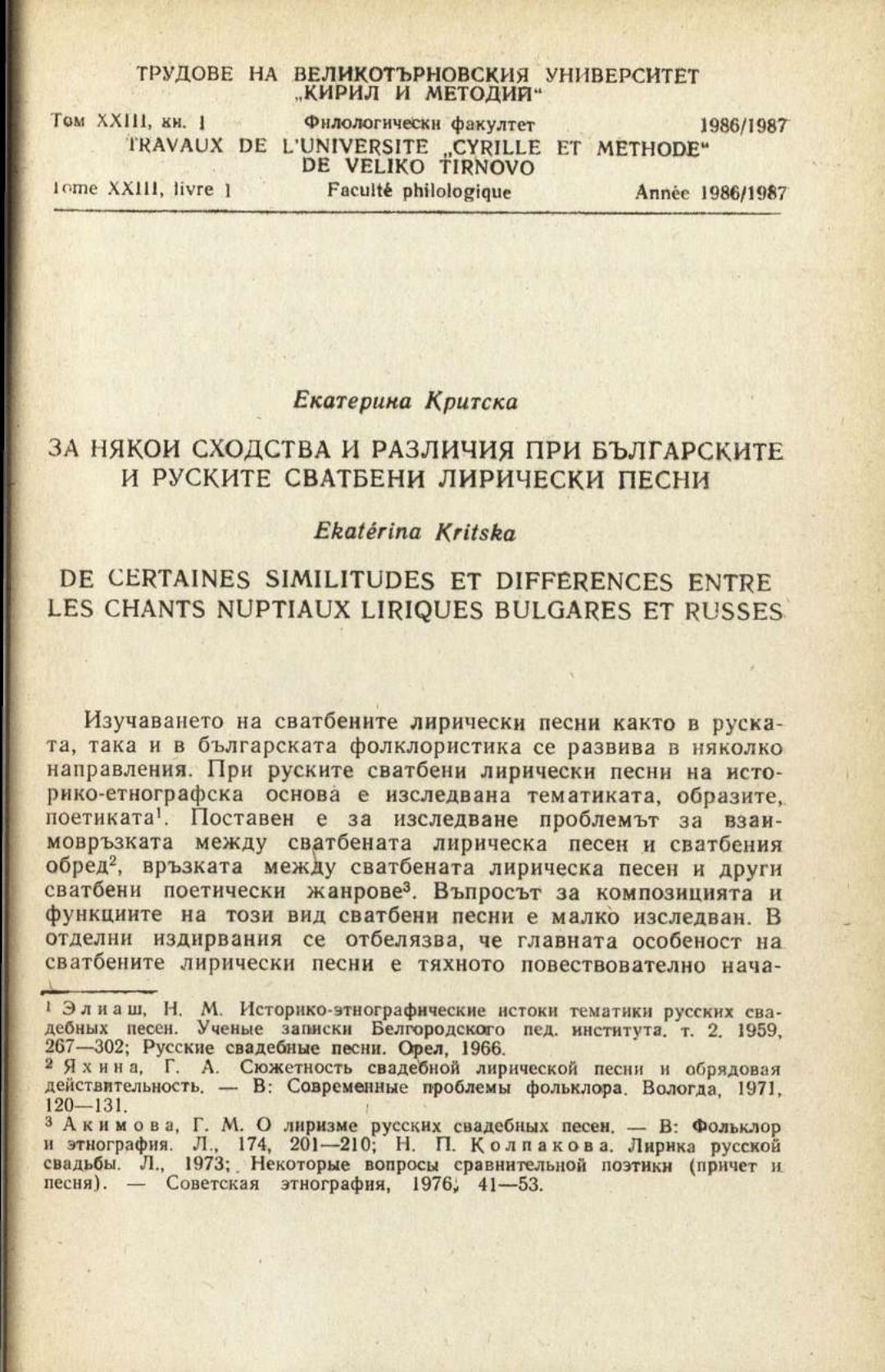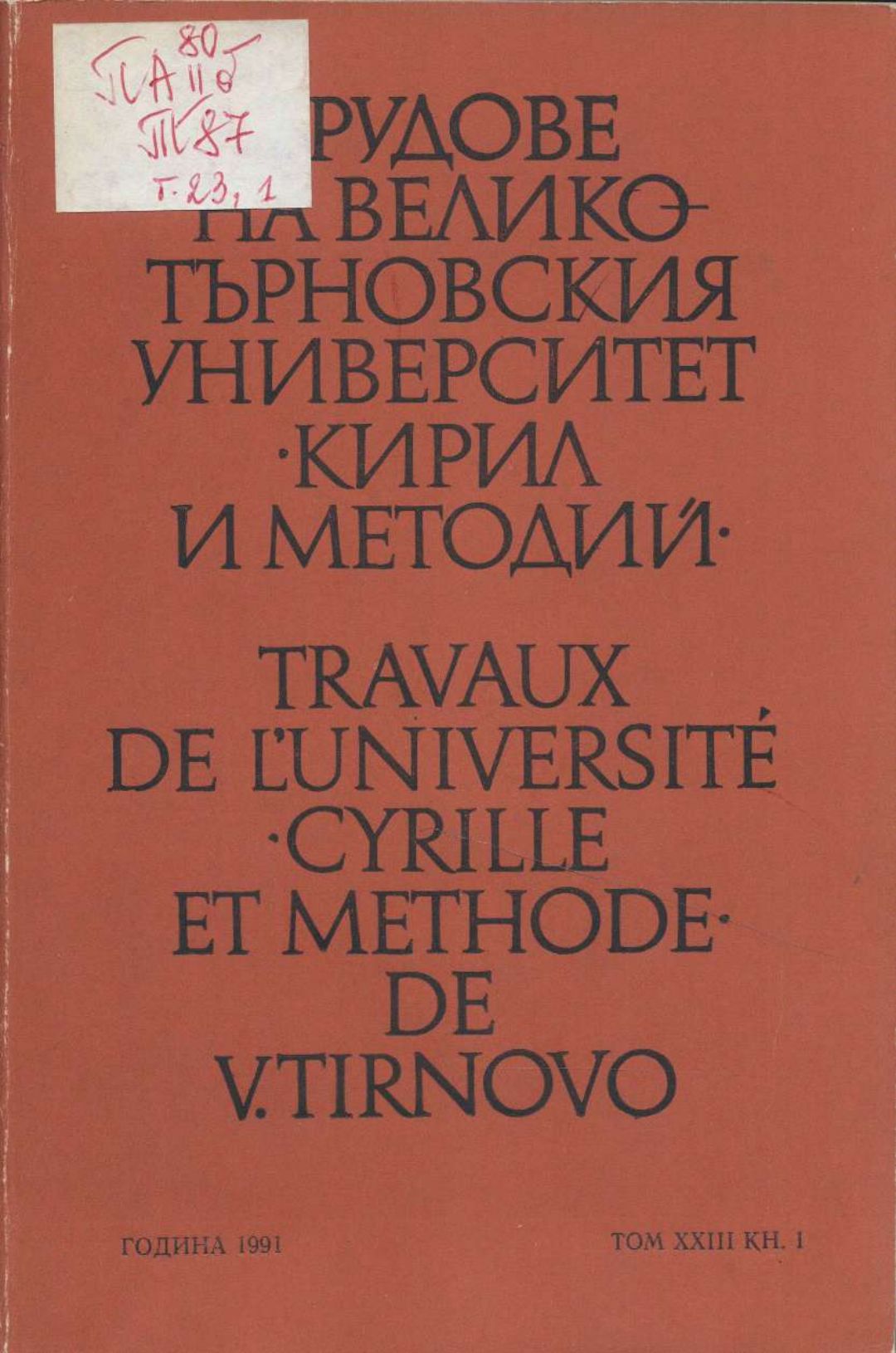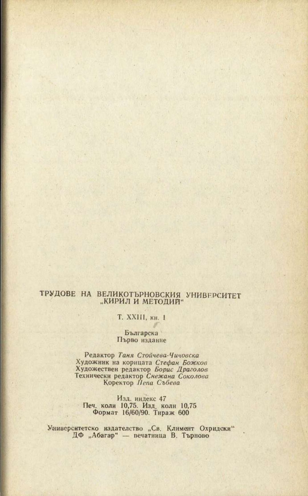 Том 23. Кн.1. Трудове на Великотърновския университет "Св. св. Кирил и Методий". Филологически факултет = Travaux de L'universite St. St. Cyrille et Methode de Veliko Tirnovo. Faculte de philologue Литературознание