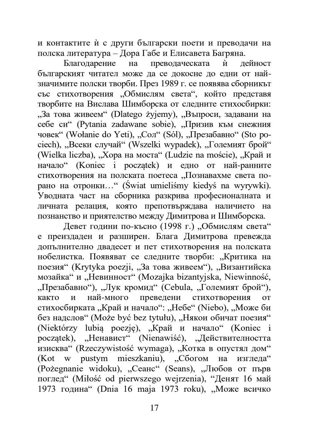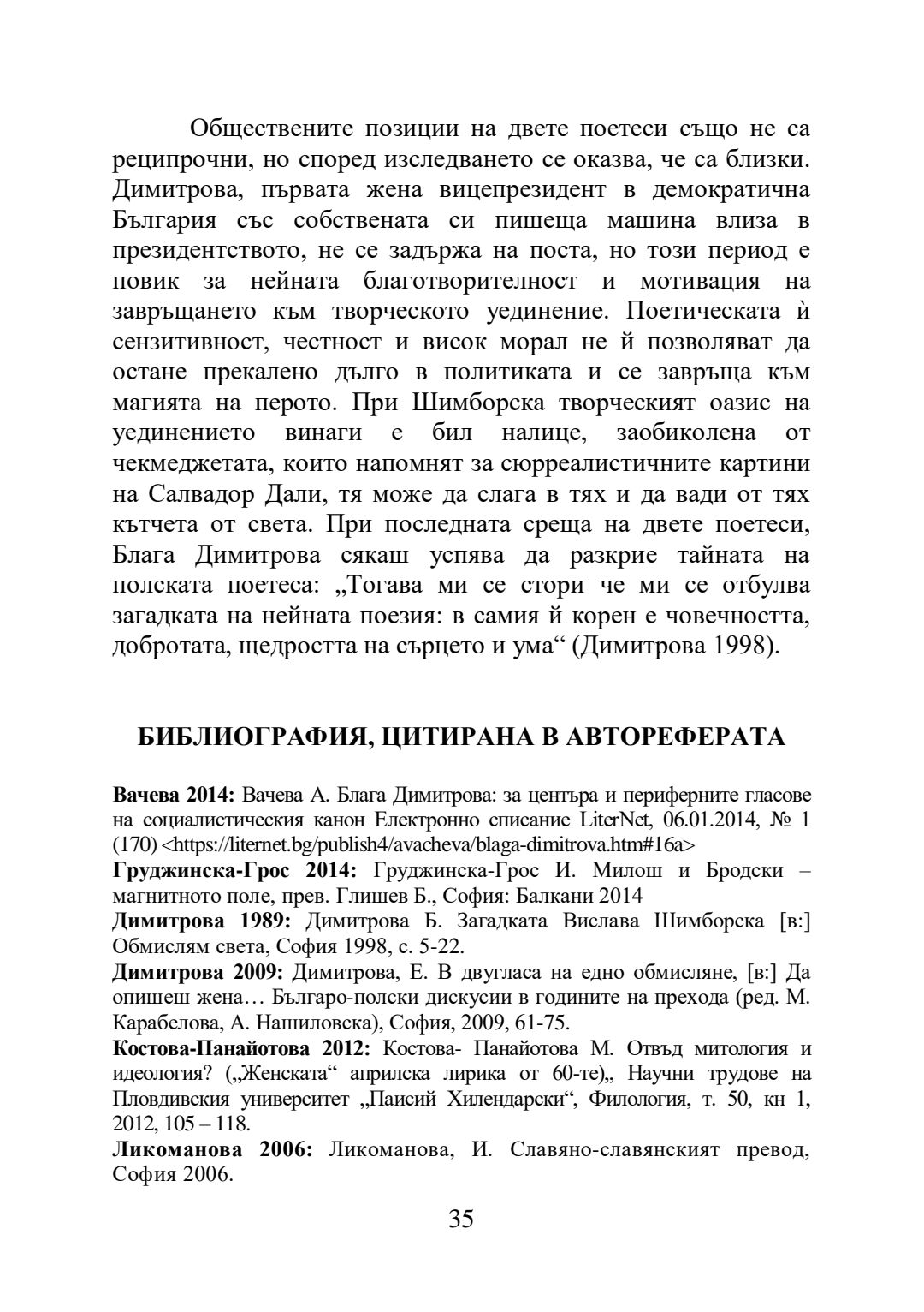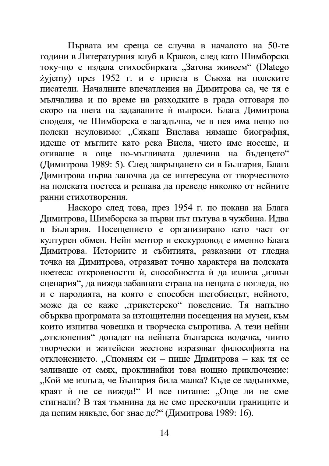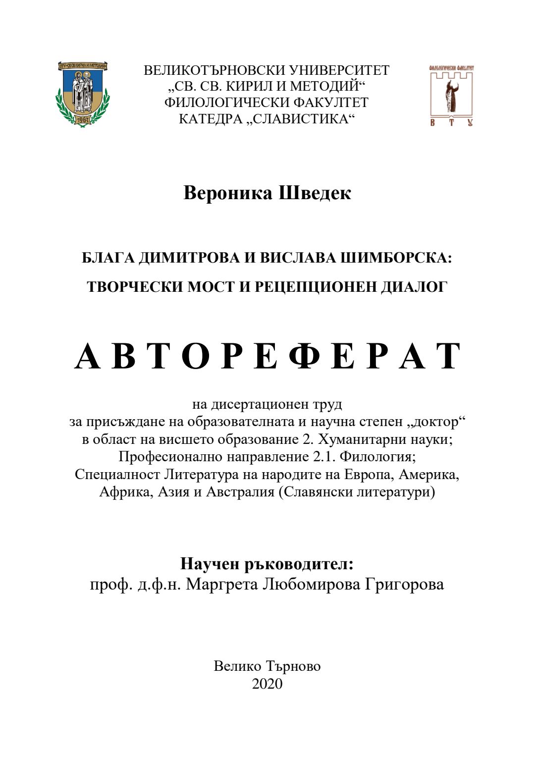 Блага Димитрова и Вислава Шимборска: творчески мост и рецепционен диалог : Автореферат / Вероника Шведек ; Науч. ръководител Маргрета Любомирова Григорова