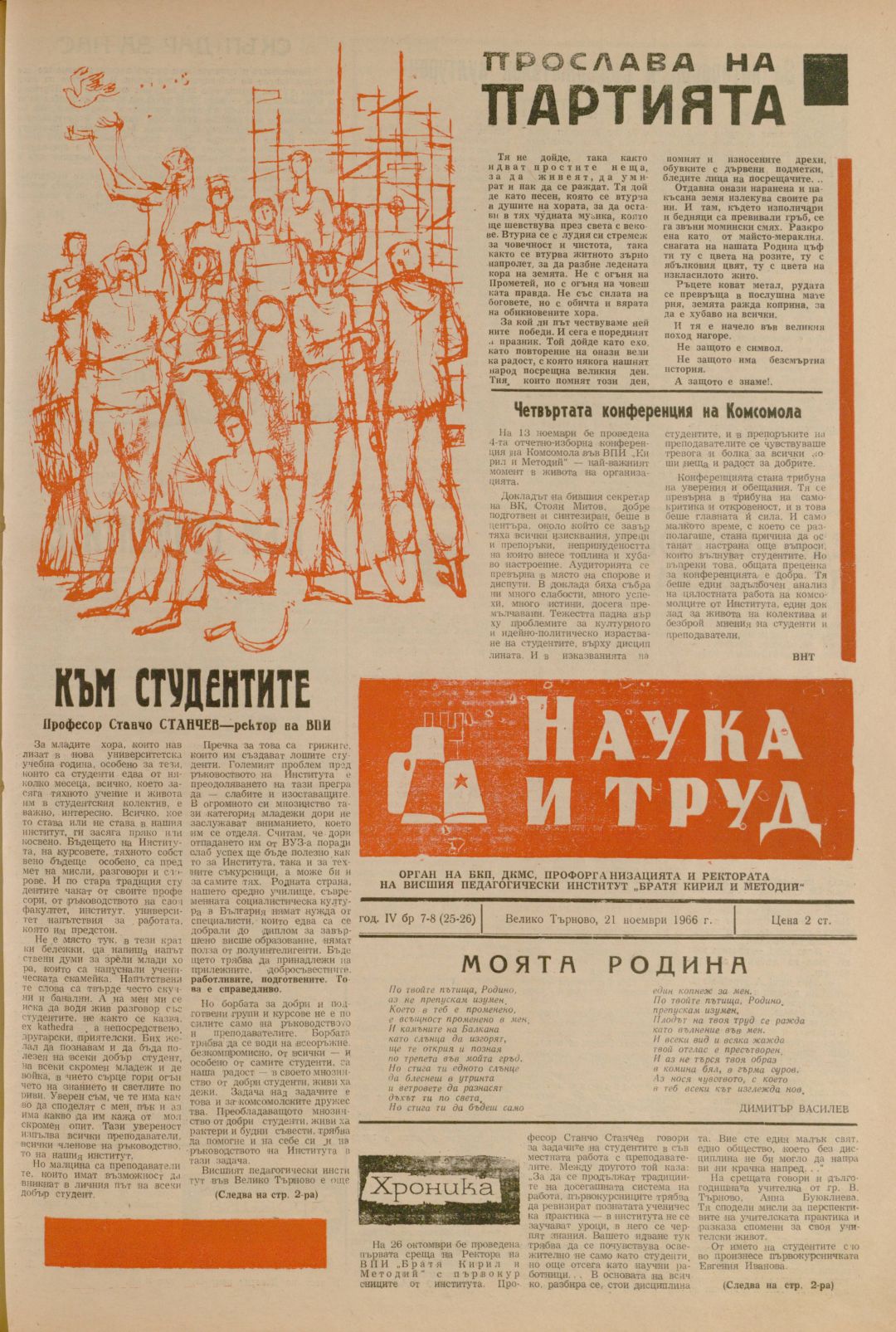 Год. 4, 7-8 (25-26). Наука и труд : Орган на БКП, ДКМС и Профорганизацията и Ректората на ВПИ "Братя Кирил и Методий"