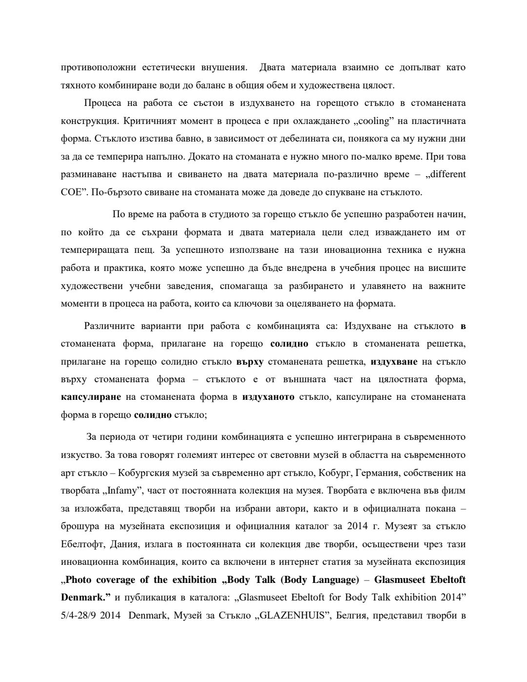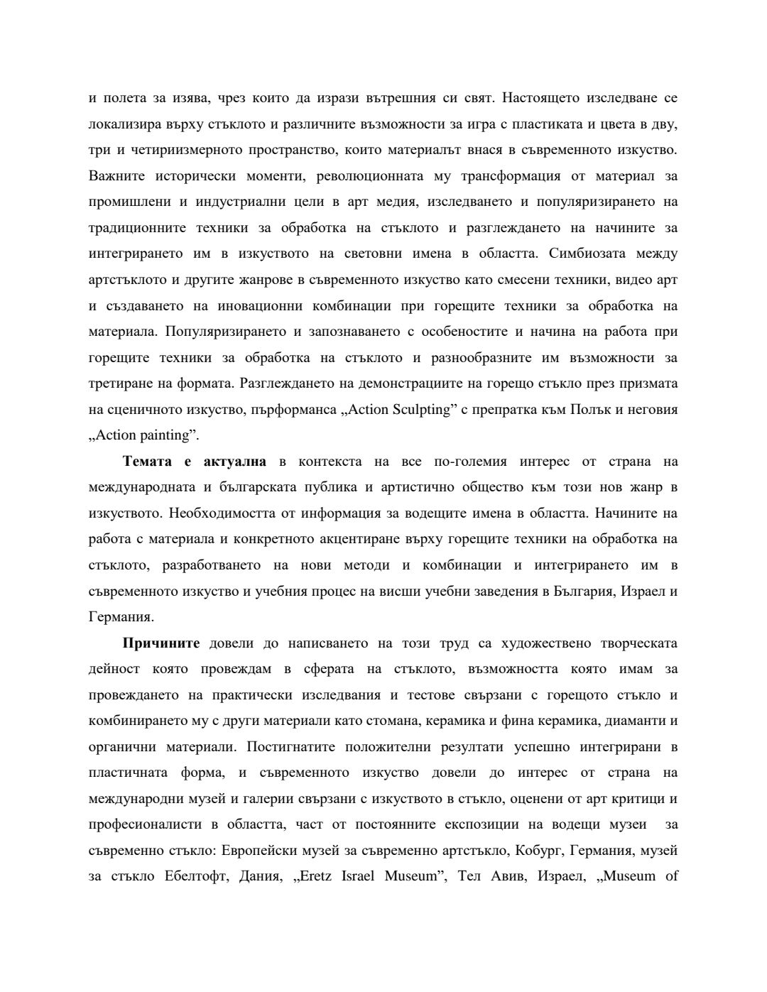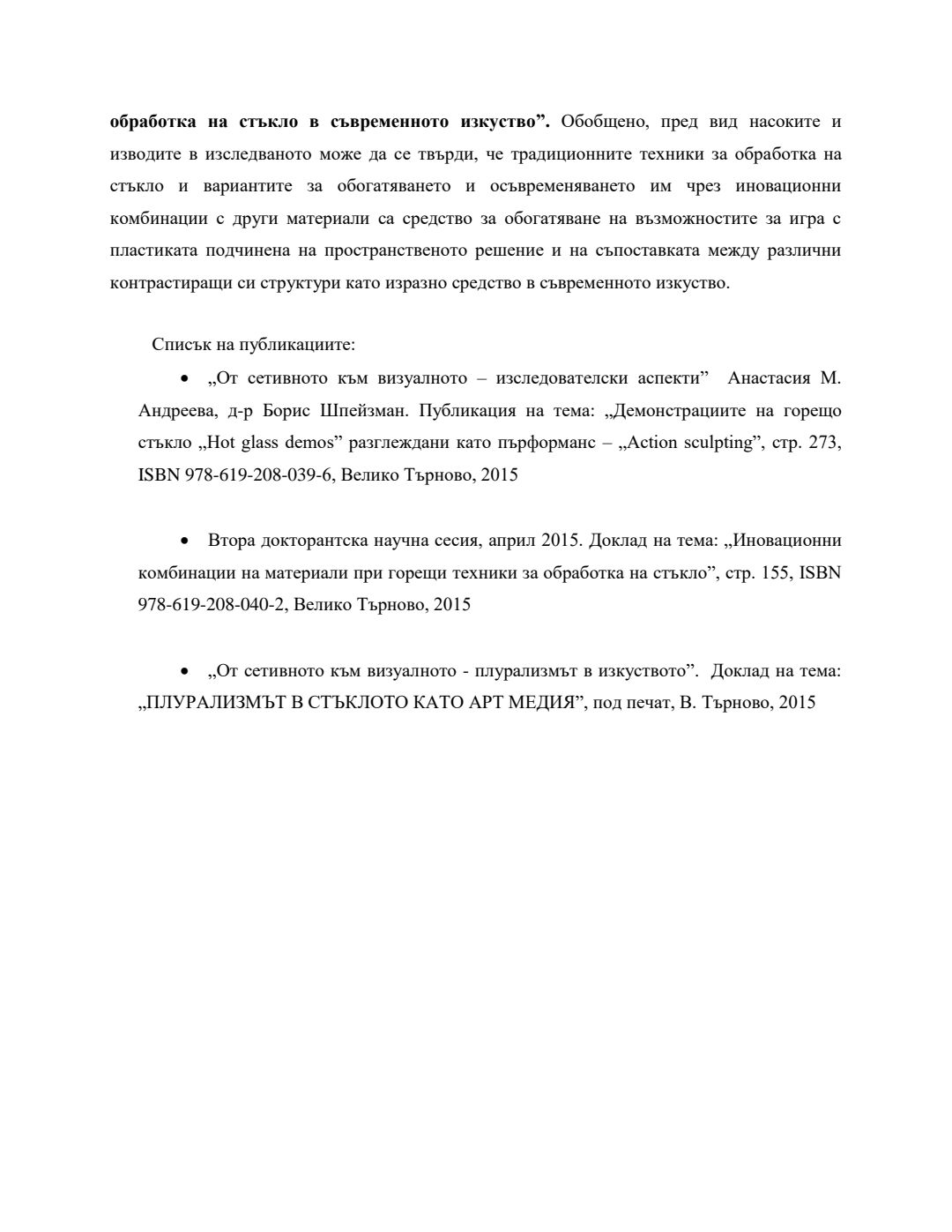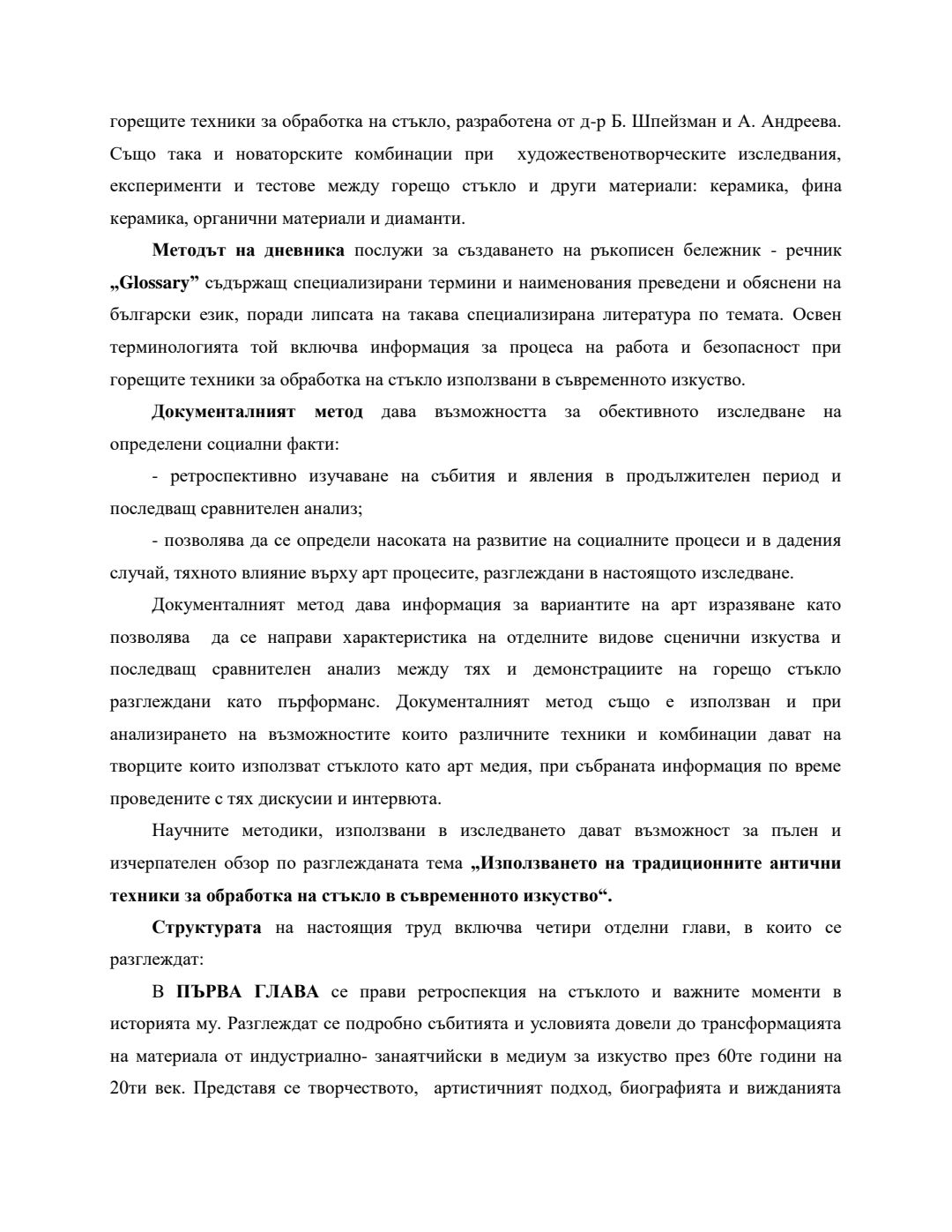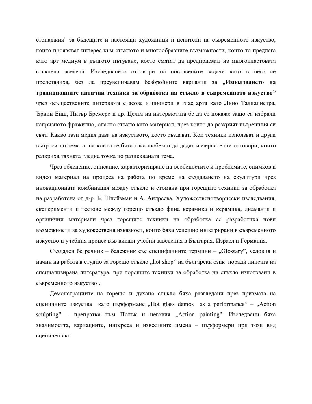 Използването на античните традиционни техники за обработка на стъклото в съвременното изкуство : Автореферат / Анастасия Миланова Андреева ; Науч. ръководител Борис Шпейзман
