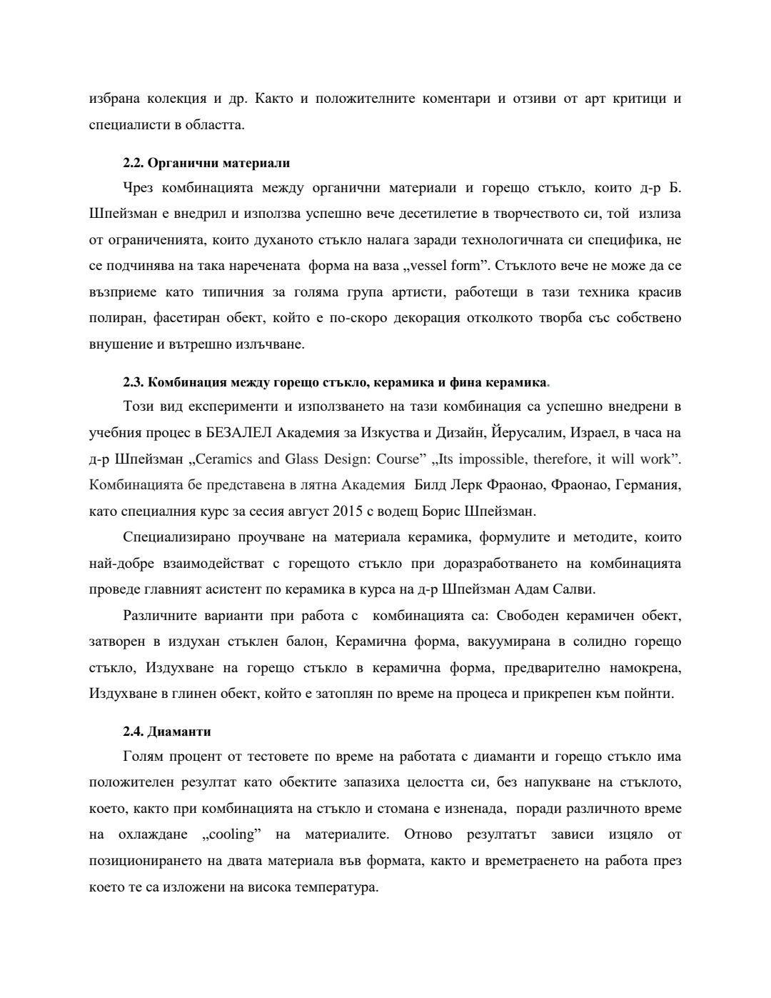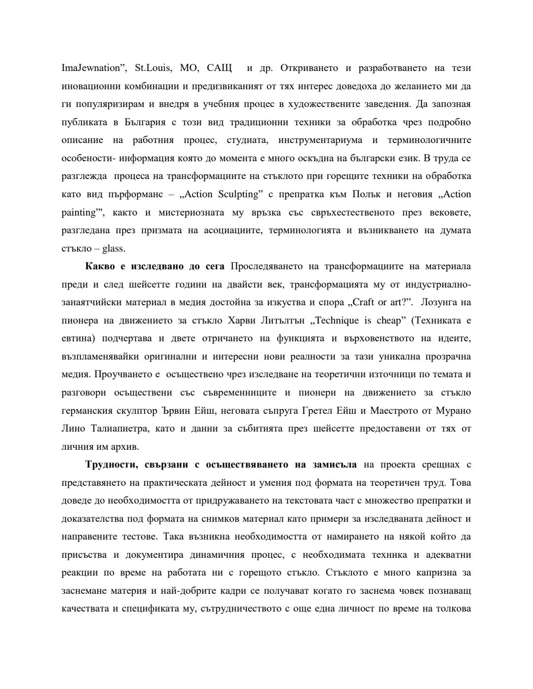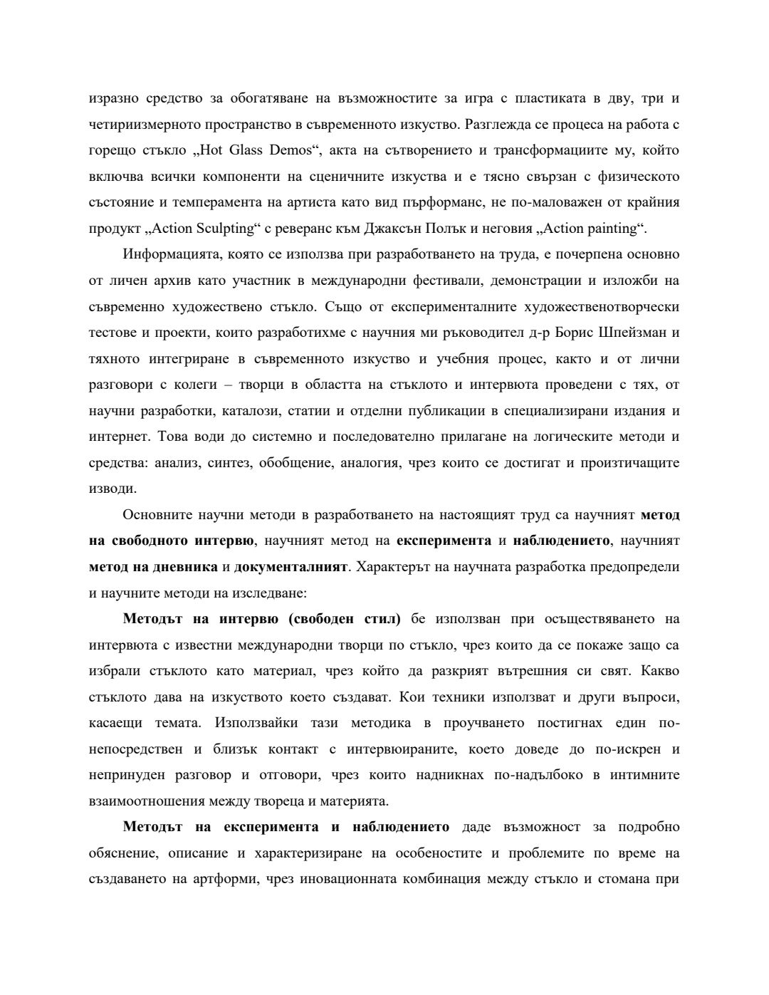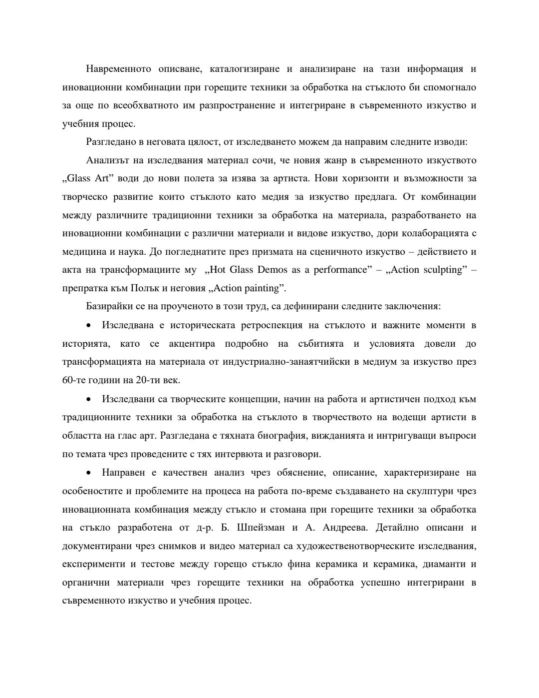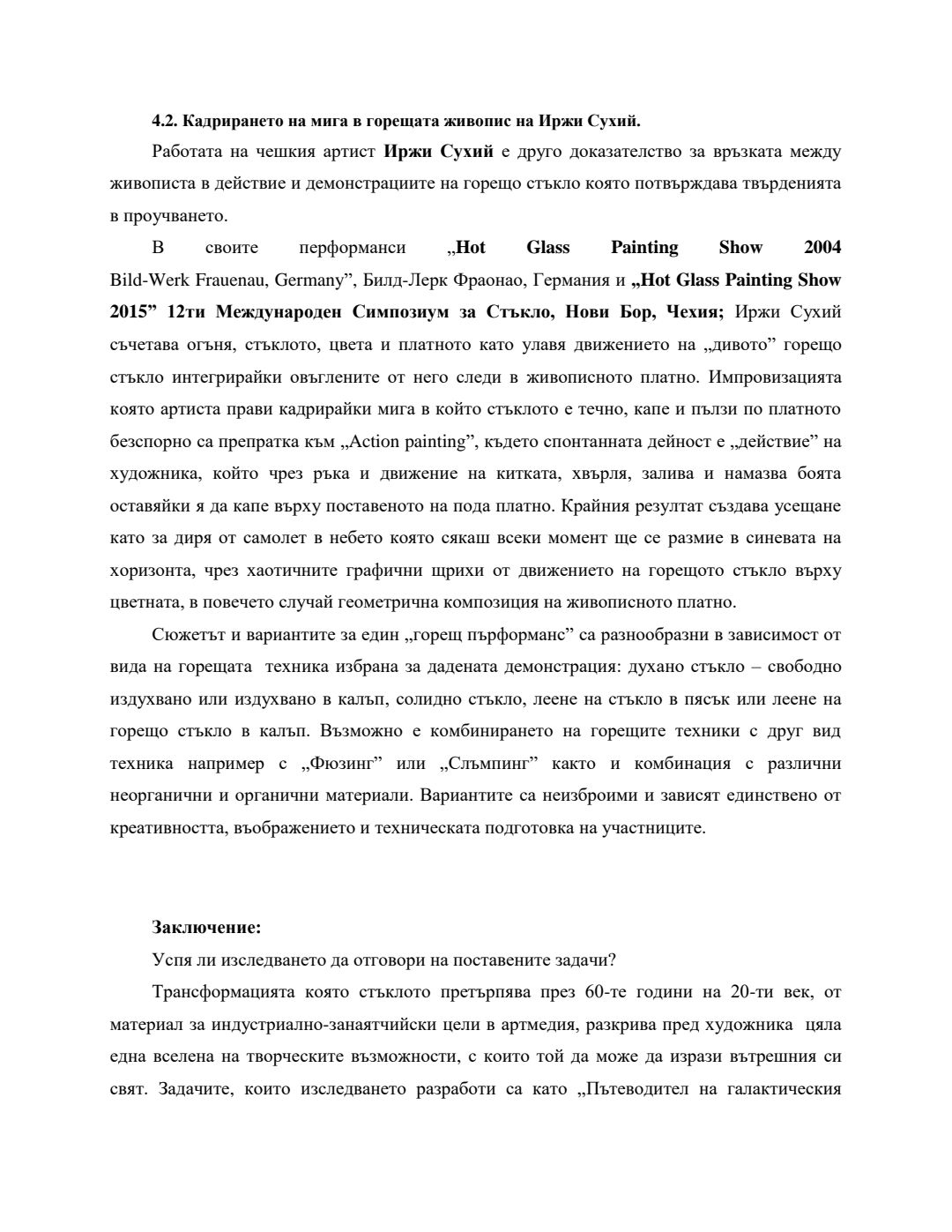 Използването на античните традиционни техники за обработка на стъклото в съвременното изкуство : Автореферат / Анастасия Миланова Андреева ; Науч. ръководител Борис Шпейзман