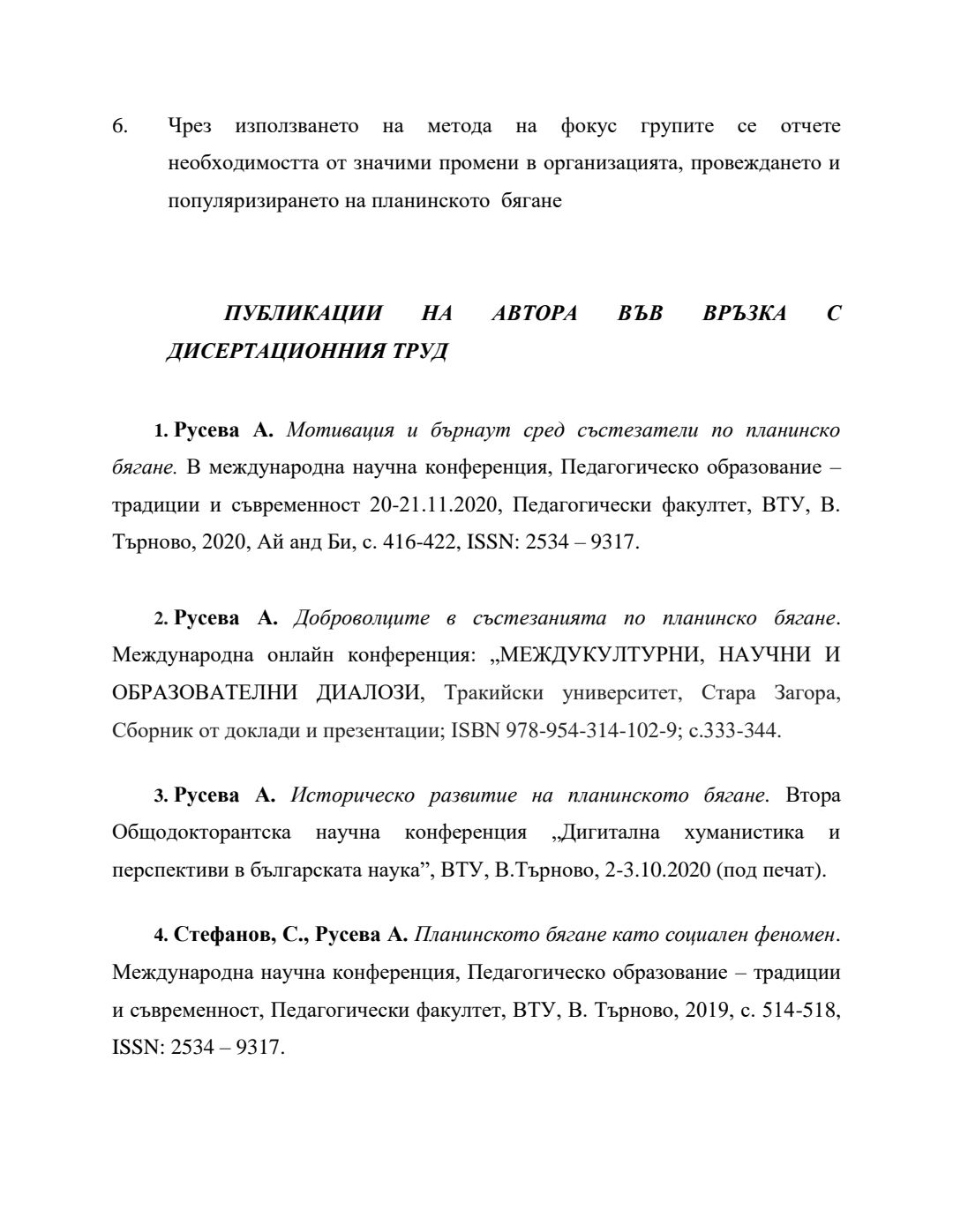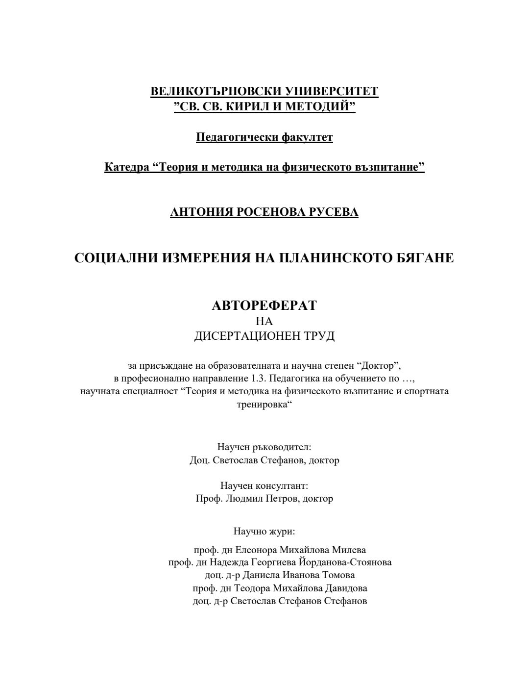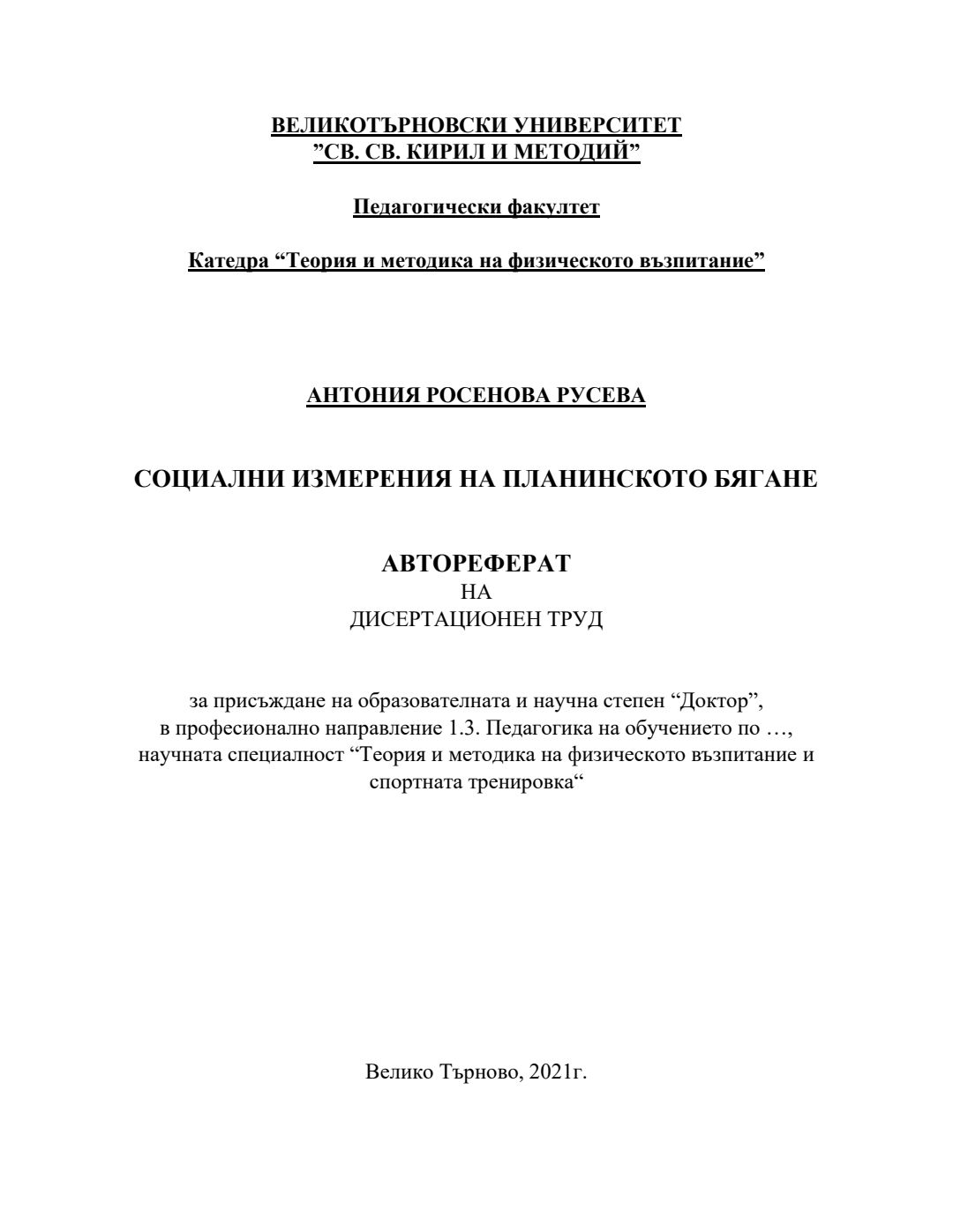 Социални измерения на планинското бягане : Автореферат / Антония Росенова Русева ; Науч. ръководител Светослав Стефанов