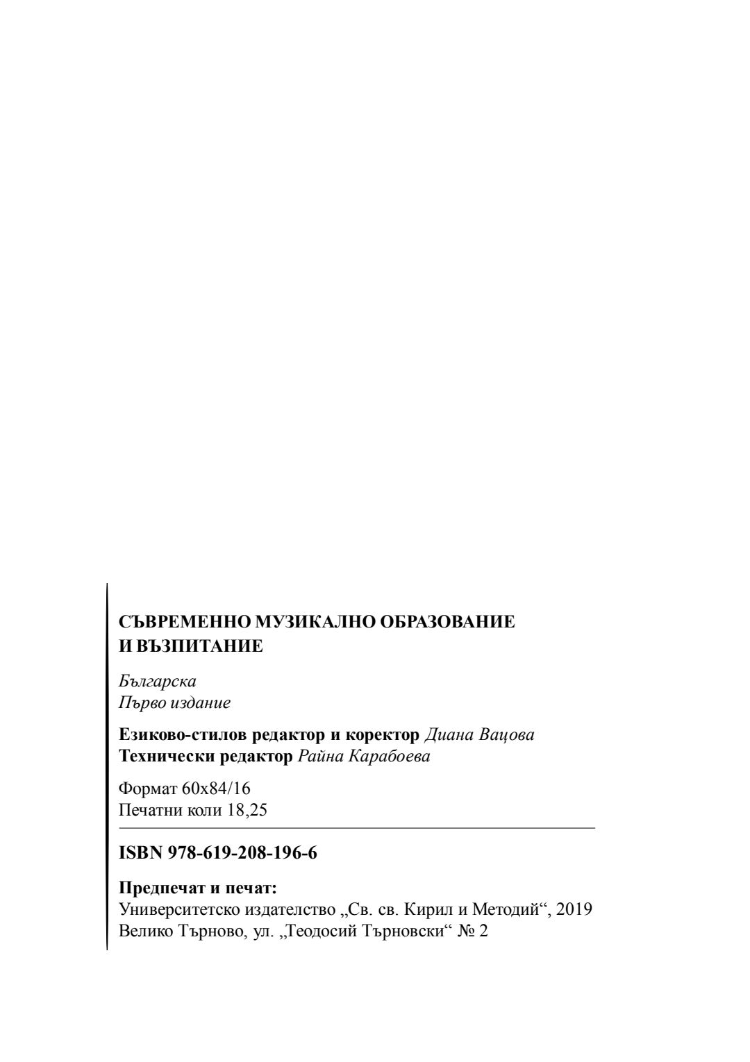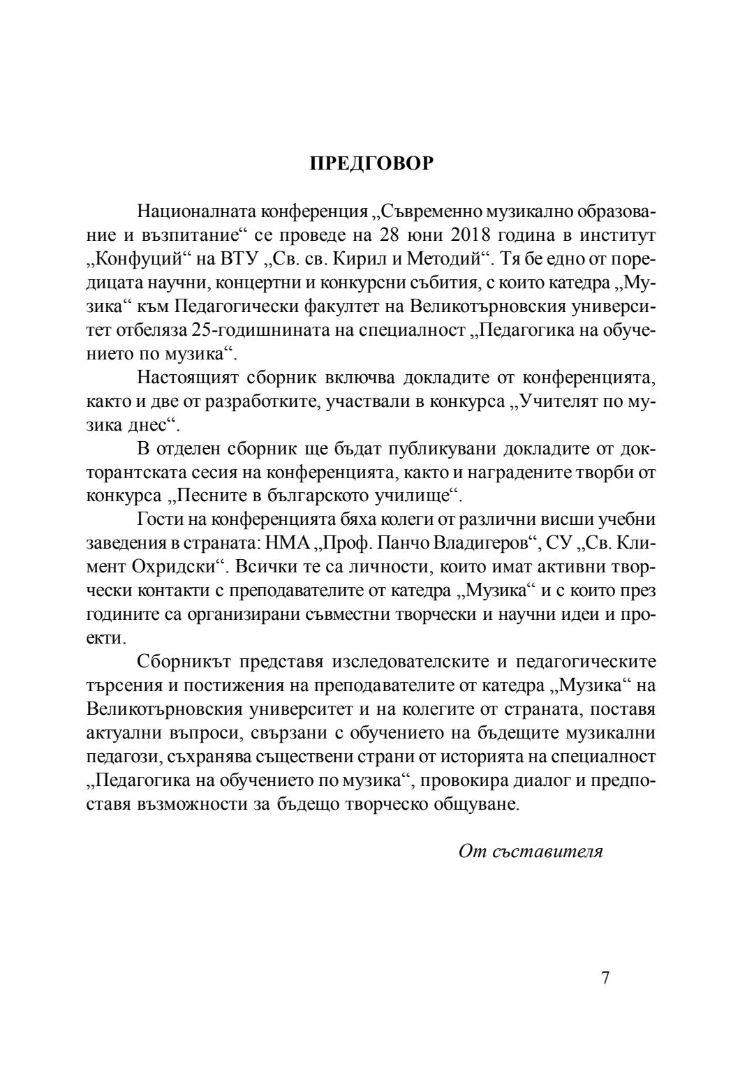 Съвременно музикално образование и възпитание : сборник доклади от юбилейната научна конференция по повод 25 години специалност "Педагогика на обучението по музика" във ВТУ "Св. св. Кирил и Методий", 28 юни 2018