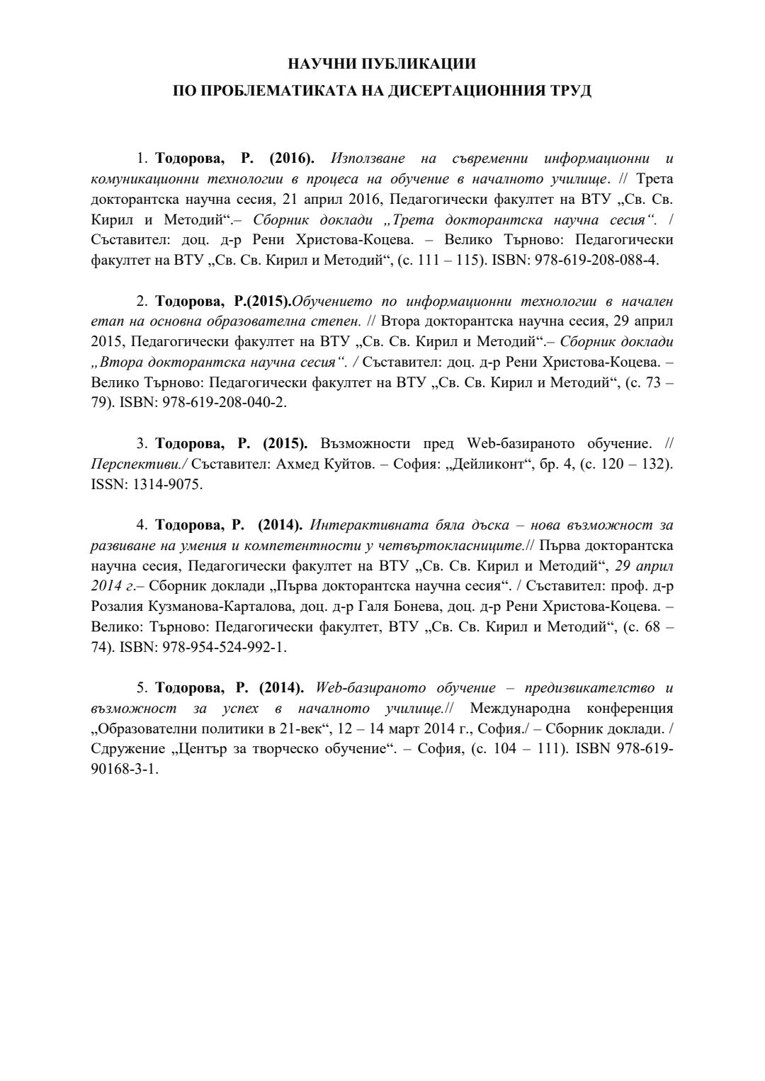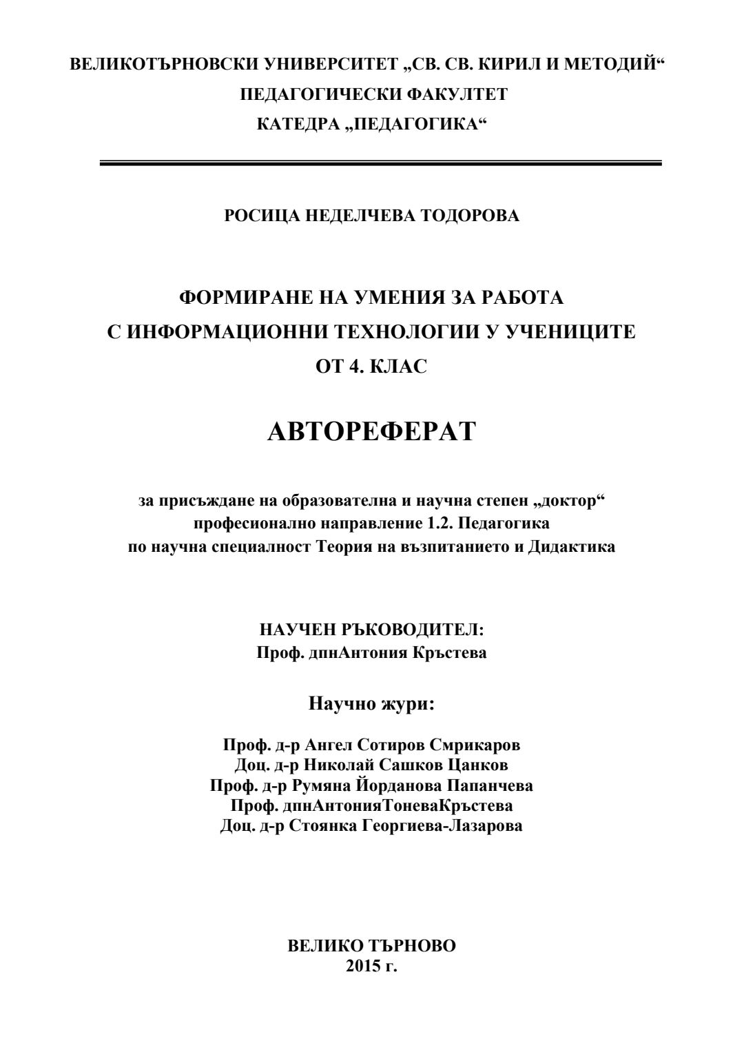 Формиране на умения за работа с информационни технологии у учениците от 4. клас : Автореферат/ Росица Неделчева Тодорова ; Науч. ръководител Антония Кръстева