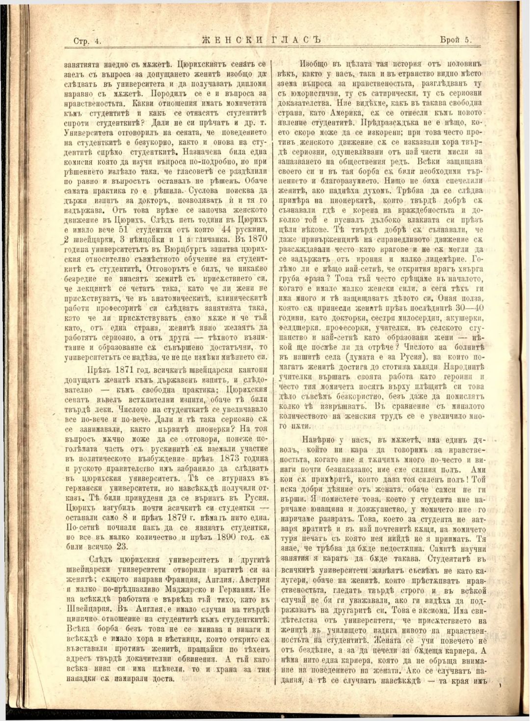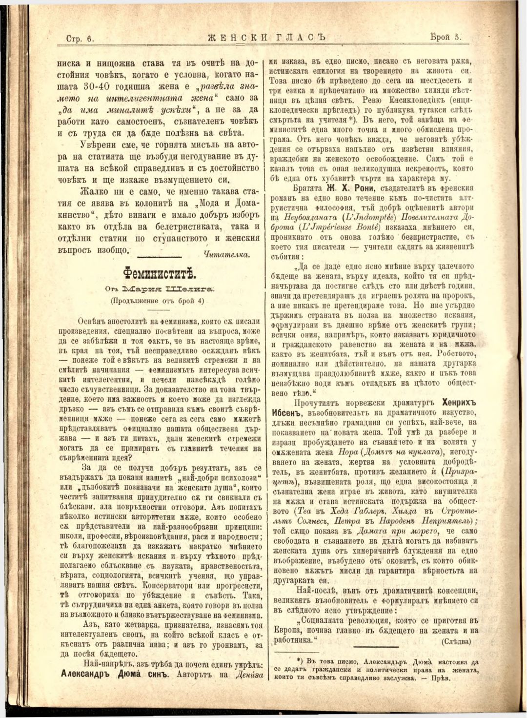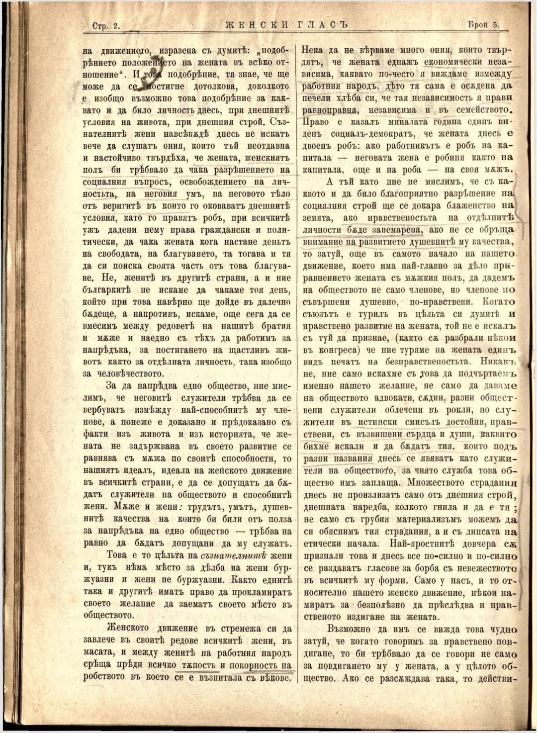 Год. 3, № 5. Женски глас : Орган на българския женски съюз