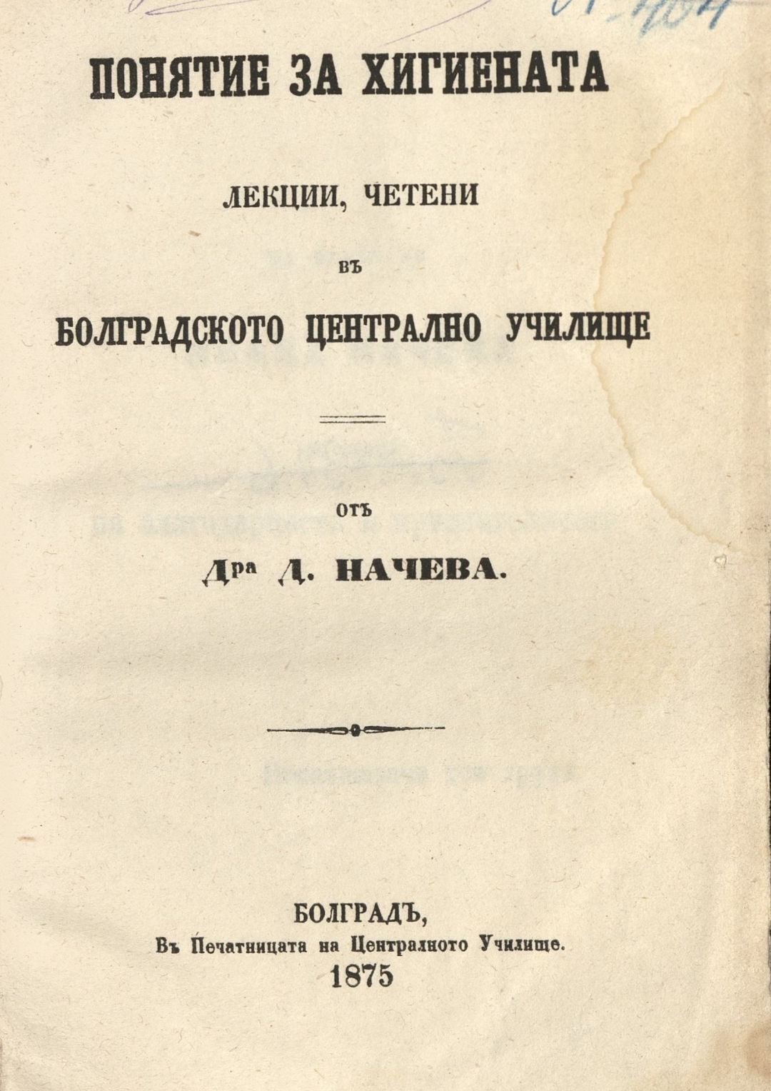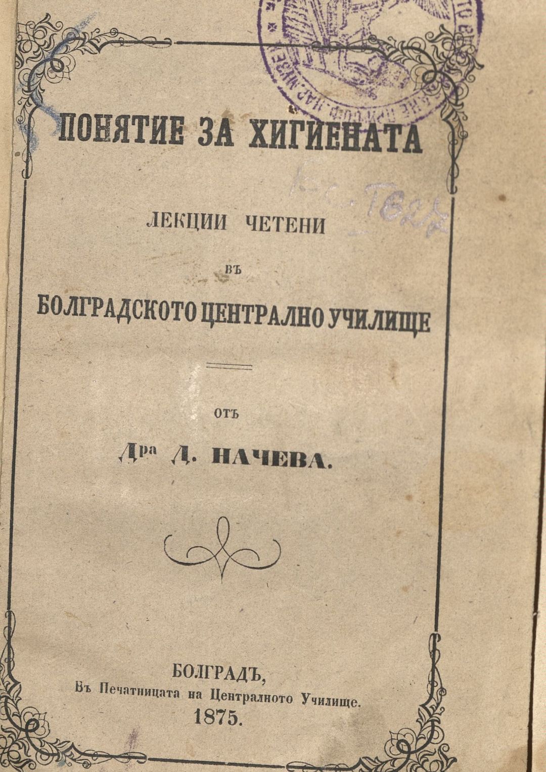 Понятие за хигиената : Лекции, четени в Болградското централно училище