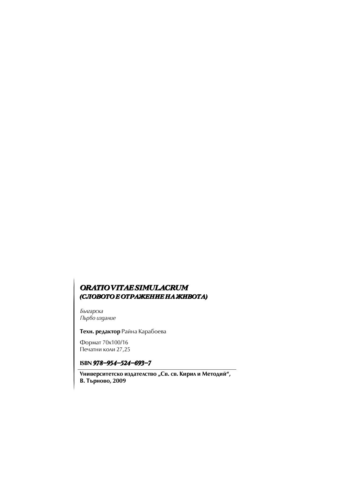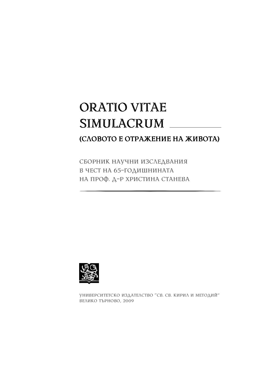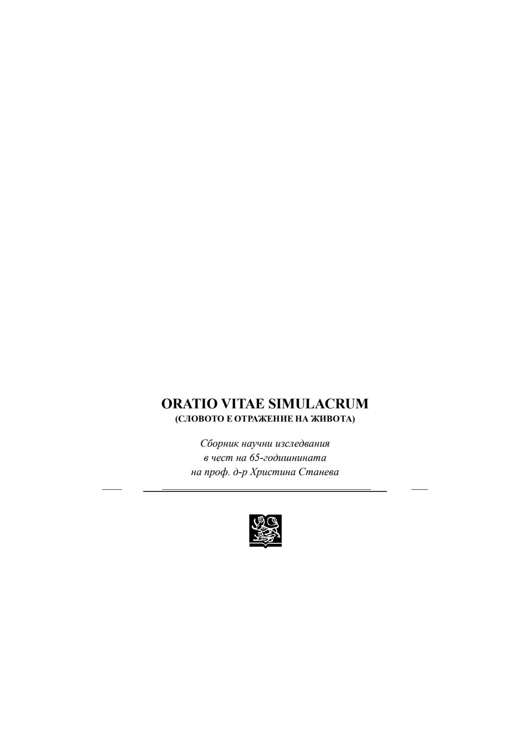 Oratio vitae simulacrum (Словото е отражение на живота) : Сборник научни изследвания в чест на 65-годишнината на проф. д-р Христина Станева