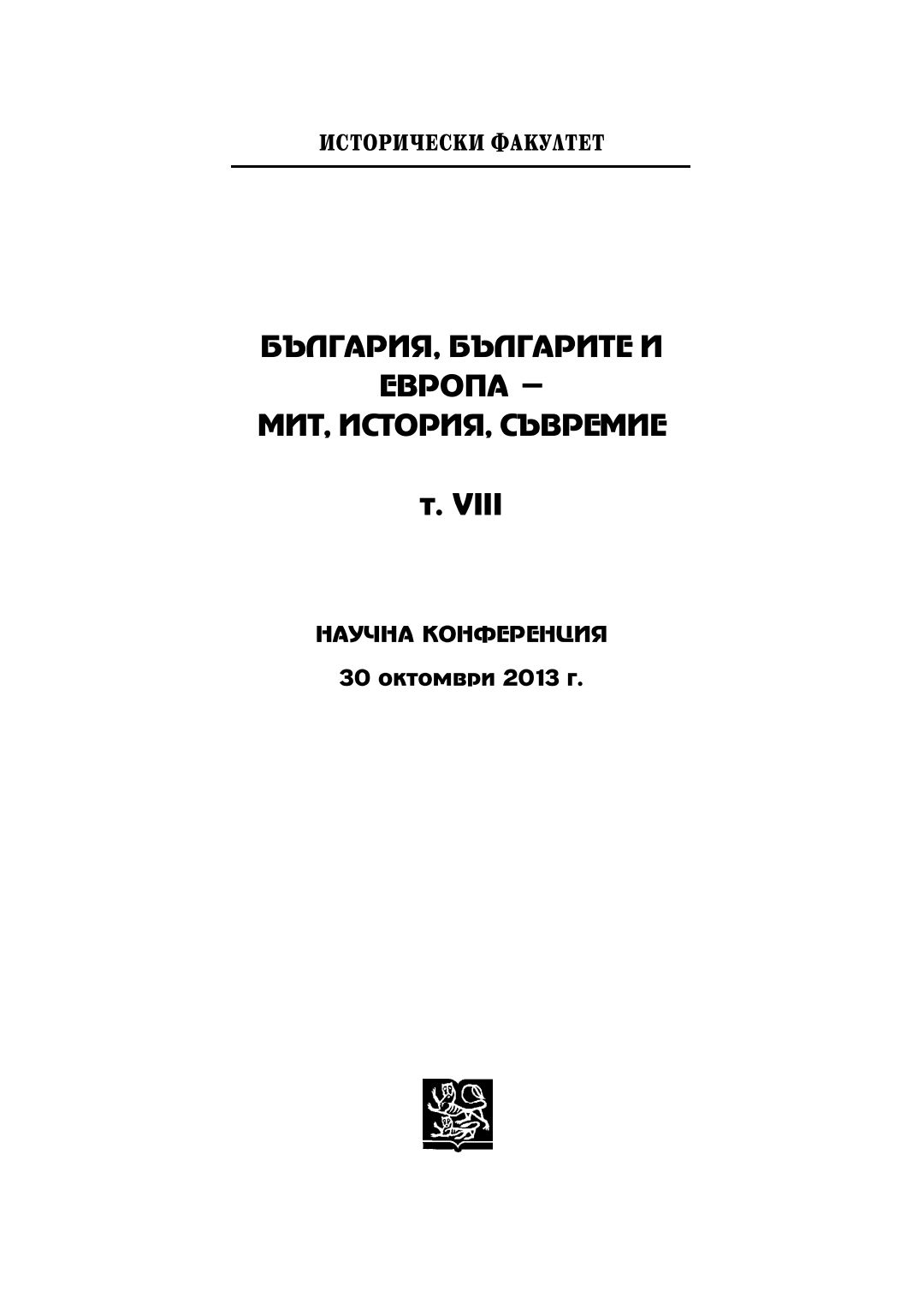 [Т. 8.] България, българите и Европа - мит, история, съвремие : Научна конференция, 30 октомври 2013 г.