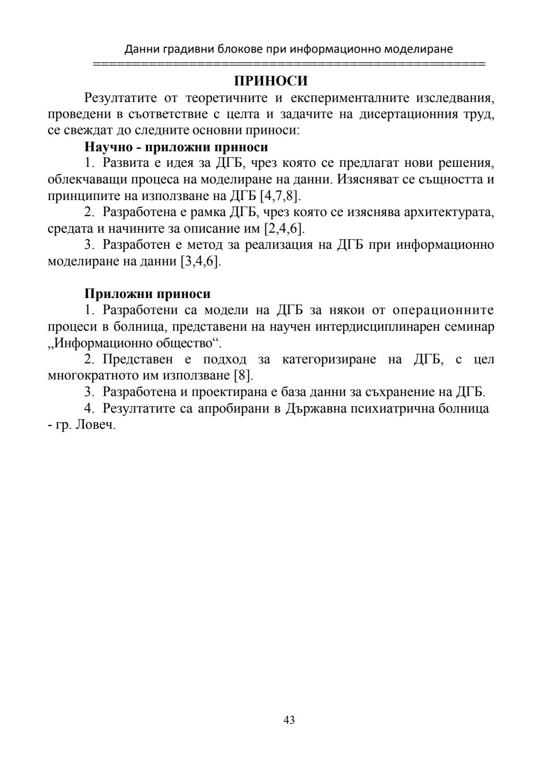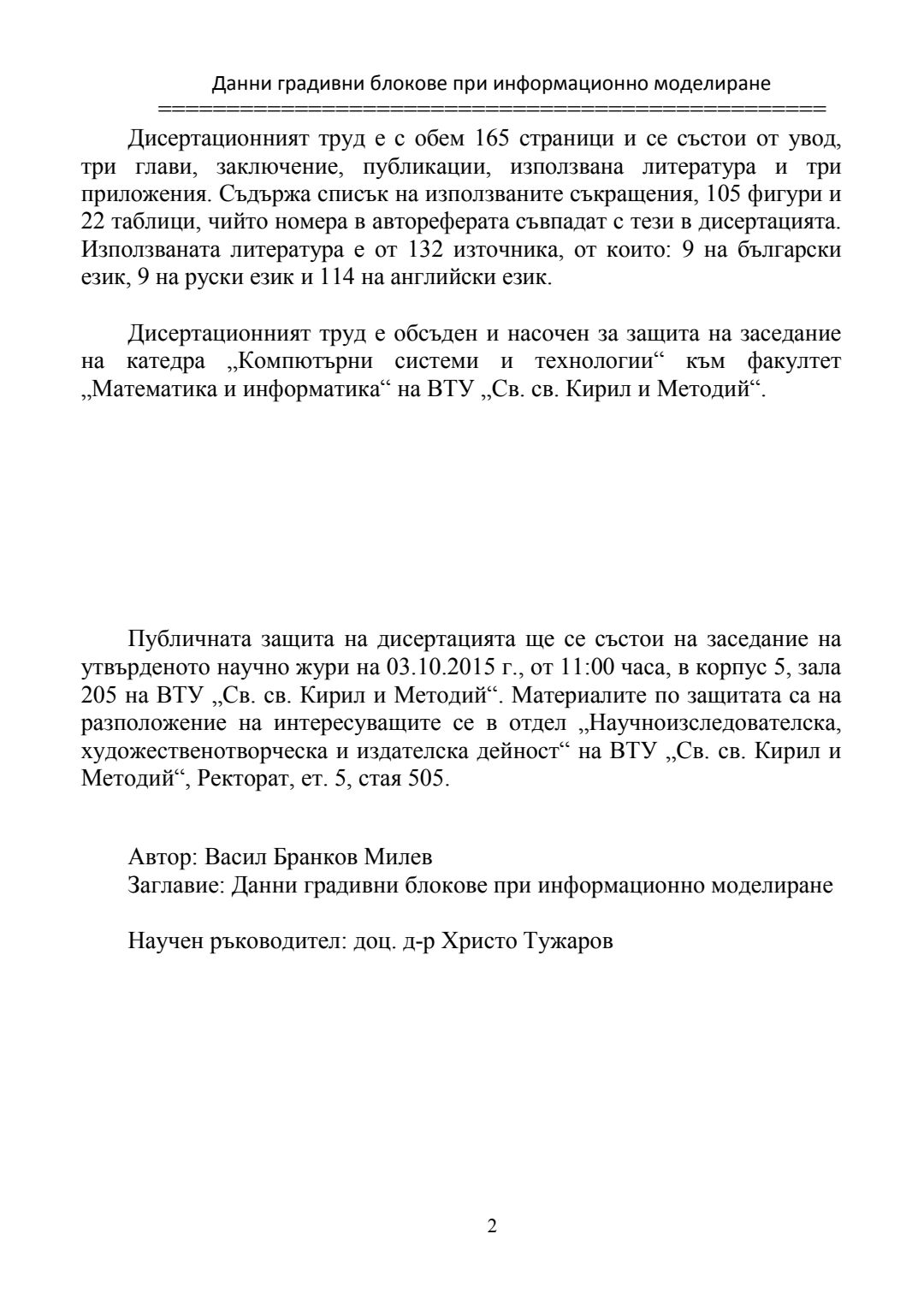Данни градивни блокове при информационно моделиране : Автореферат / Васил Бранков Милев ; Науч. ръководител Христо Тужаров
