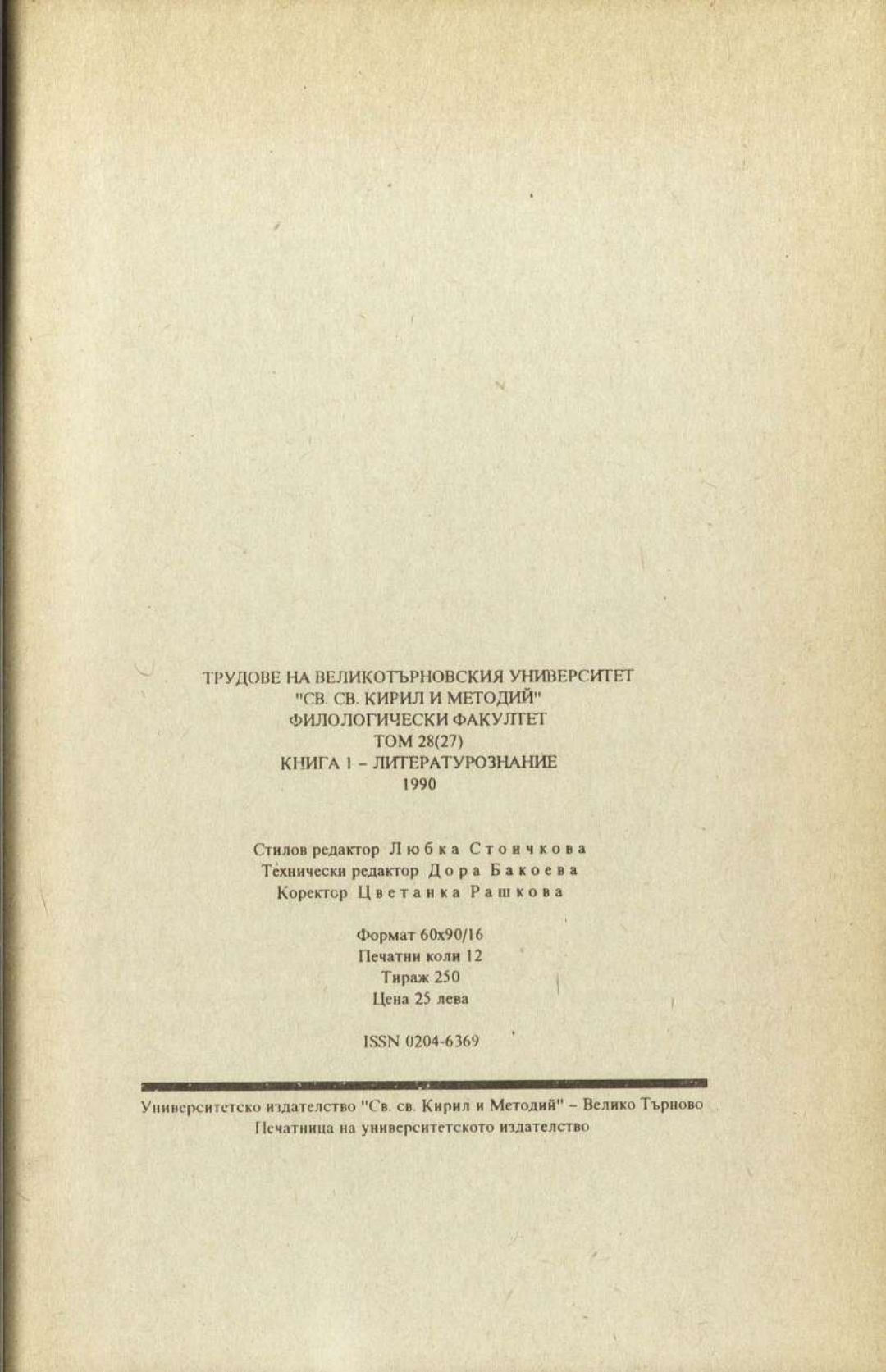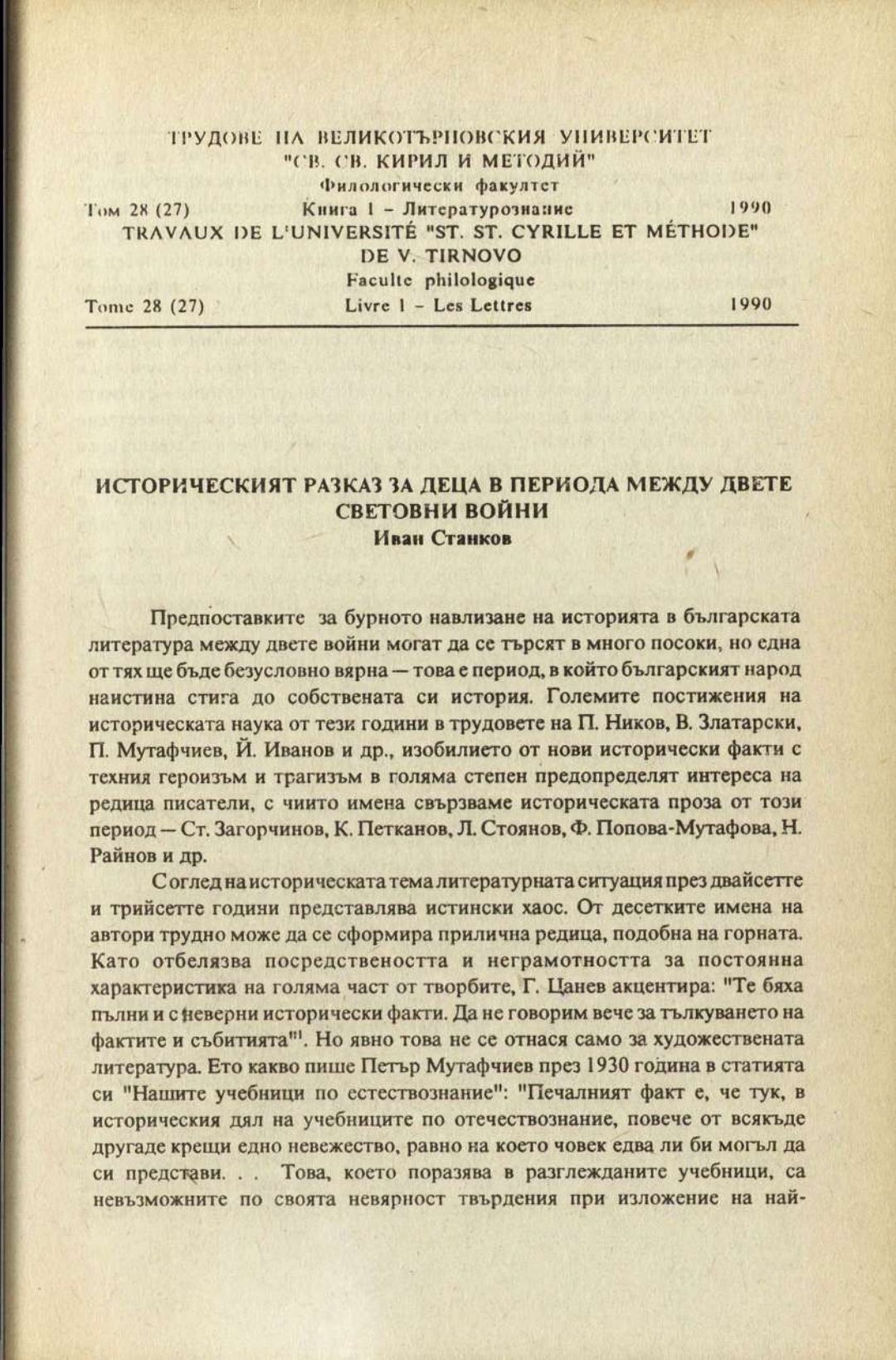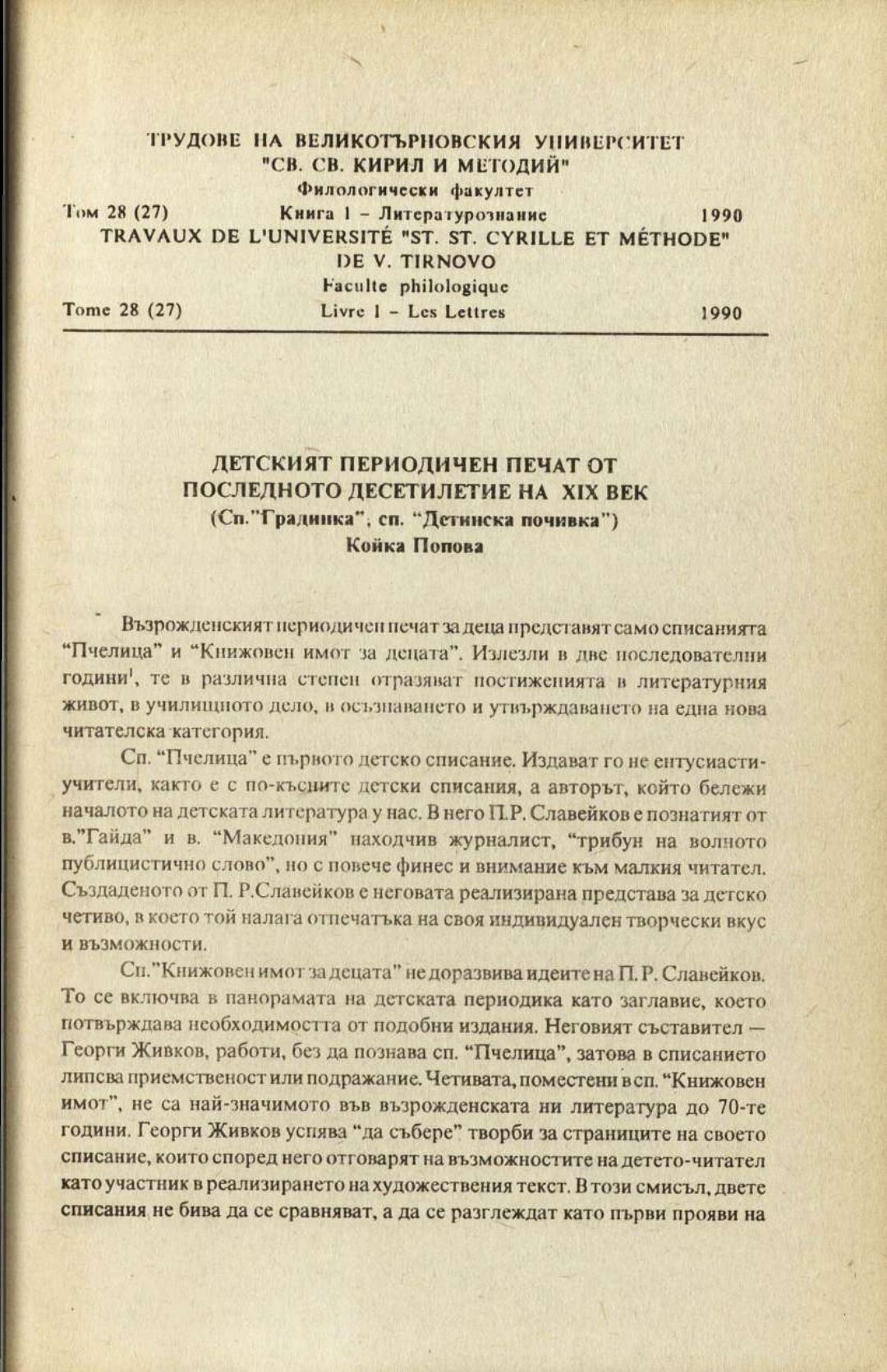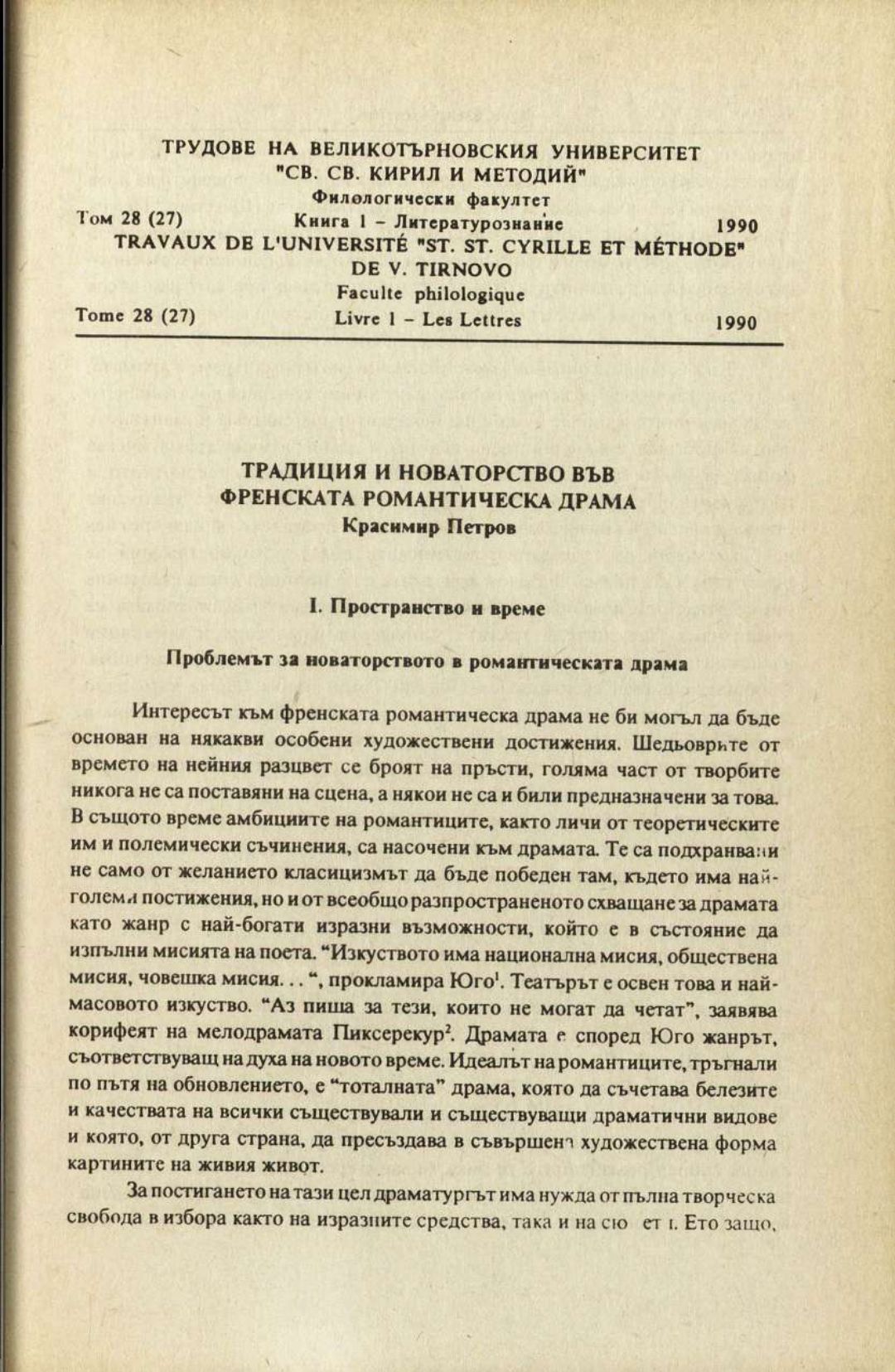 Том 28 (27) Кн.1. Трудове на Великотърновския университет "Св. св. Кирил и Методий". Филологически факултет = Travaux de L'universite St. St. Cyrille et Methode de Veliko Tirnovo. Faculte de philologue Литературознание