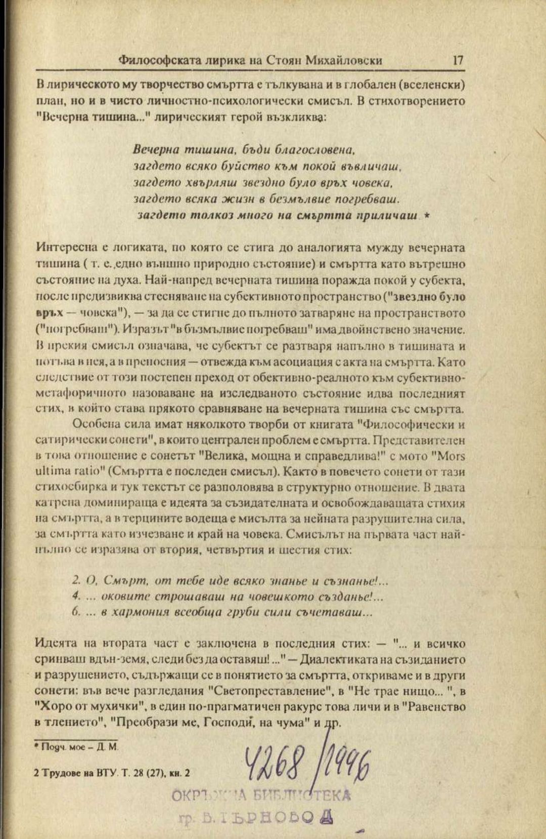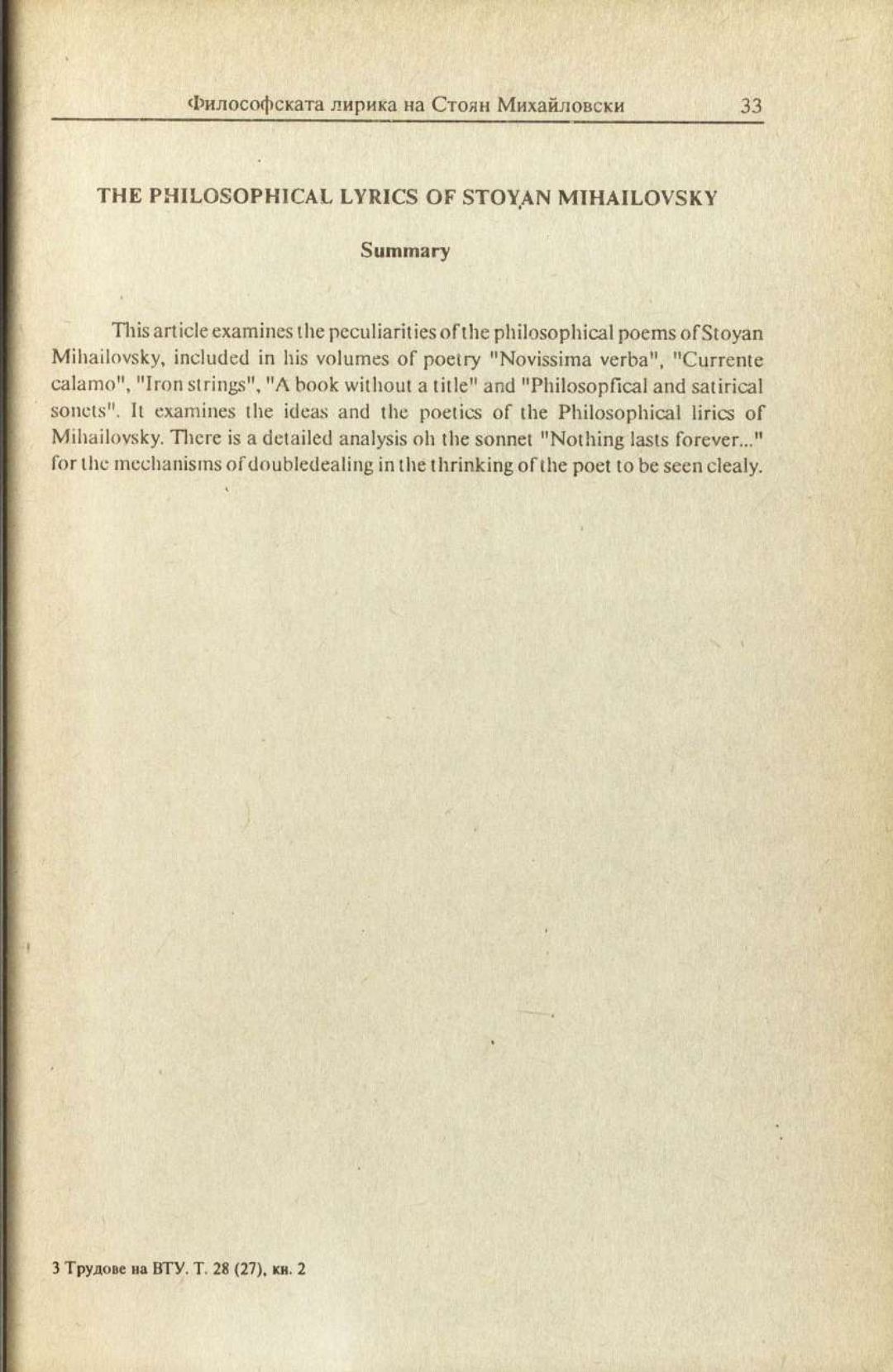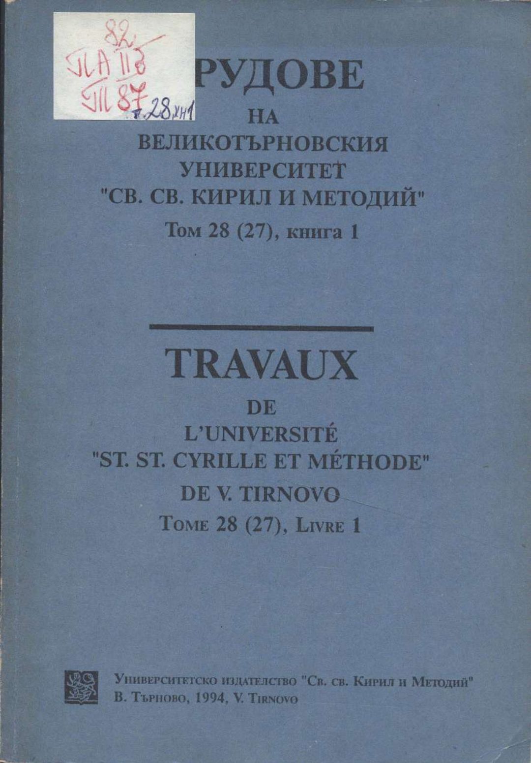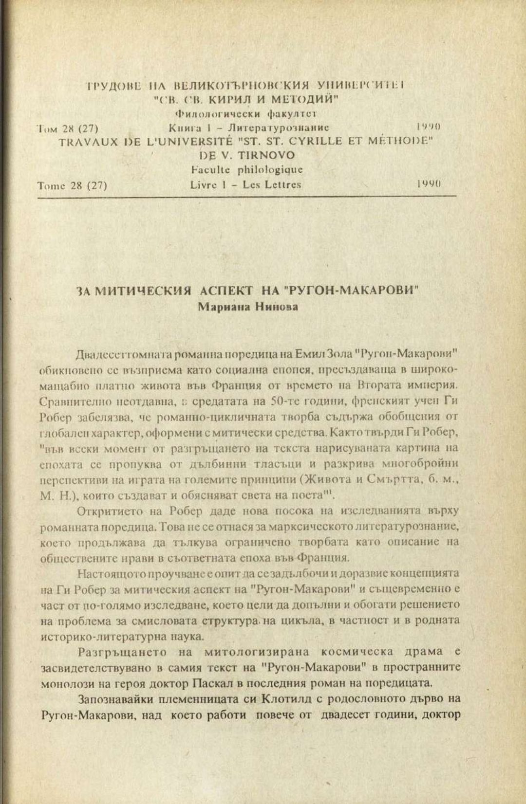 Том 28 (27) Кн.1. Трудове на Великотърновския университет "Св. св. Кирил и Методий". Филологически факултет = Travaux de L'universite St. St. Cyrille et Methode de Veliko Tirnovo. Faculte de philologue Литературознание