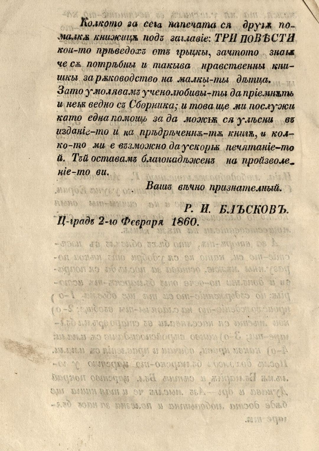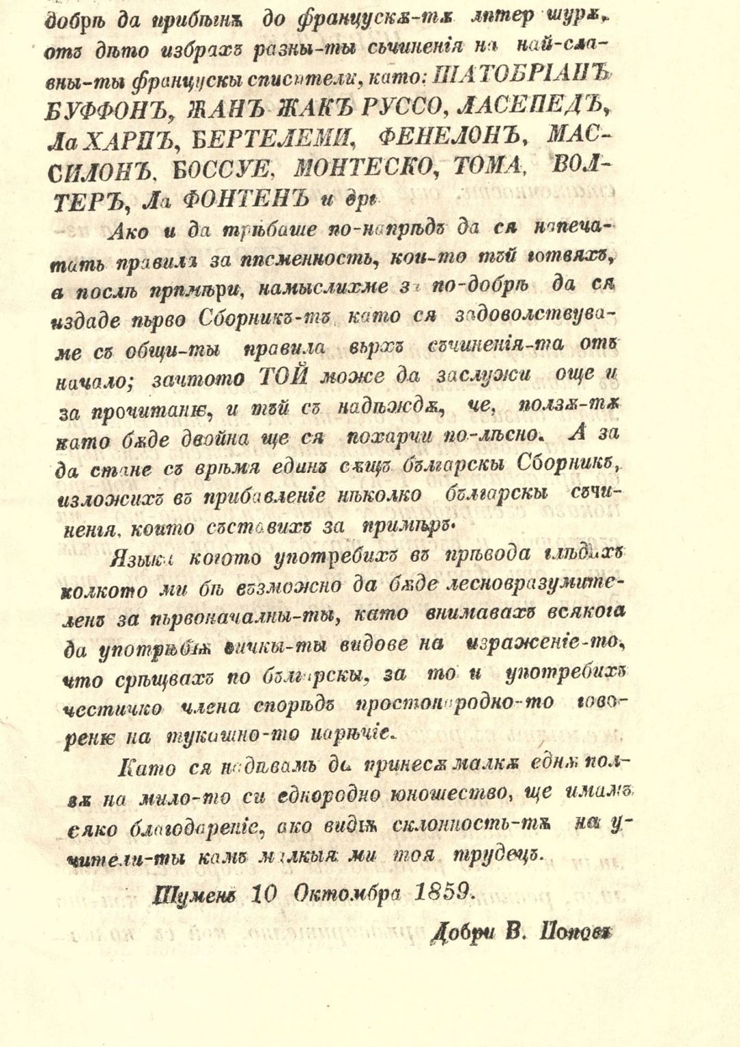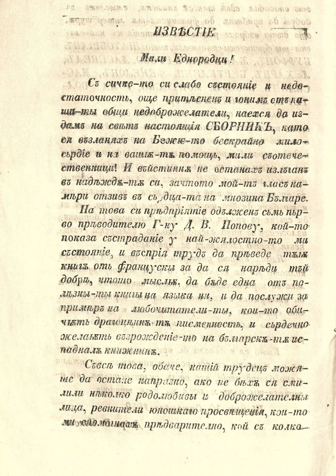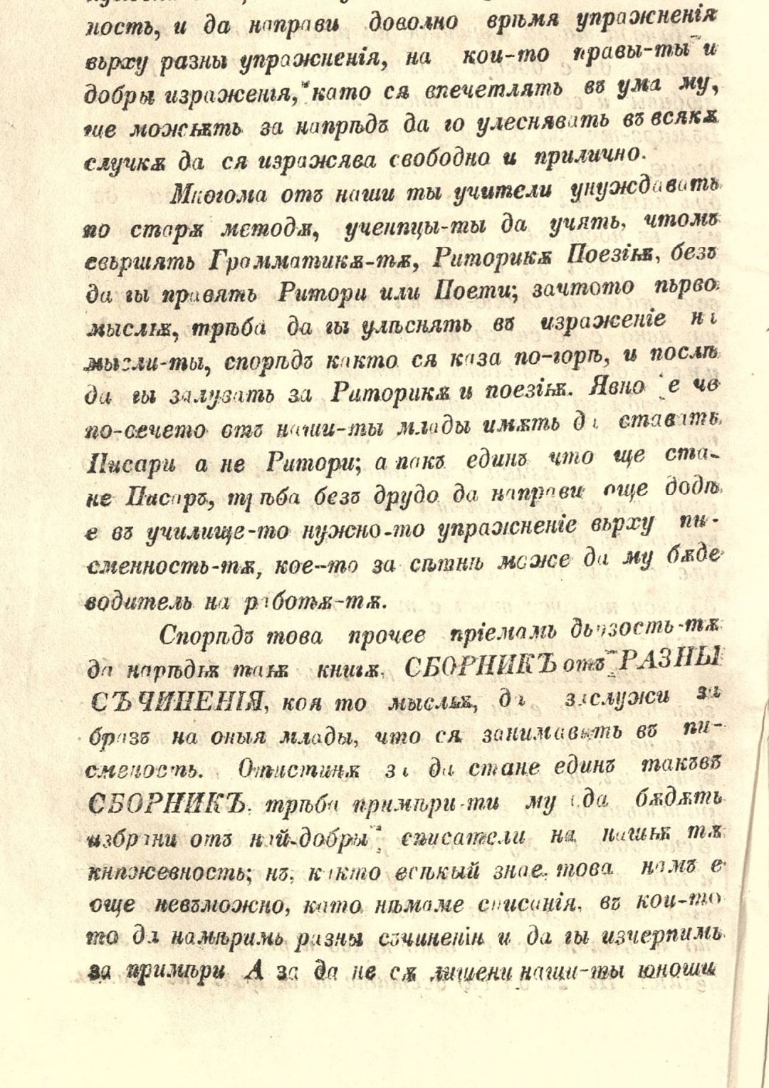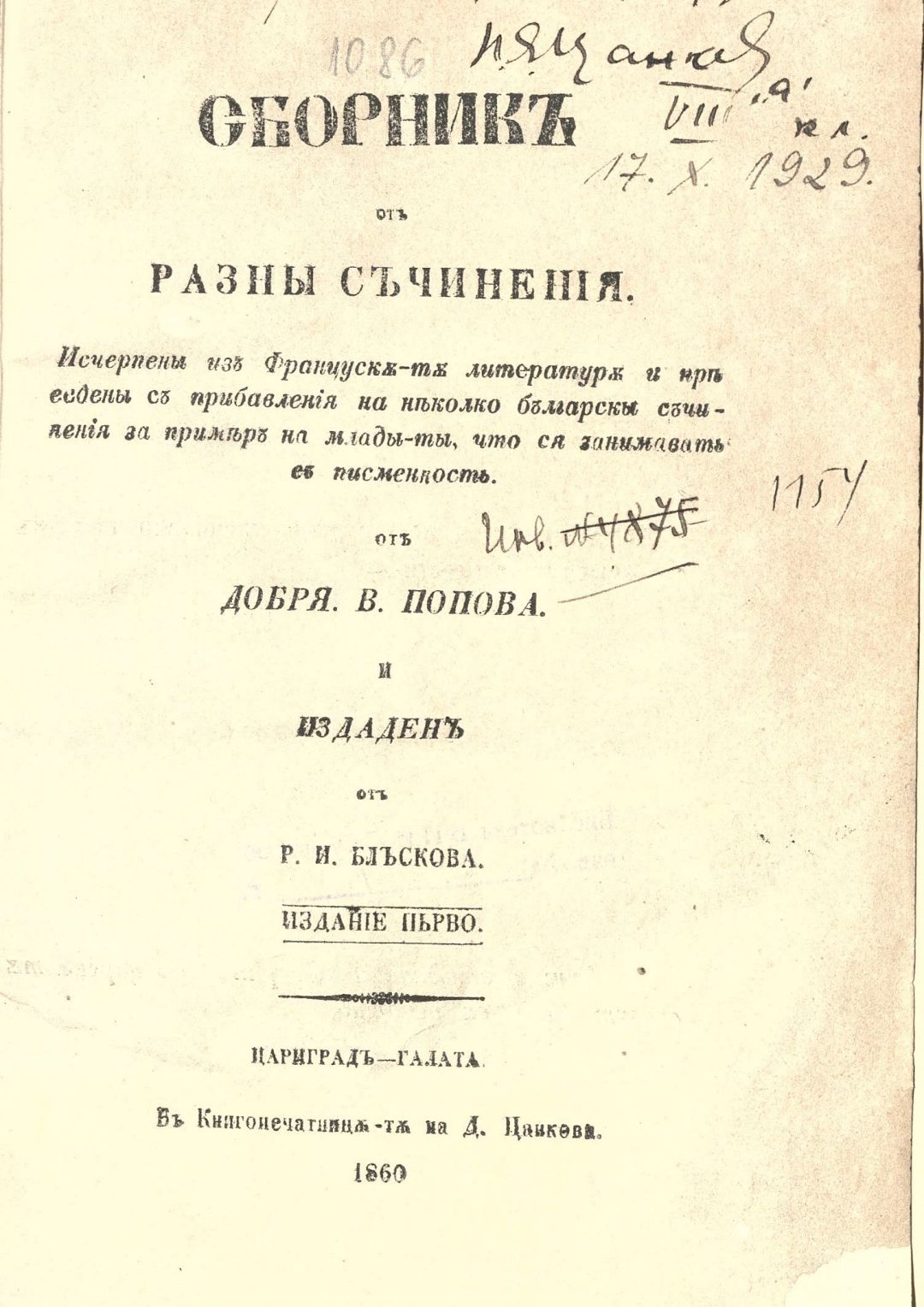 Сборник от разни съчинения : Изчерпани из французката литература и преведени с прибавления на няколко български съчинения за пример на младите, что ся занимават с писменост. – 1. изд