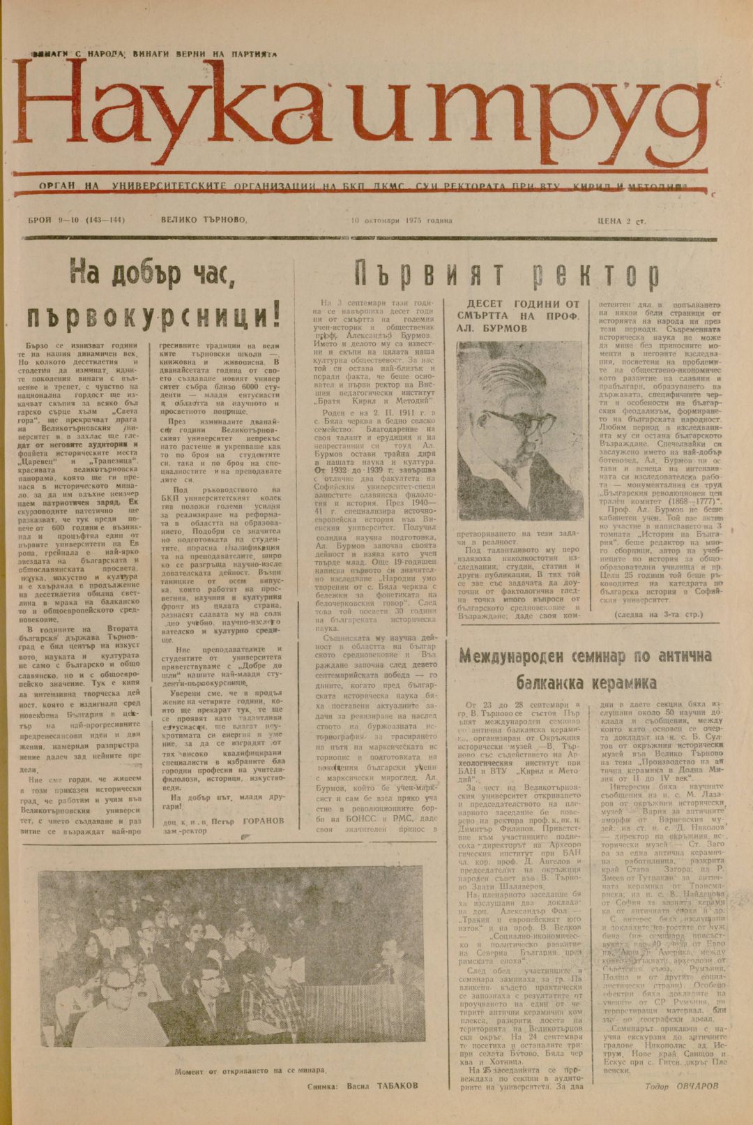 Год.14, 9-10 (143-144). Наука и труд : Орган на институтските комитети на БКП, ДКМС, СУ и Ректората при ВПИ "Братя Кирил и Методий"