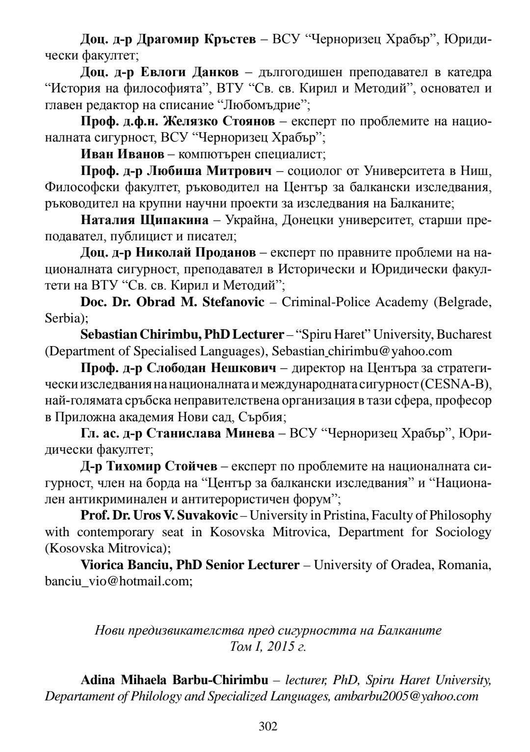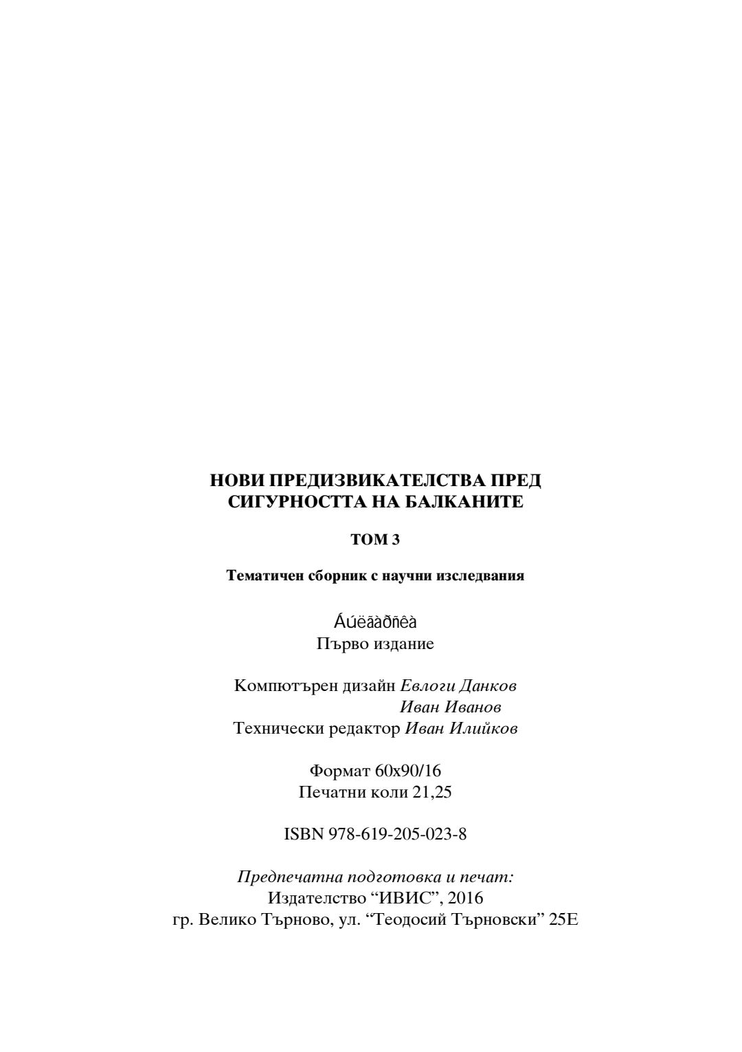 Т. 3.Нови предизвикателства пред сигурността на Балканите : тематичен сборник с научни изследвания. Посветен на 20-годишнината на Философски факултет на Великотърновски университет "Св. св. Кирил и Методий"