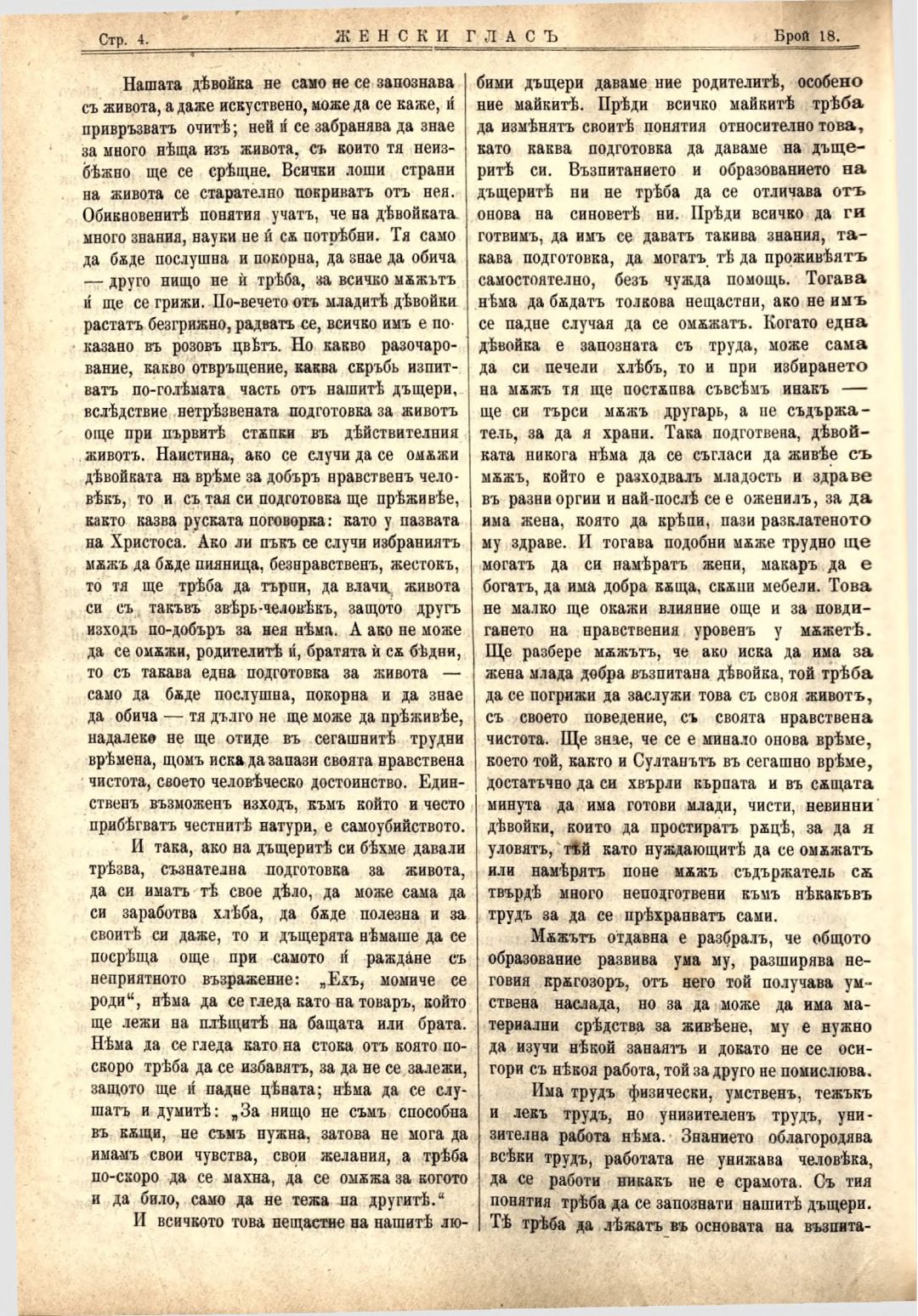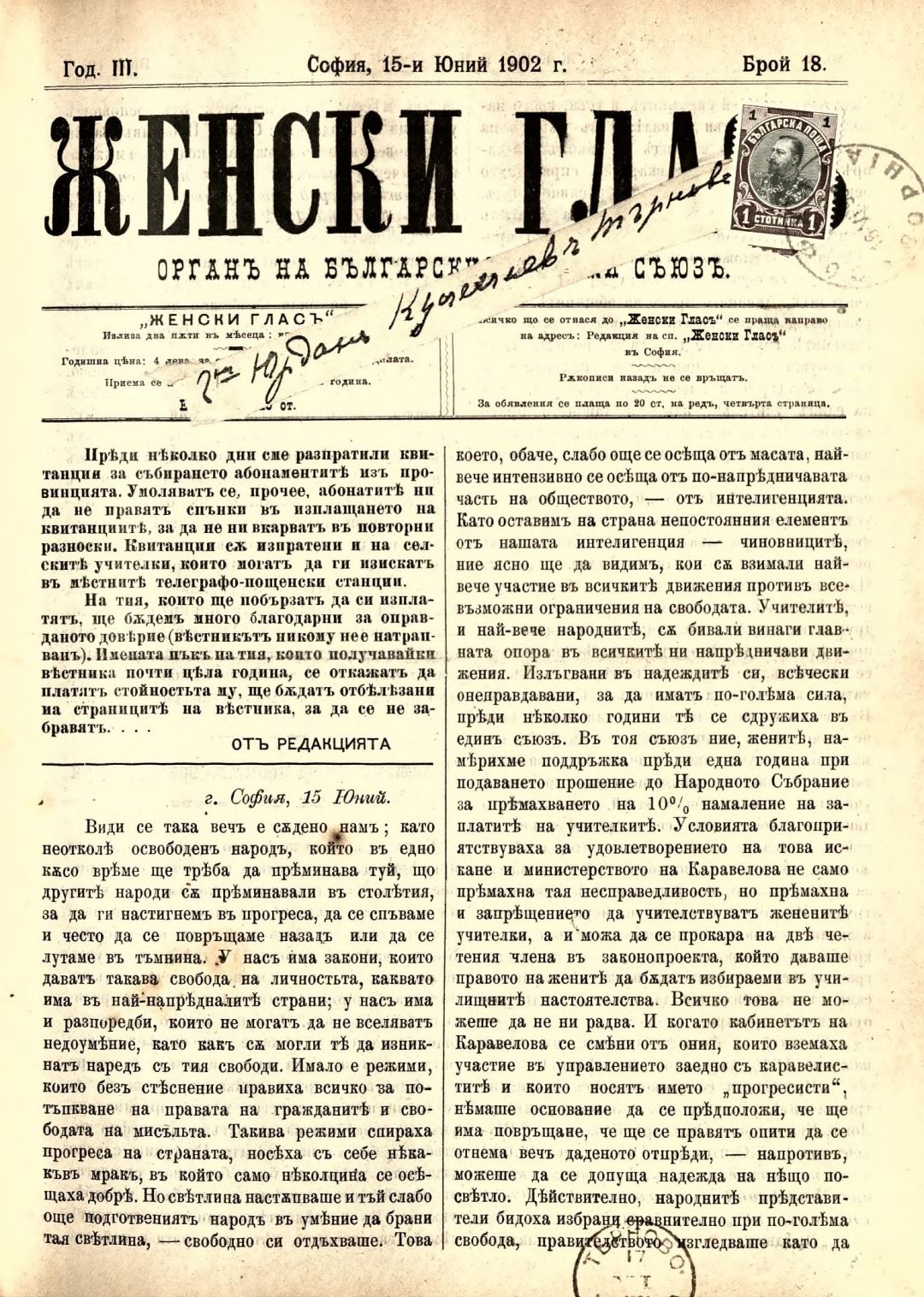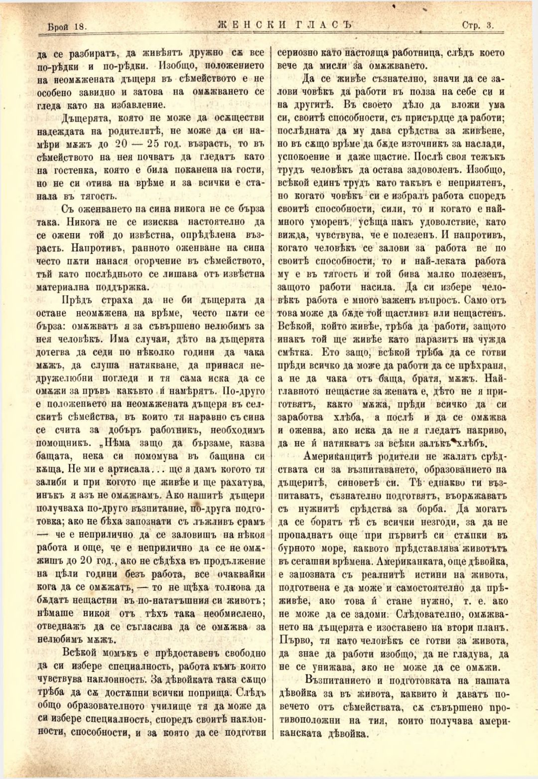 Год. 3,№ 18. Женски глас : Орган на българския женски съюз