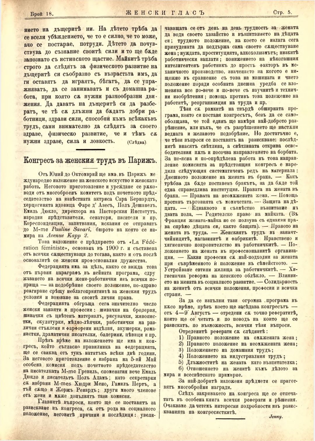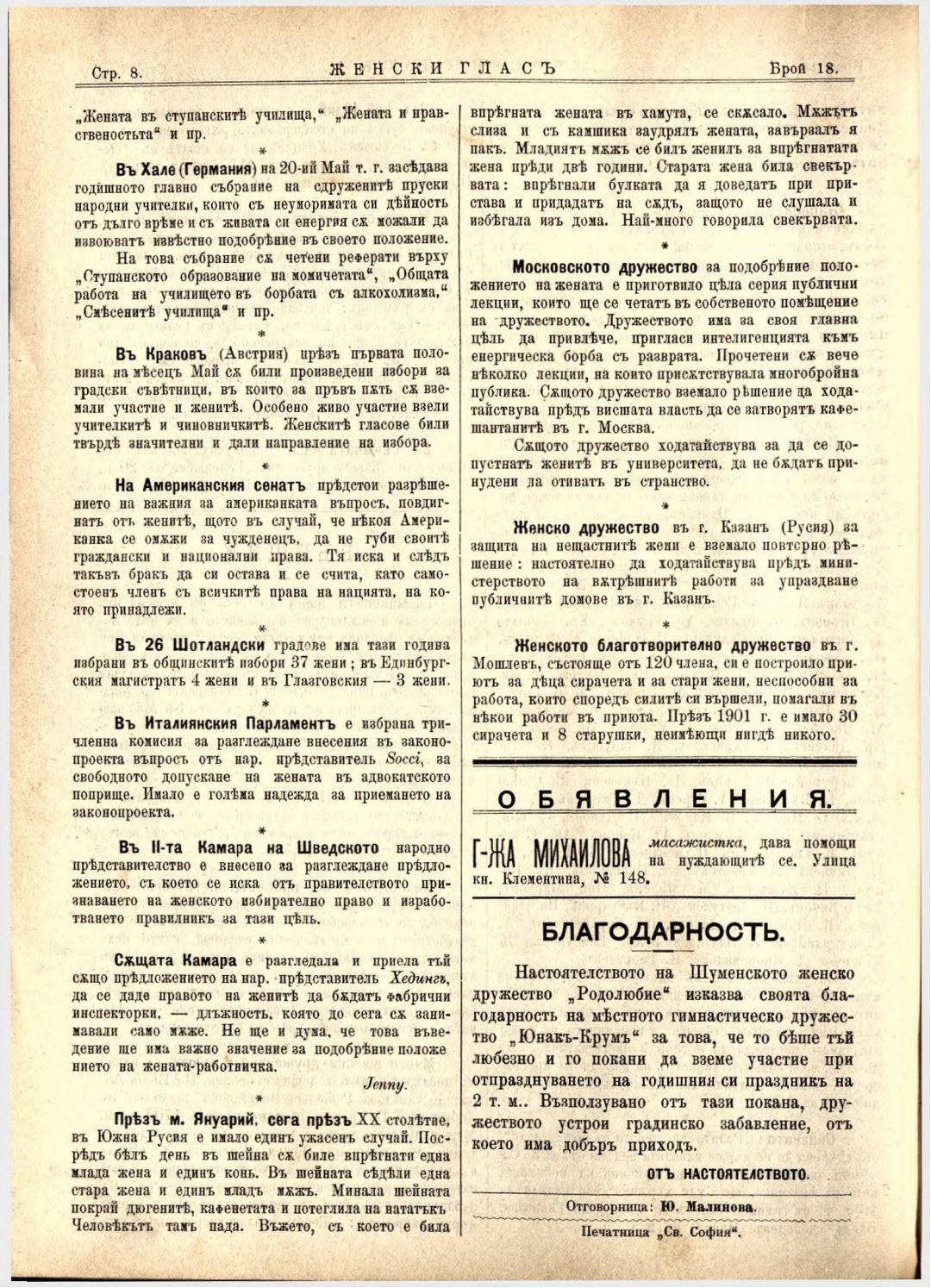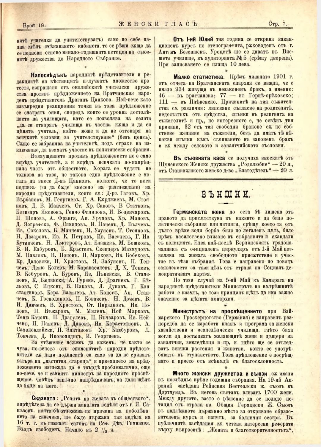 Год. 3,№ 18. Женски глас : Орган на българския женски съюз