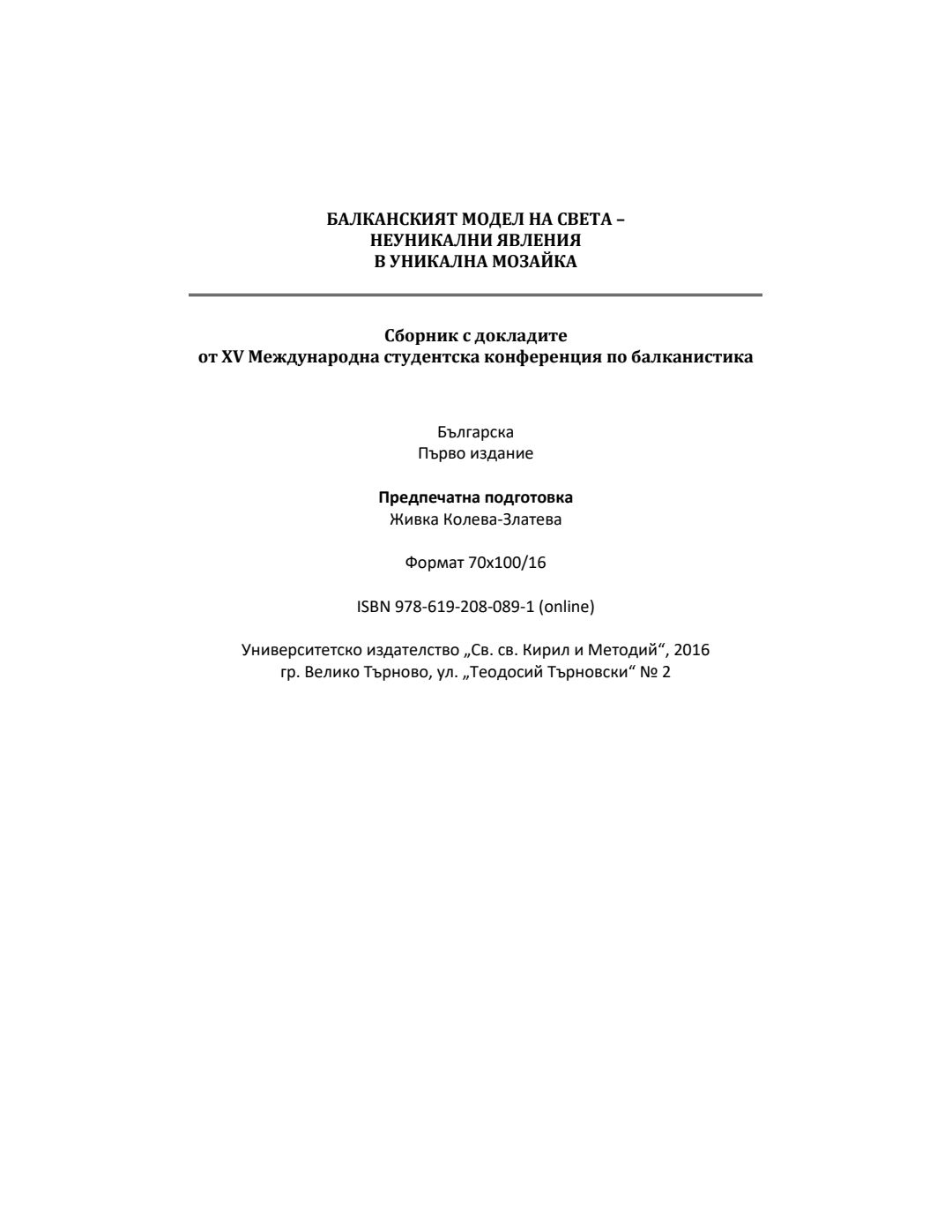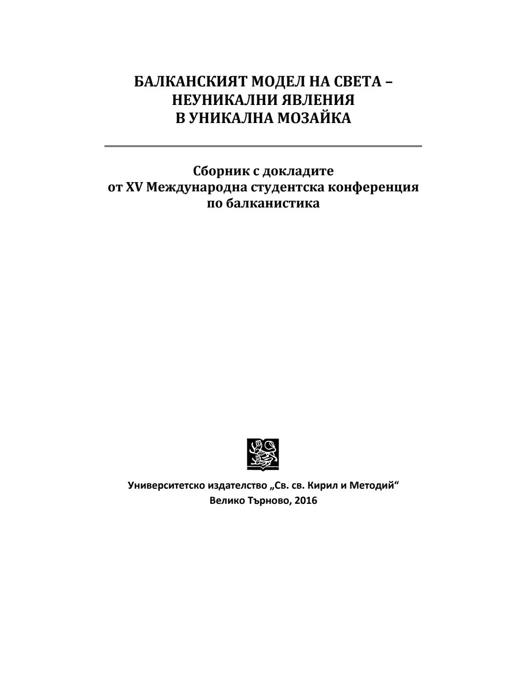 Балканският модел на света неуникални явления в уникална мозайка : Сборник с докладите от XV Международна студентска конференция побалканистика