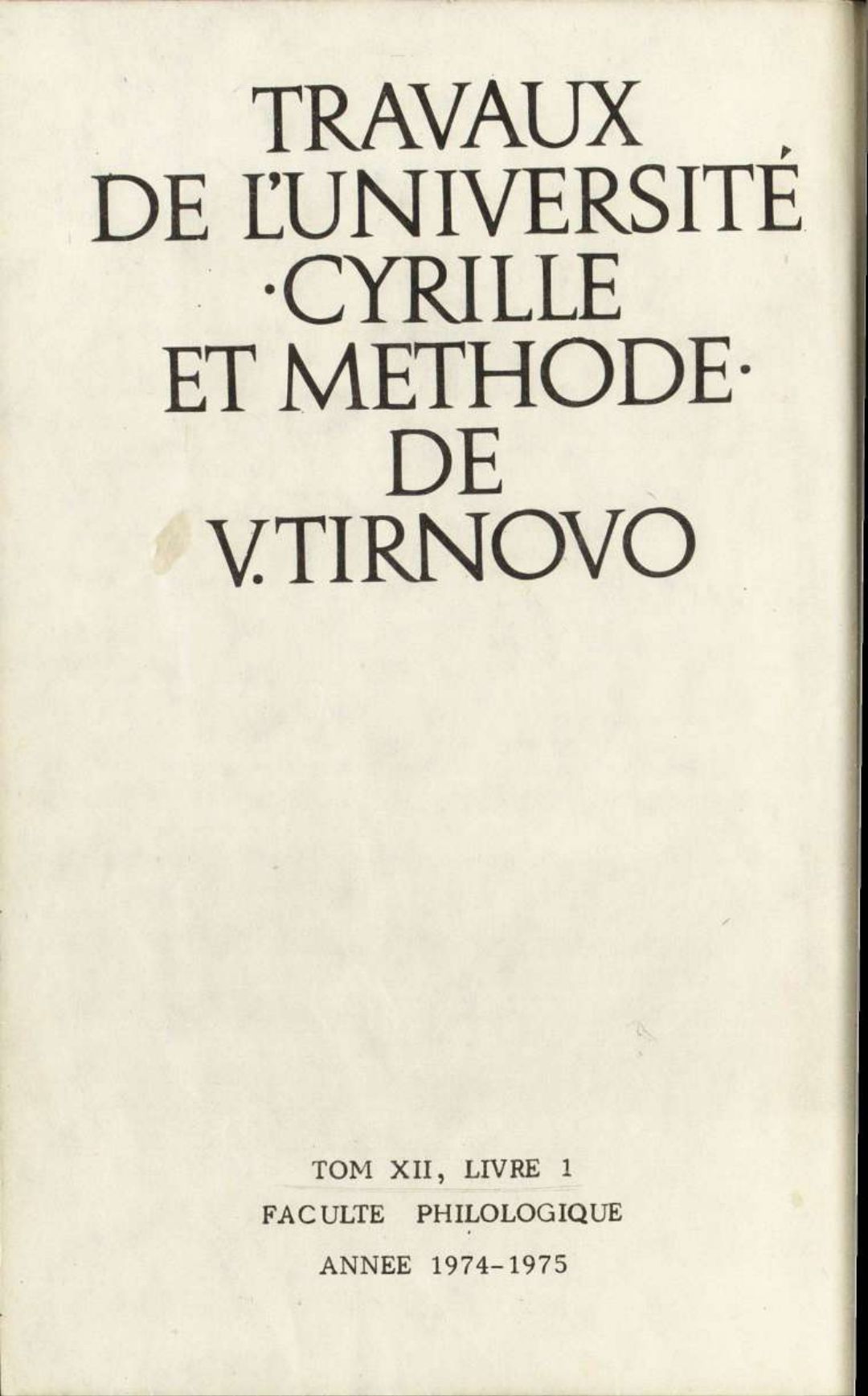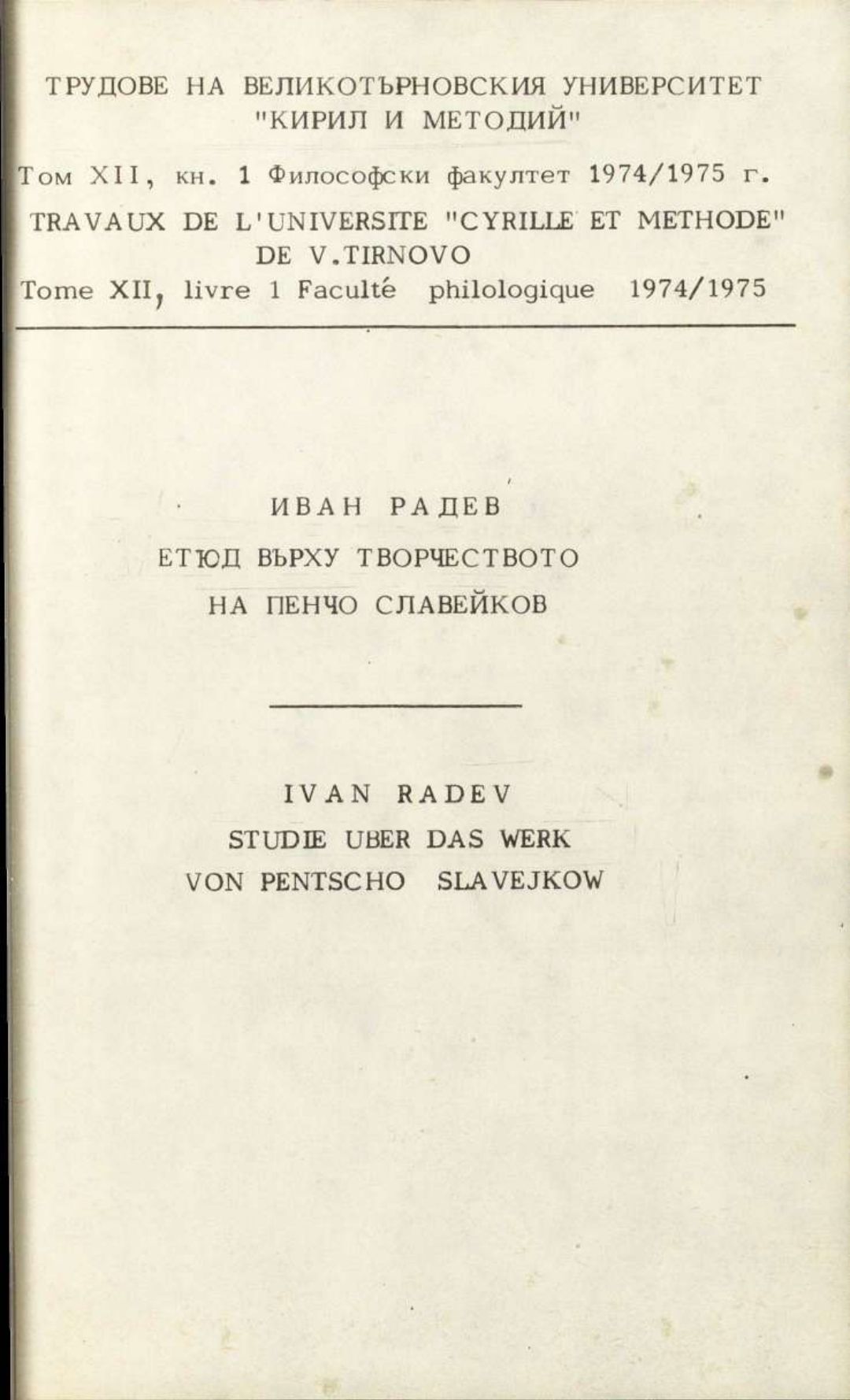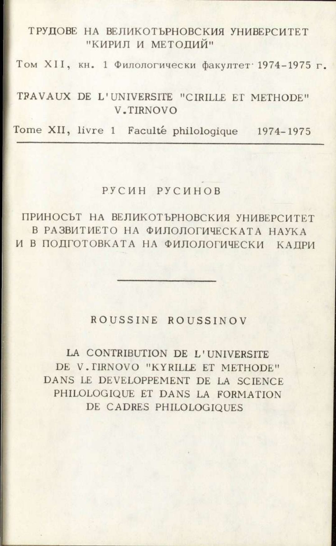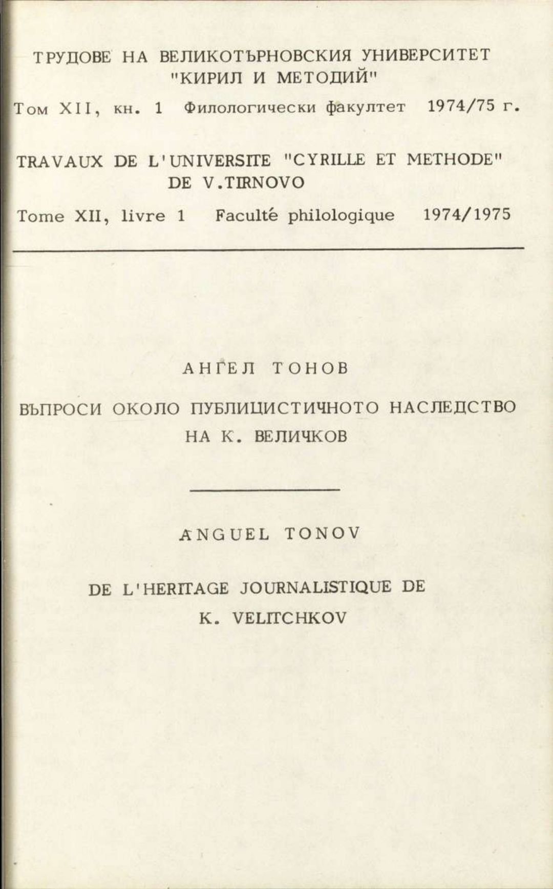 Том 12. Кн.1. Трудове на Великотърновския университет "Св. св. Кирил и Методий". Филологически факултет = Travaux de L'universite St. St. Cyrille et Methode de Veliko Tirnovo. Faculte de philologue