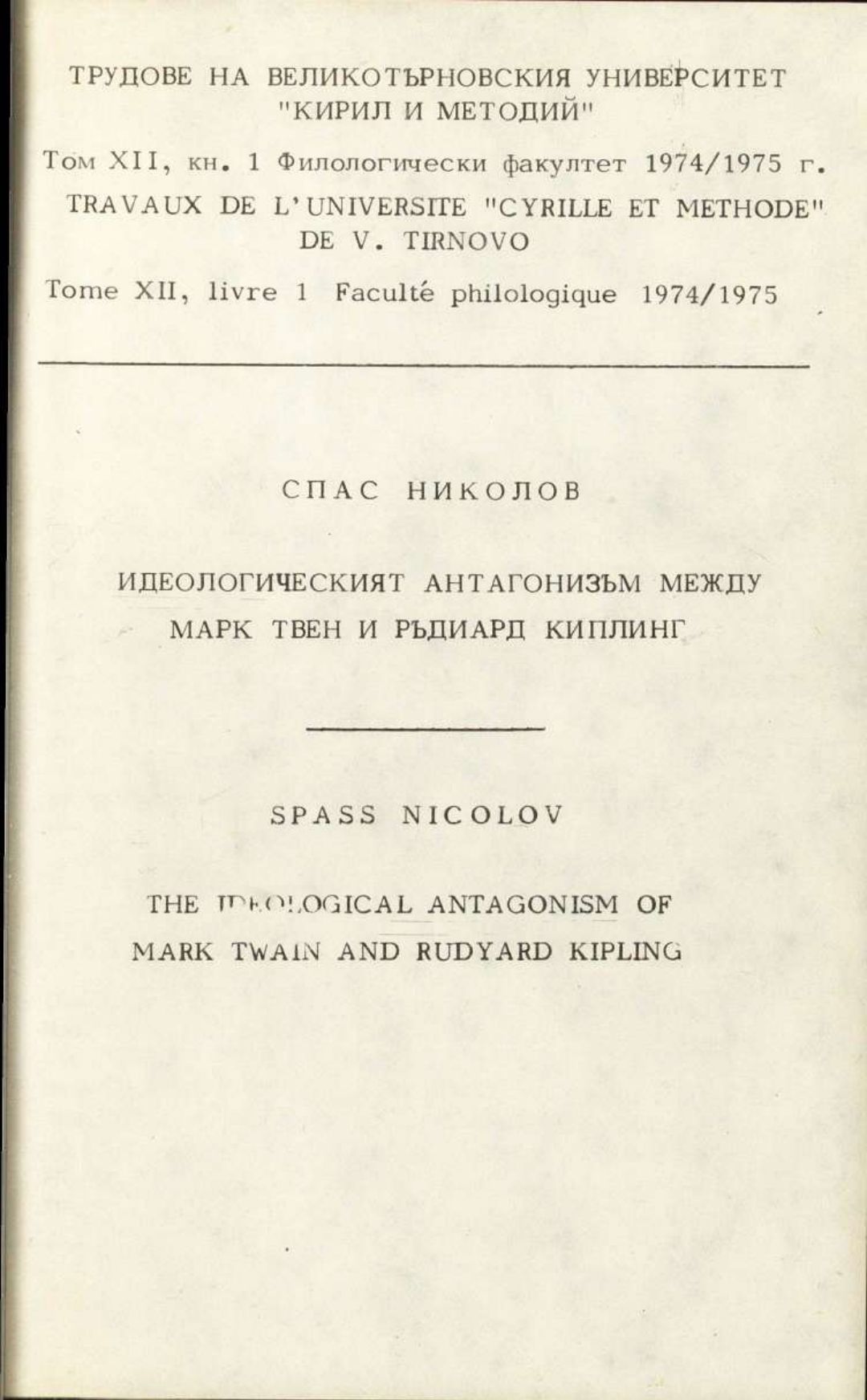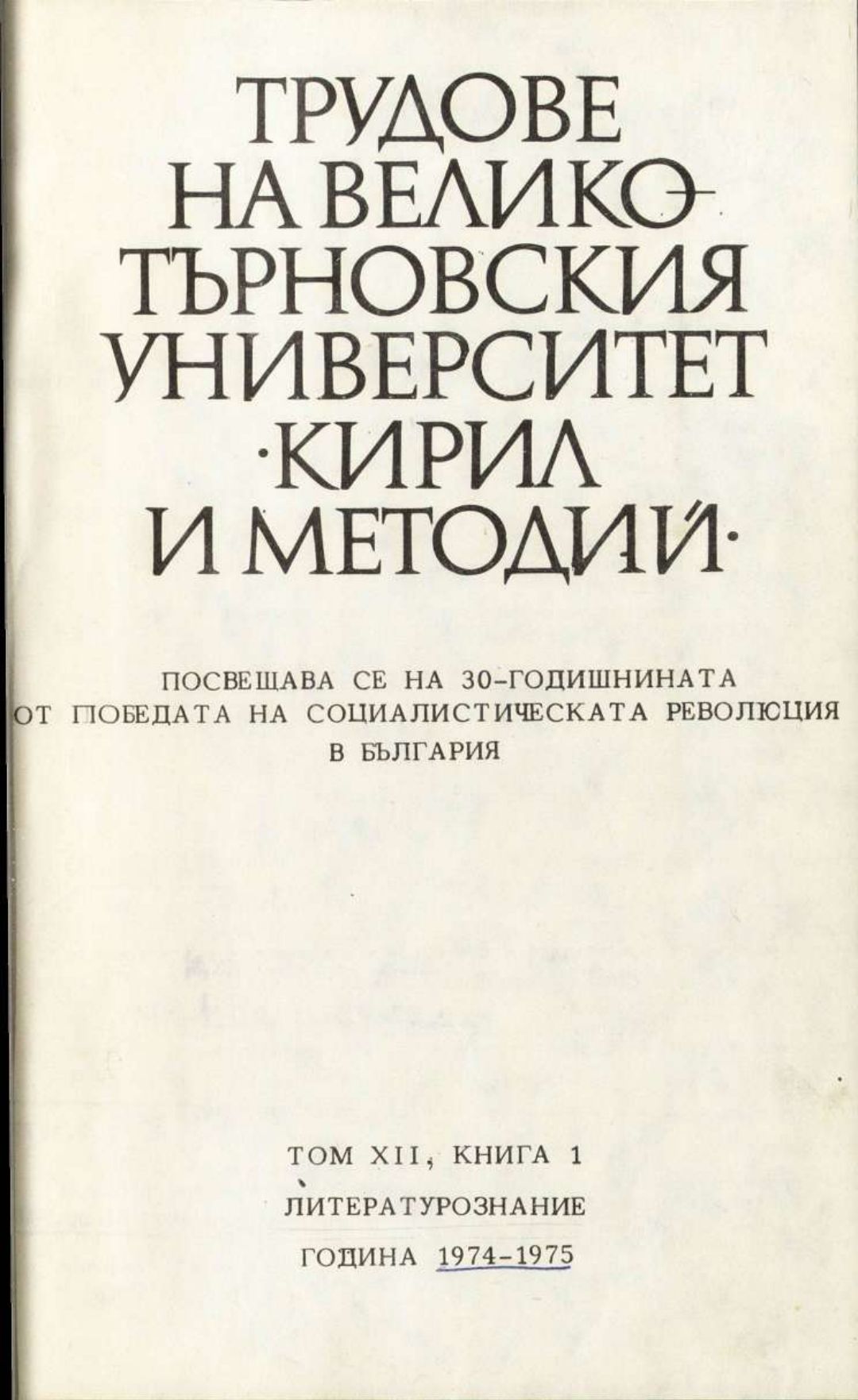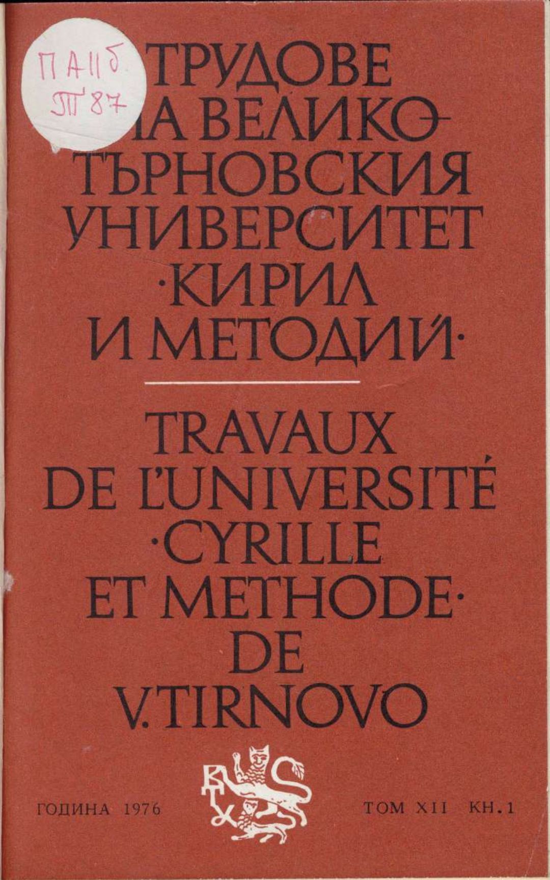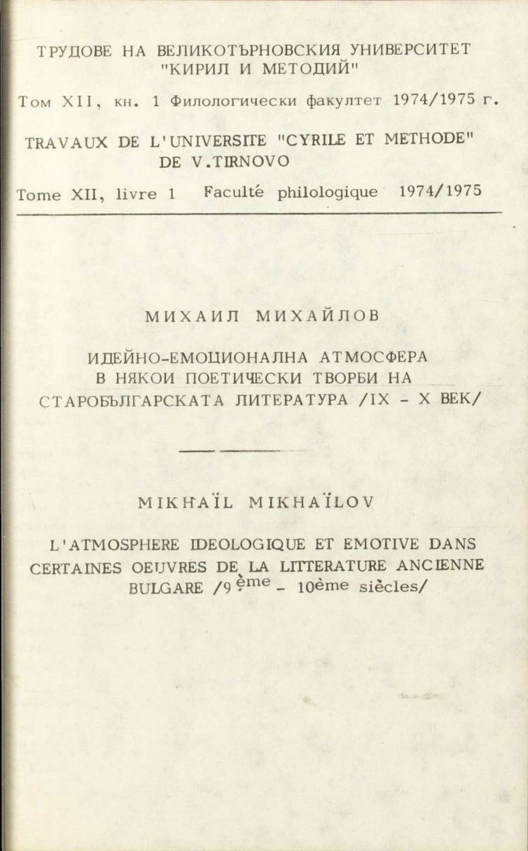 Том 12. Кн.1. Трудове на Великотърновския университет "Св. св. Кирил и Методий". Филологически факултет = Travaux de L'universite St. St. Cyrille et Methode de Veliko Tirnovo. Faculte de philologue
