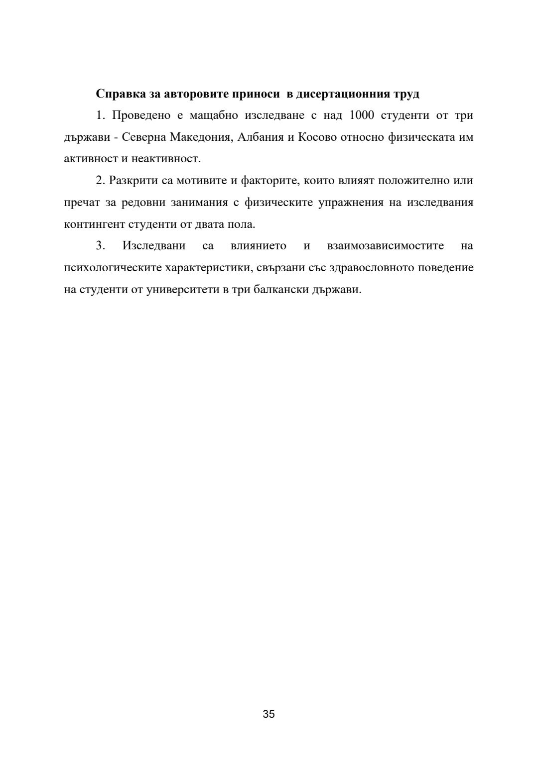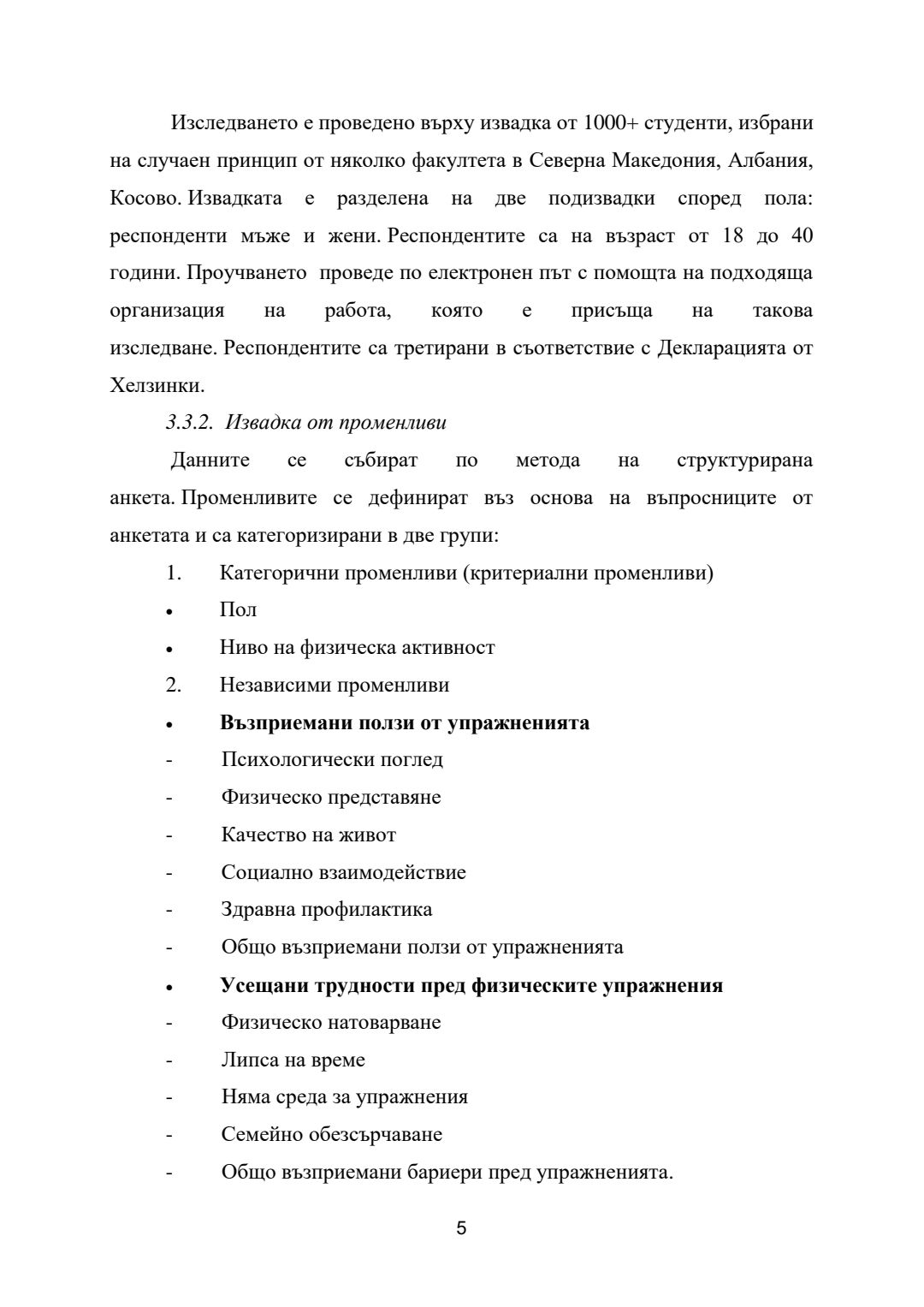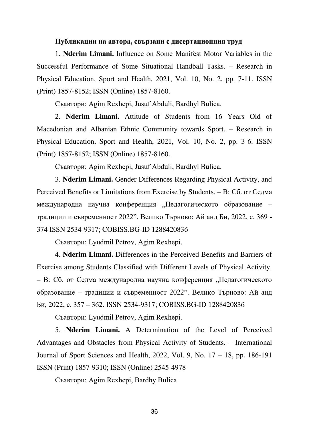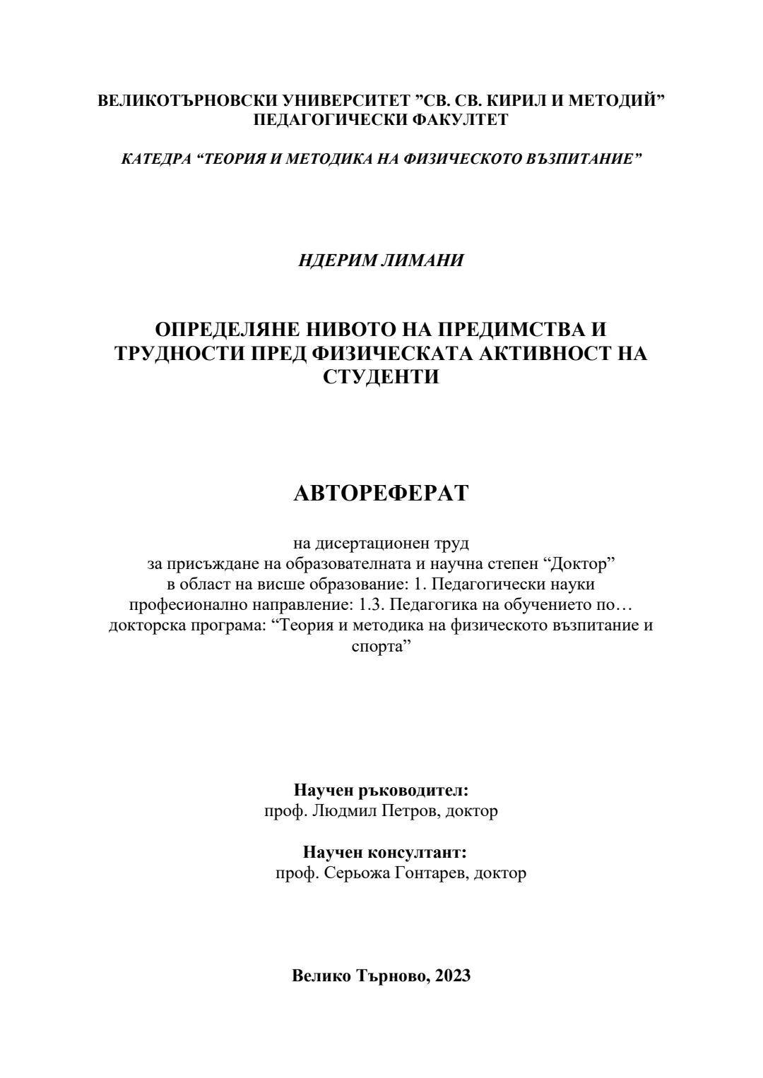 Определяне на нивото на предимства и трудности пред физическата активност на студенти : Автореферат / Ндерим Лимани ; Науч. ръководител Людмил Петров