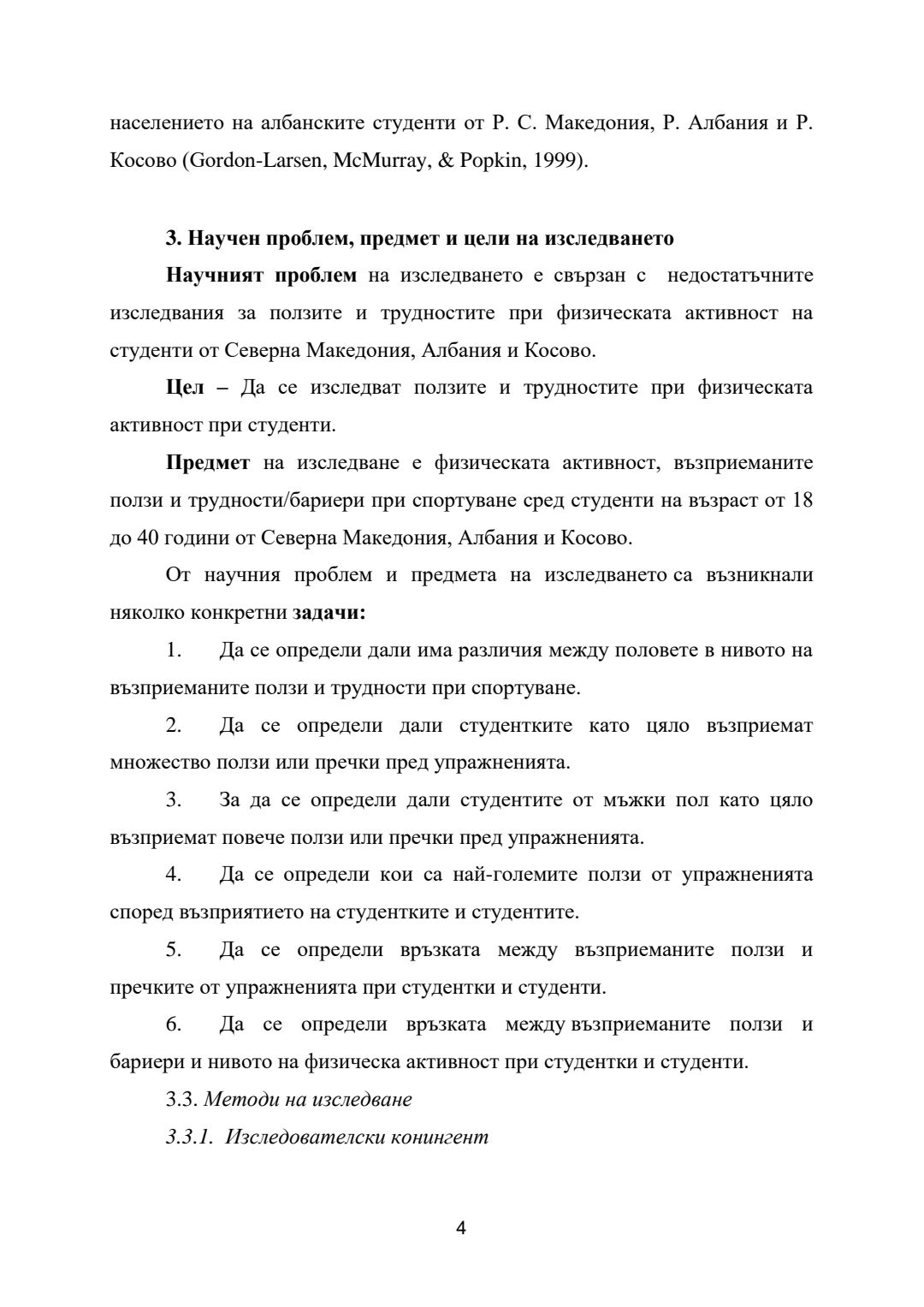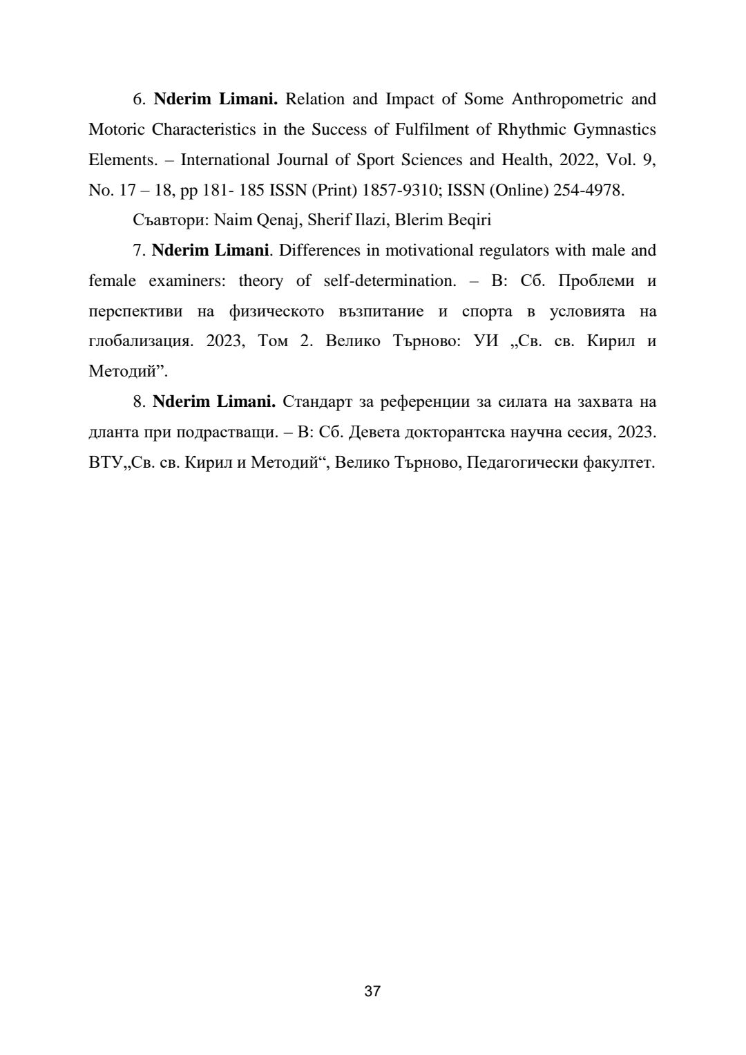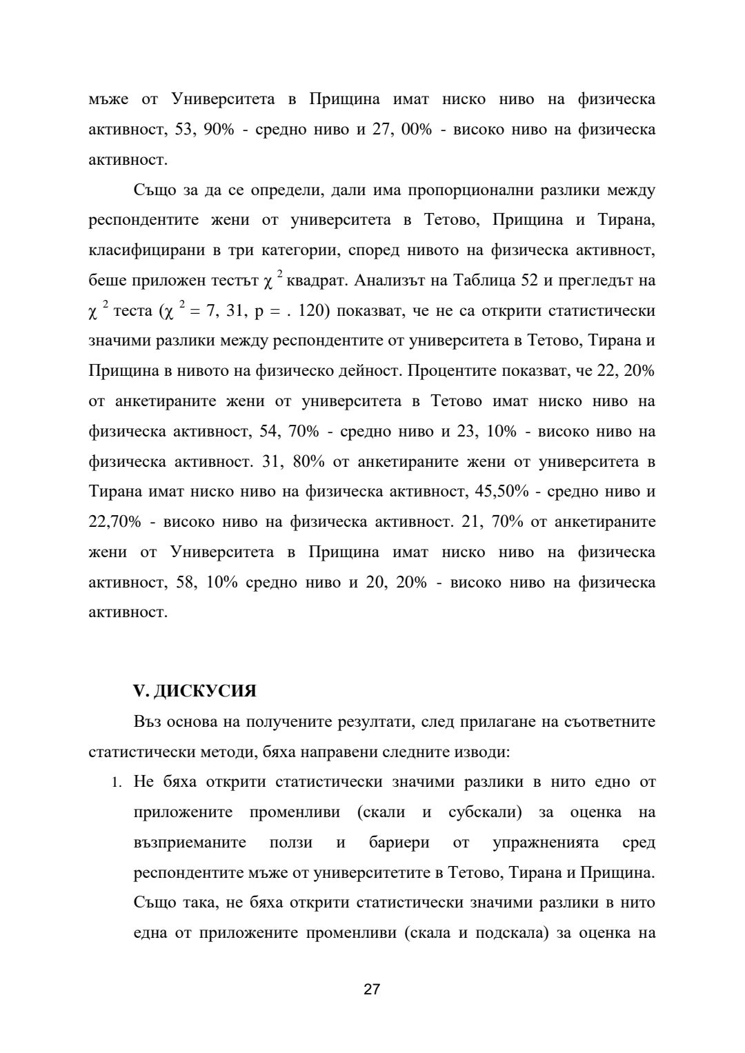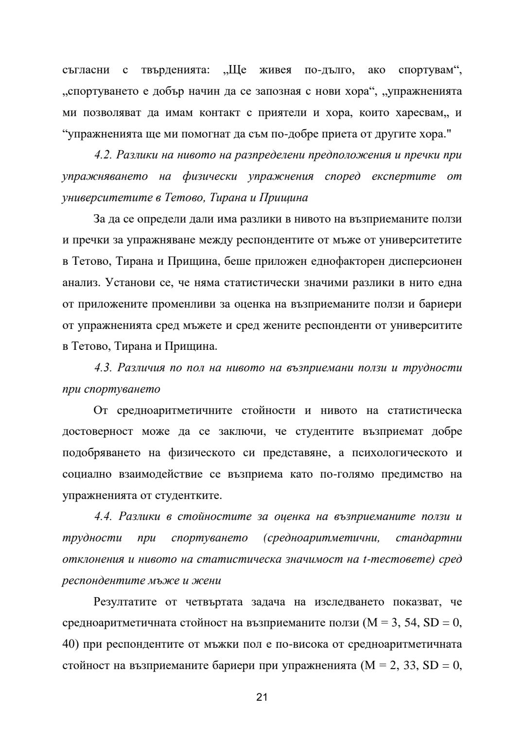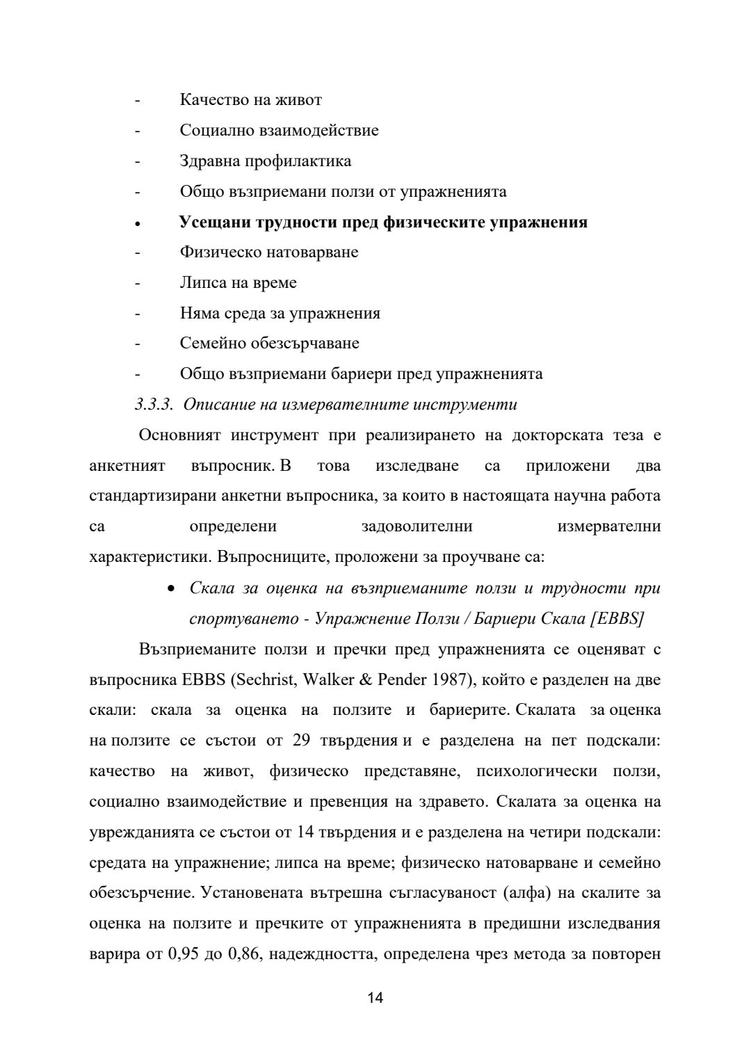 Определяне на нивото на предимства и трудности пред физическата активност на студенти : Автореферат / Ндерим Лимани ; Науч. ръководител Людмил Петров