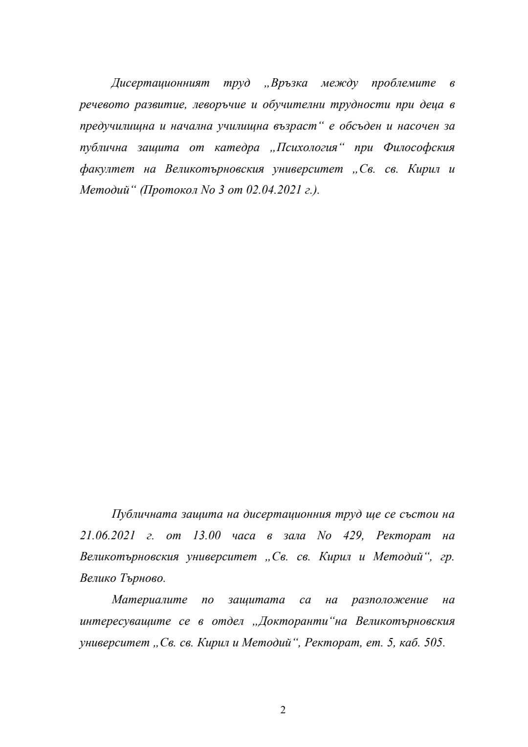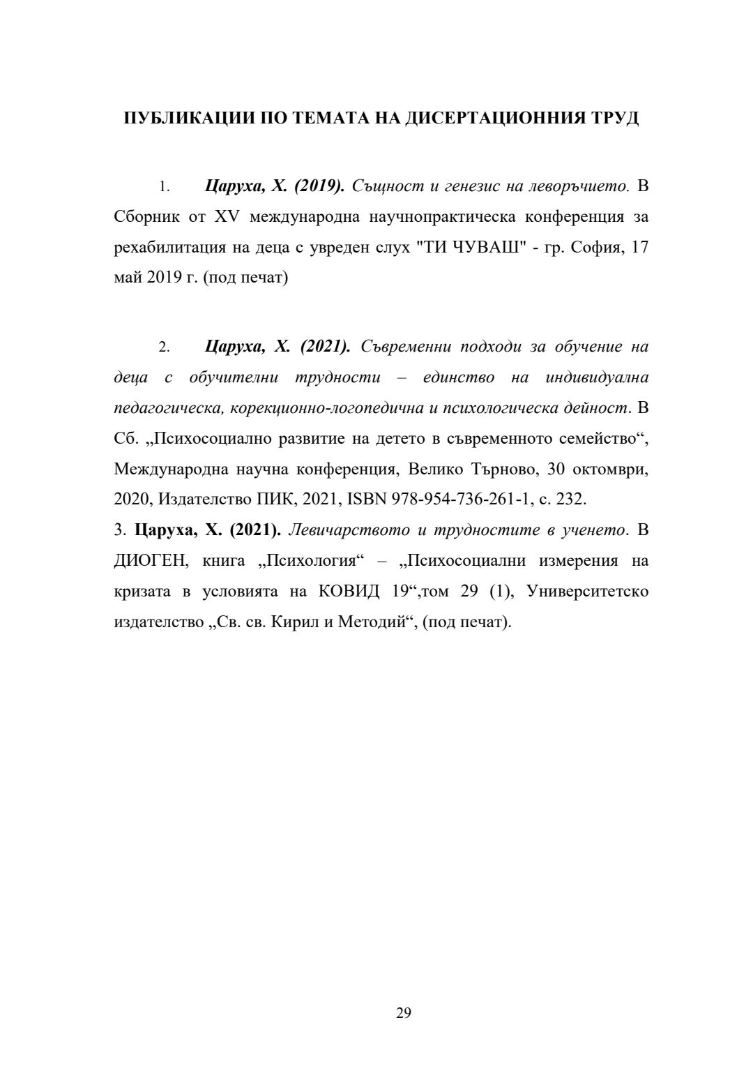 Връзка между проблеми в речевото развитие, леворъчие и обучителни трудности при деца в предучилищна и начална училищна възраст : Автореферат / Хайдо Царуха ; Науч. ръководител Милена Моцинова-Бръчкова