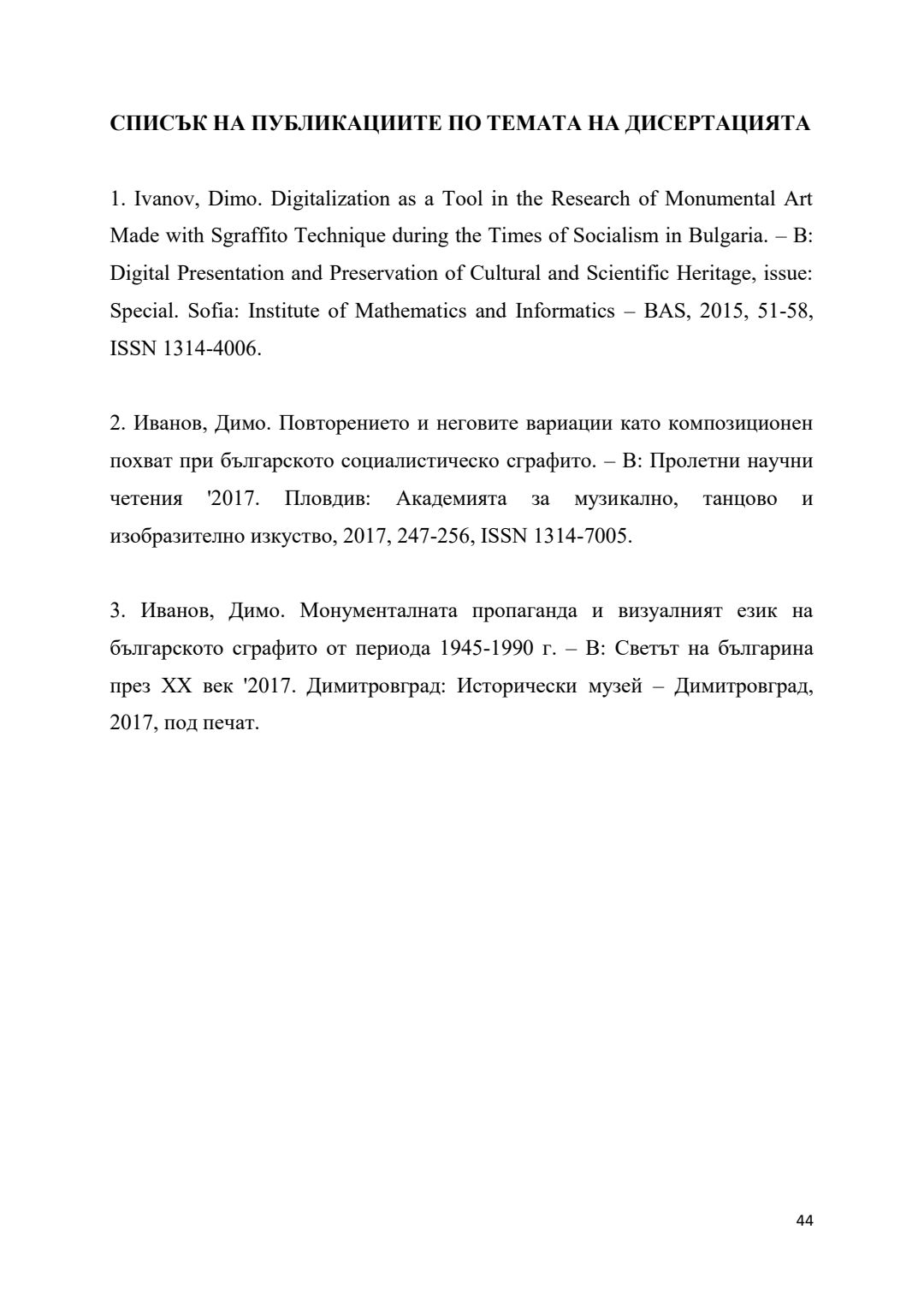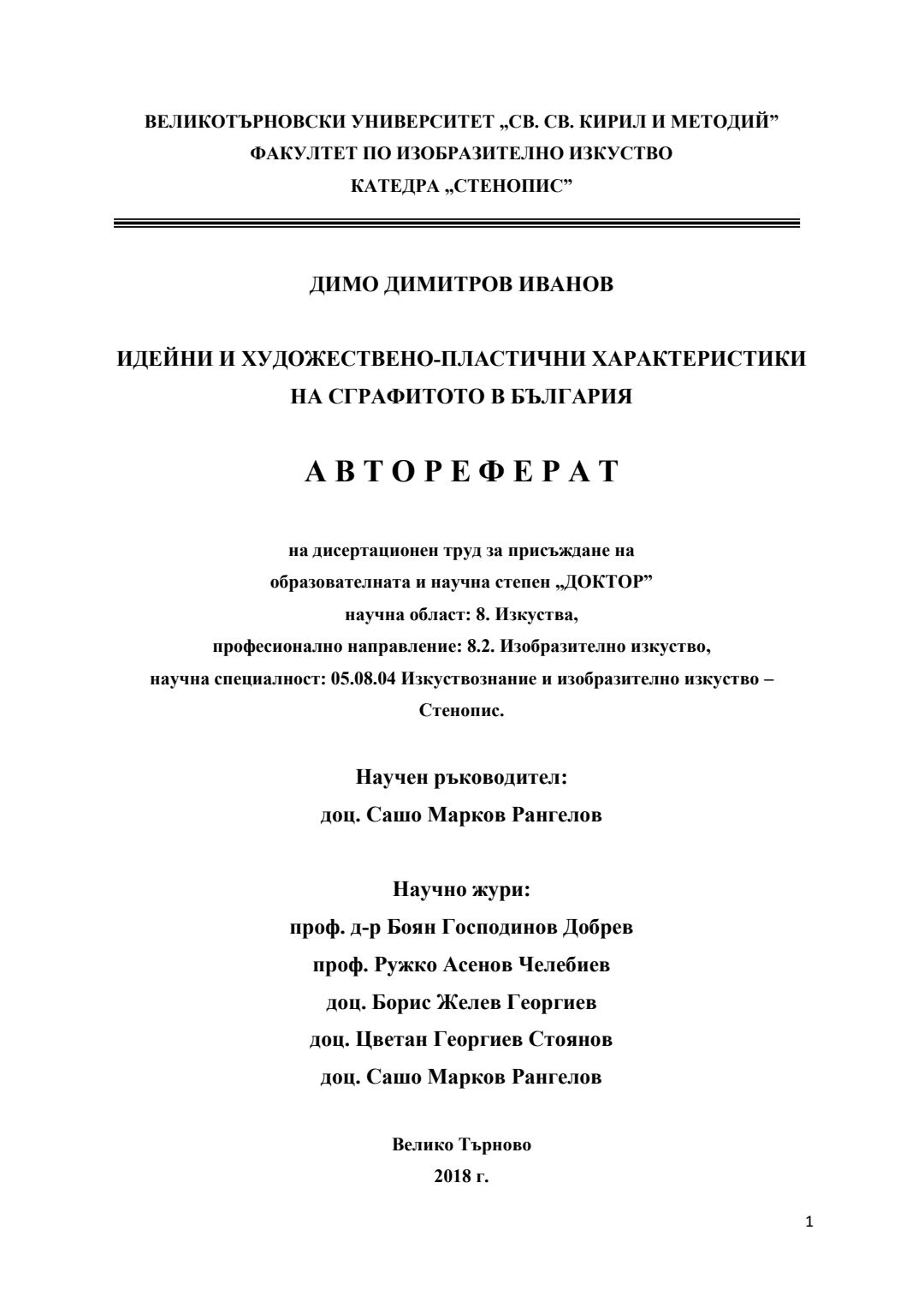 Идейни и художествено-пластични характеристики на сграфитото в България : Автореферат / Димо Димитров Иванов ; Науч. ръководител: Сашо Марков Рангелов