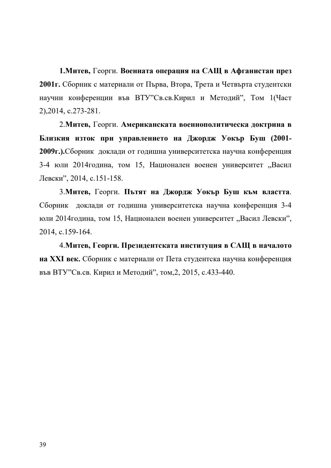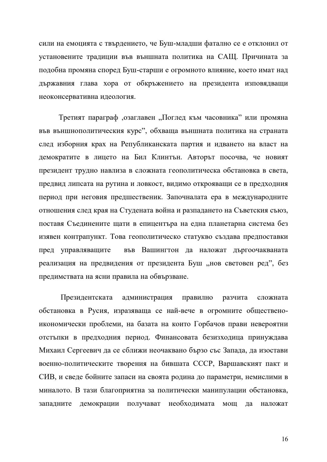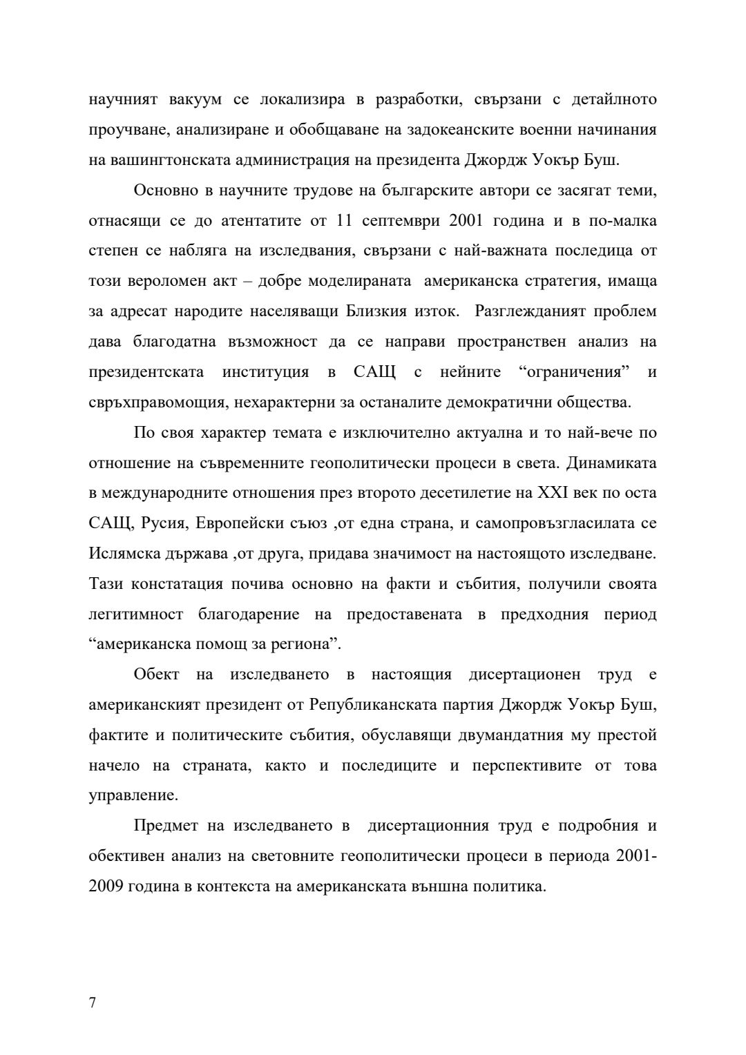 Външната политика на Джордж Уокър Буш (2001-2009) в американската геополитическа стратегия : Автореферат / Георги Йорданов Митев ; Науч. ръководител Ангелина Марковска