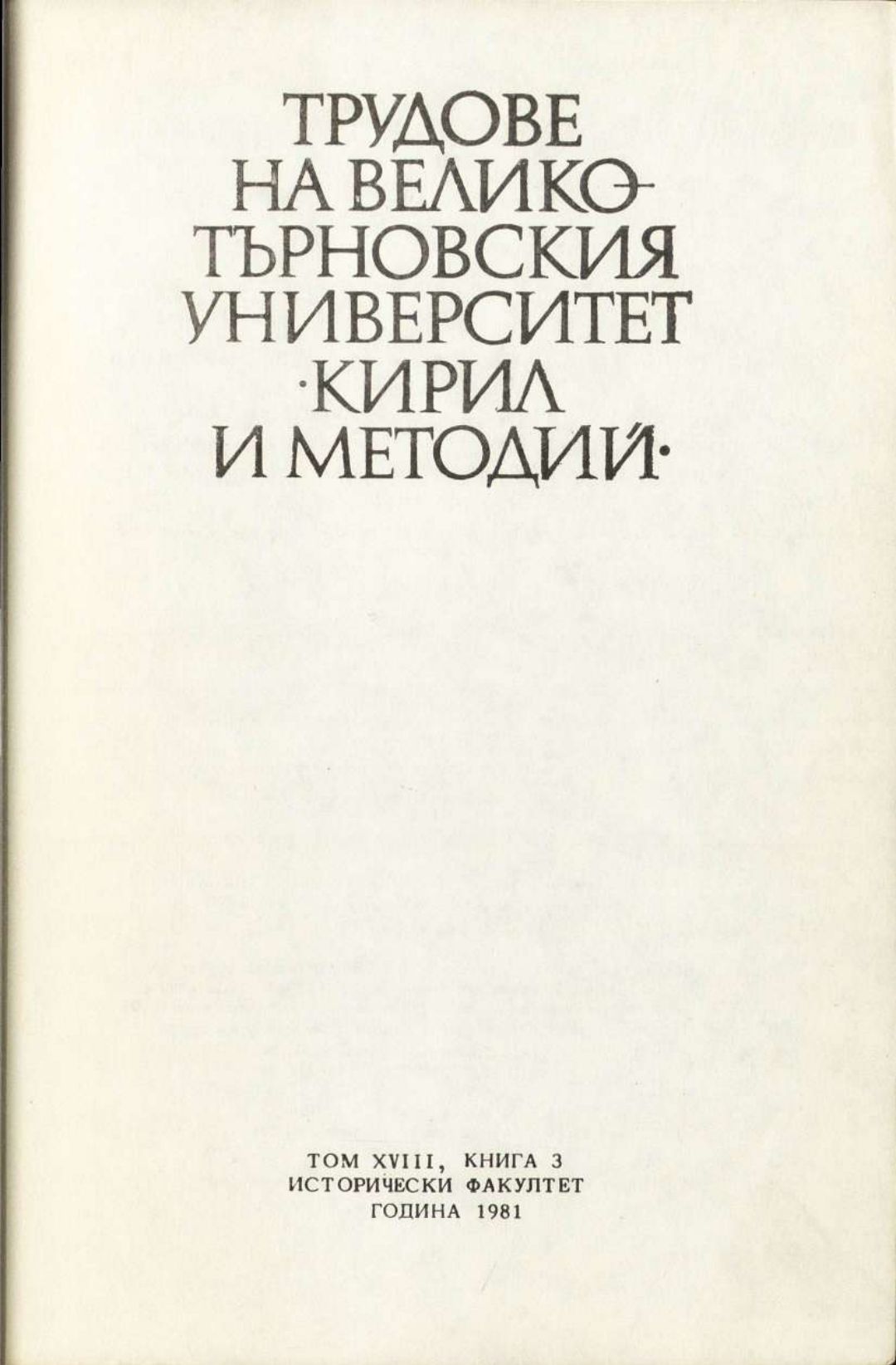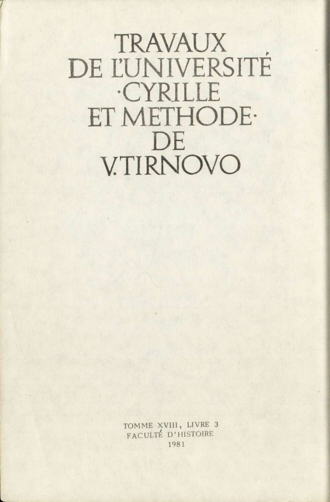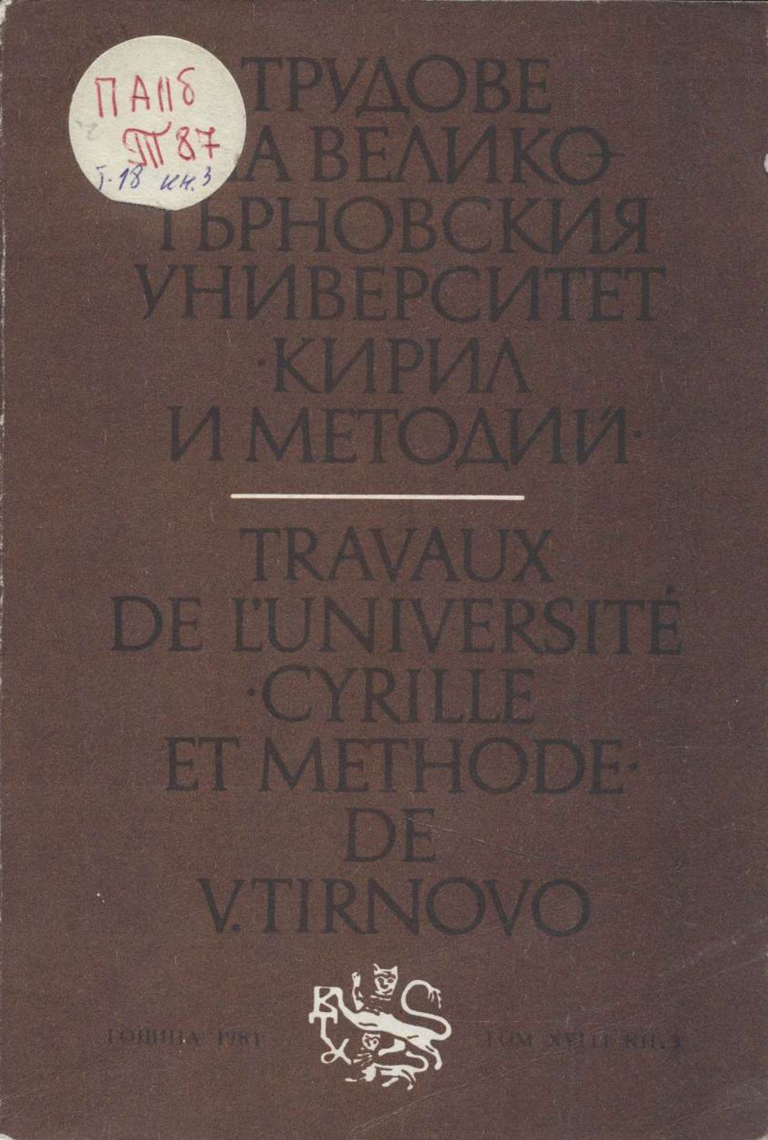 Том 18. Кн. 3. Трудове на Великотърновския университет "Св. св. Кирил и Методий". Исторически факултет = Travaux de L'universite St. St. Cyrille et Methode de V. Tirnovo. Faculte histoire