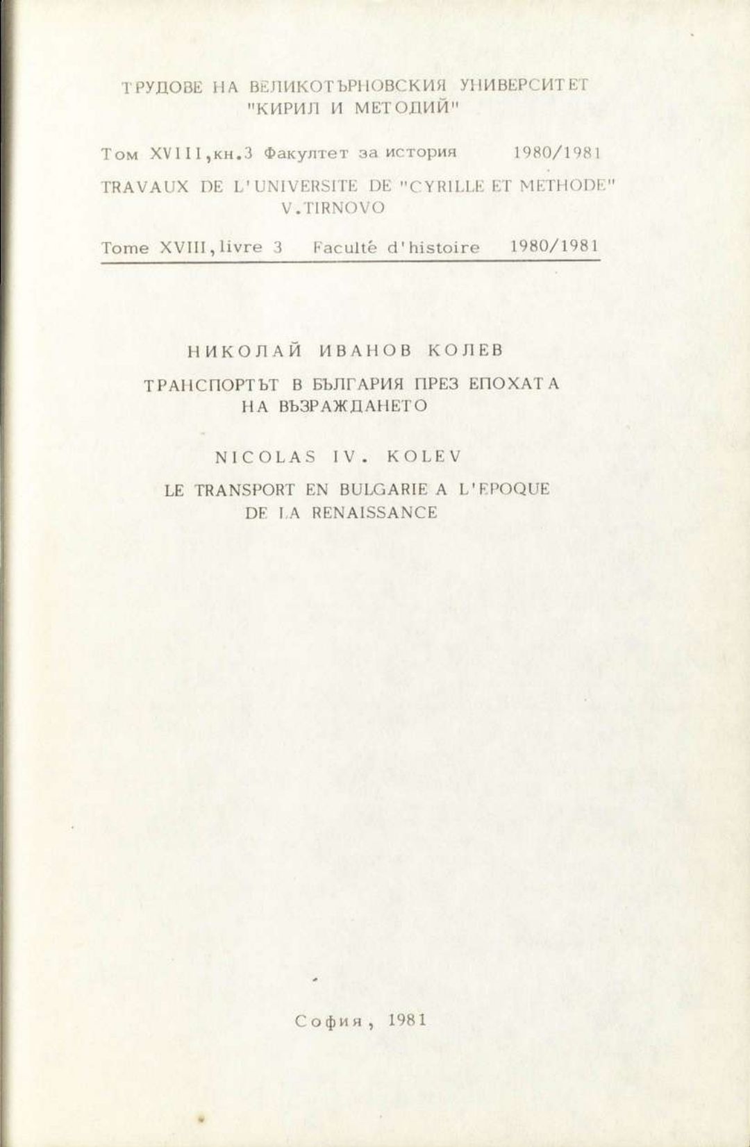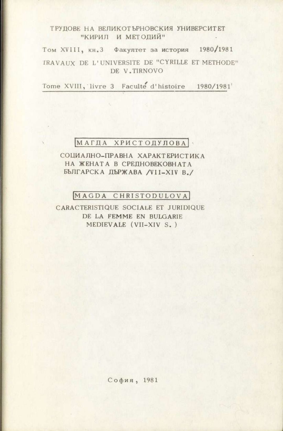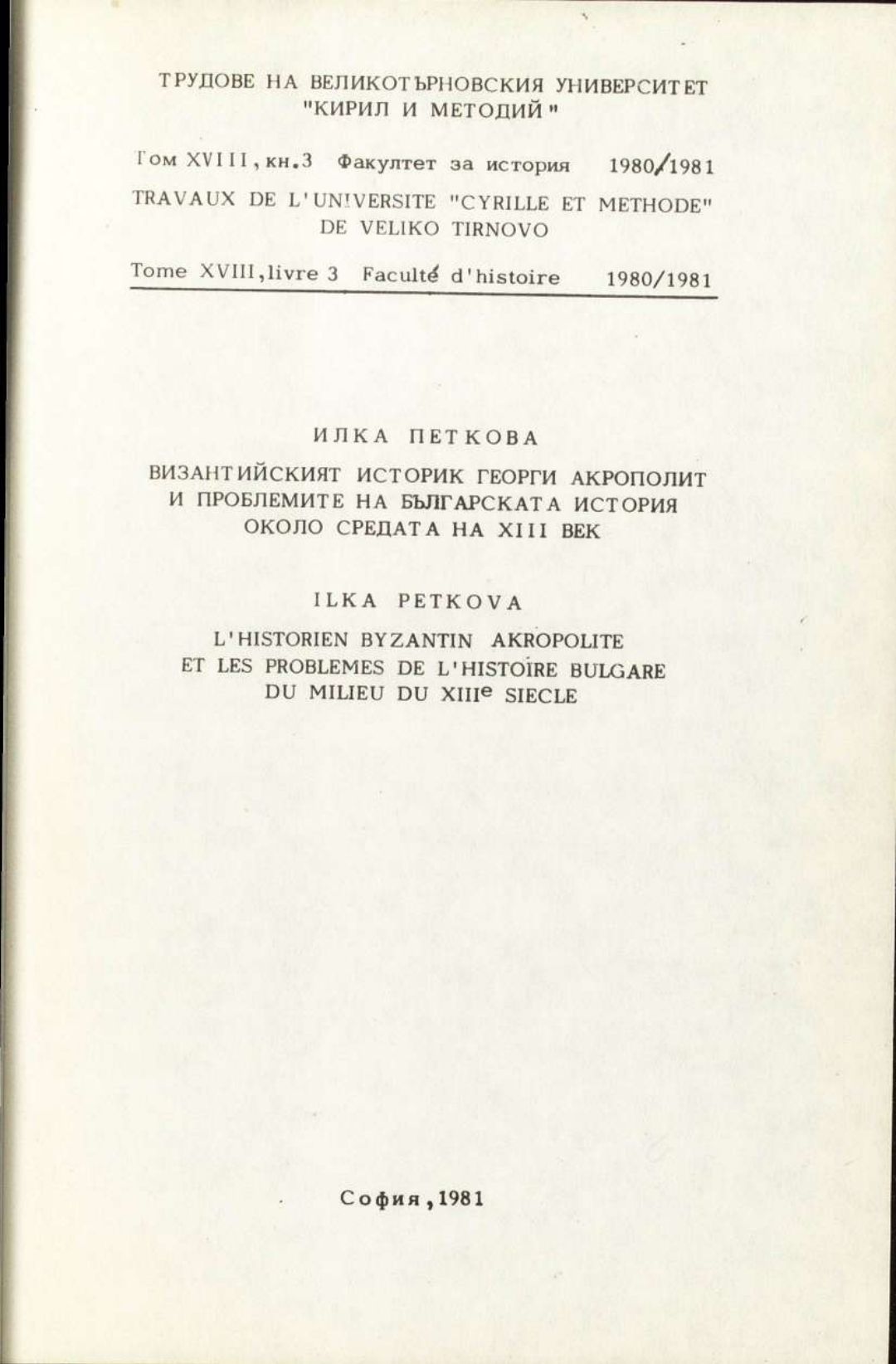 Том 18. Кн. 3. Трудове на Великотърновския университет "Св. св. Кирил и Методий". Исторически факултет = Travaux de L'universite St. St. Cyrille et Methode de V. Tirnovo. Faculte histoire