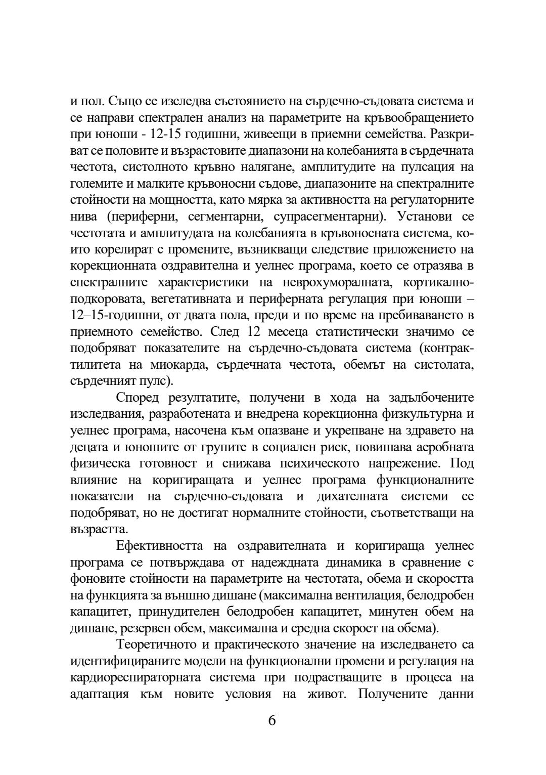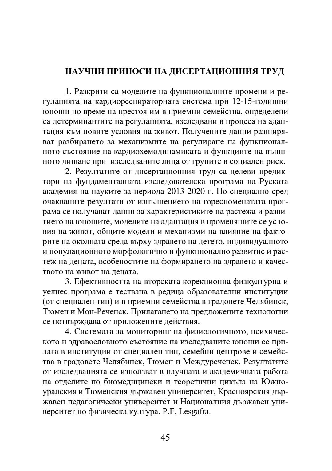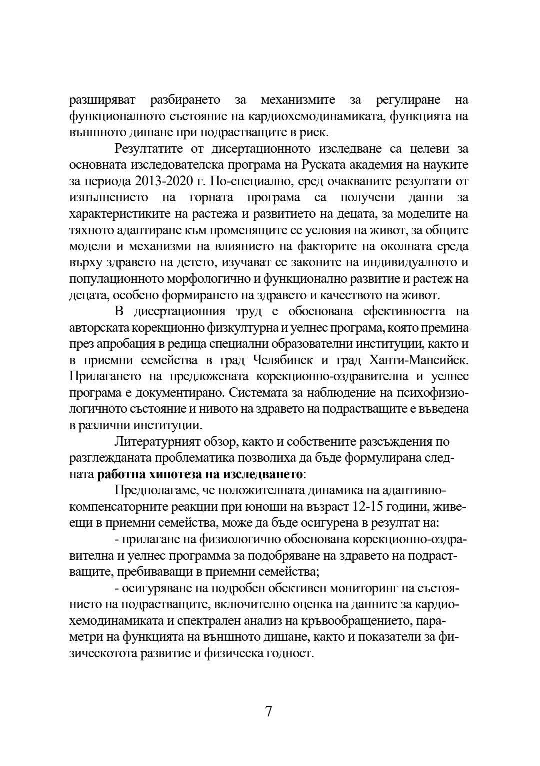 Модели на адаптивно-компесаторни реакции на тялото при юноши на възраст 12-15 години, отглеждани в приемни семейства, при прилагане на коригираща физкултурна и уелнес програма : Автореферат / Алберт Сибагатуллович Аминов ; Науч. ръководител Стефания Беломъжева-Димитрова