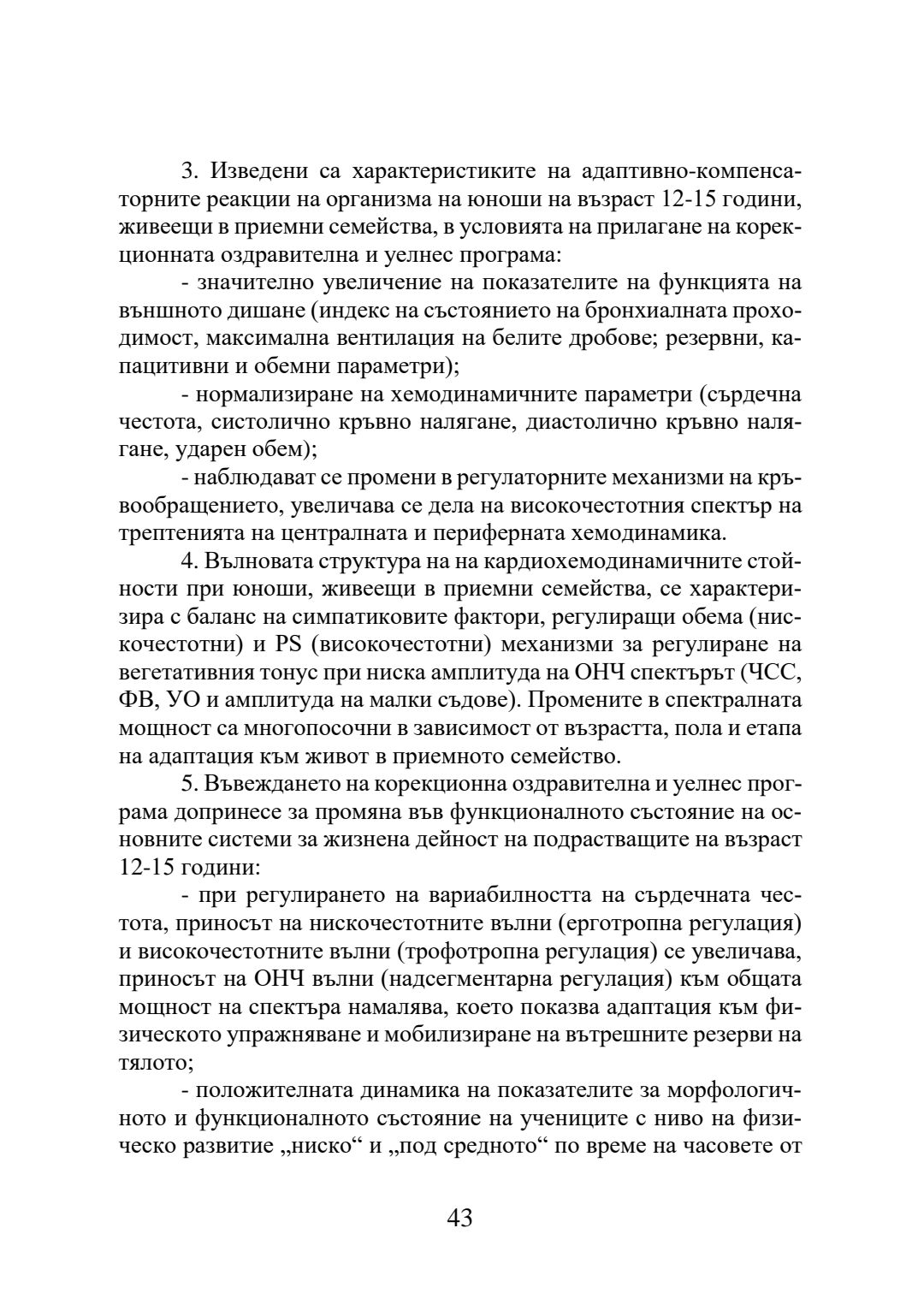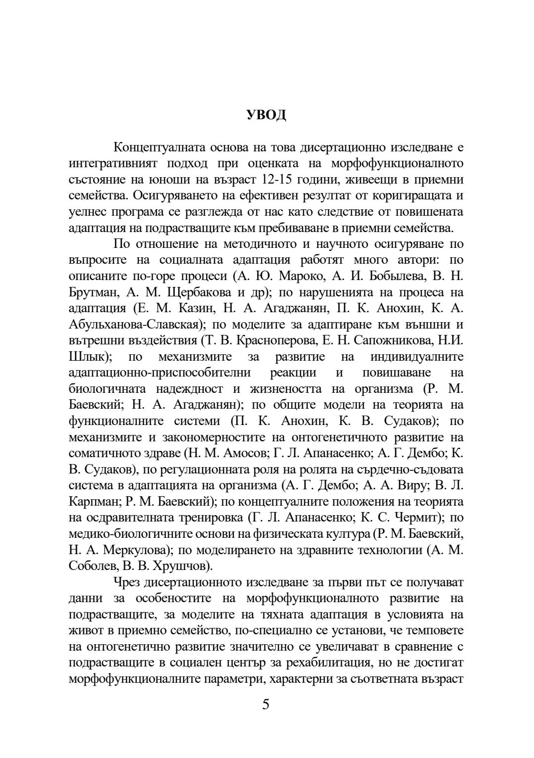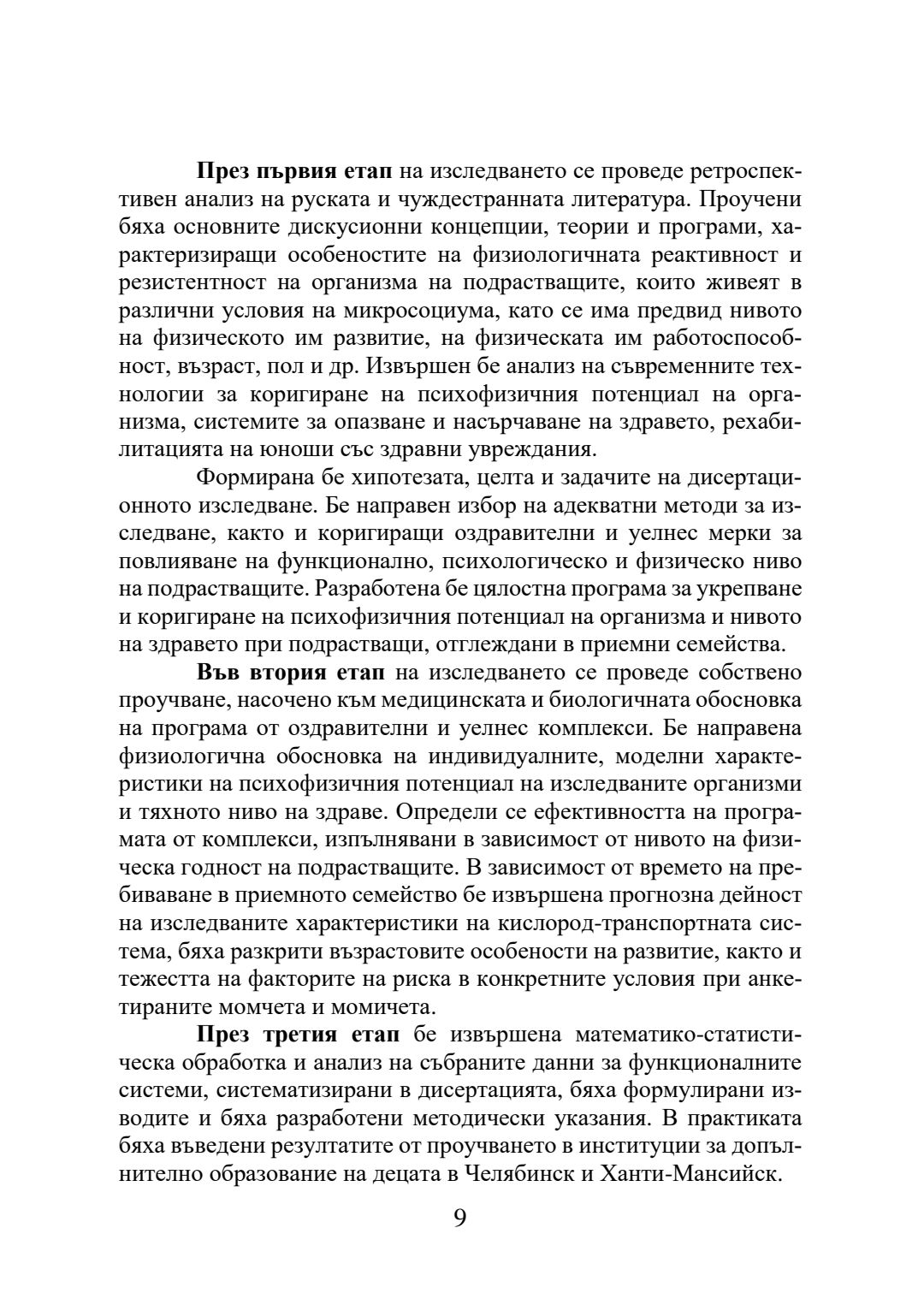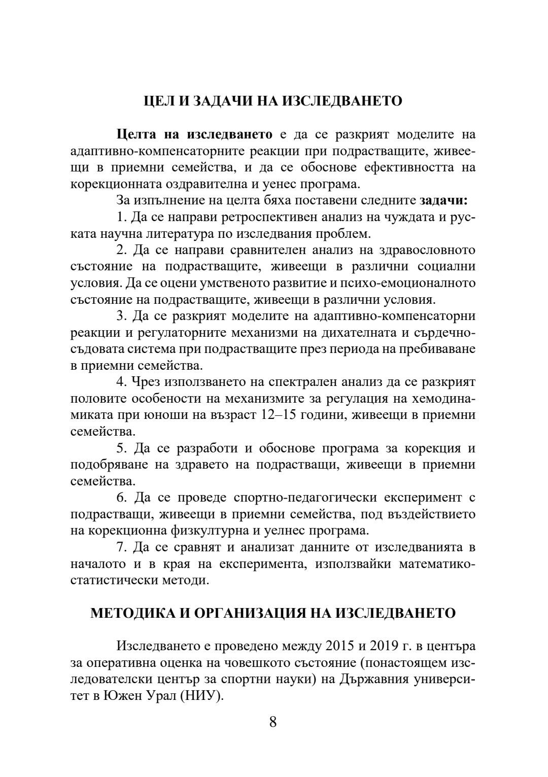 Модели на адаптивно-компесаторни реакции на тялото при юноши на възраст 12-15 години, отглеждани в приемни семейства, при прилагане на коригираща физкултурна и уелнес програма : Автореферат / Алберт Сибагатуллович Аминов ; Науч. ръководител Стефания Беломъжева-Димитрова