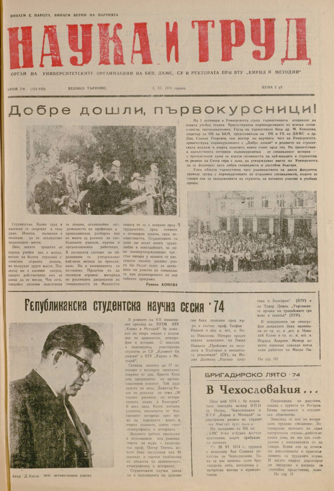 Год.13, 7-8 (131-132). Наука и труд : Орган на институтските комитети на БКП, ДКМС, СУ и Ректората при ВПИ "Братя Кирил и Методий"
