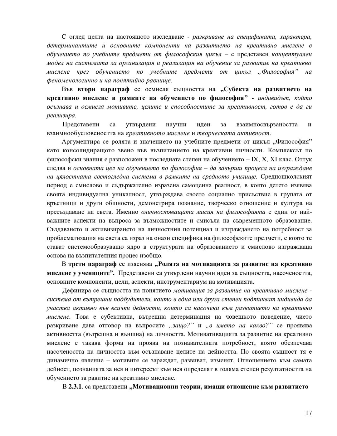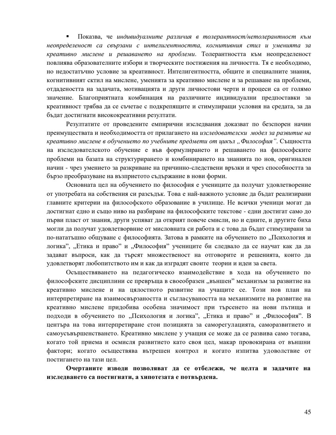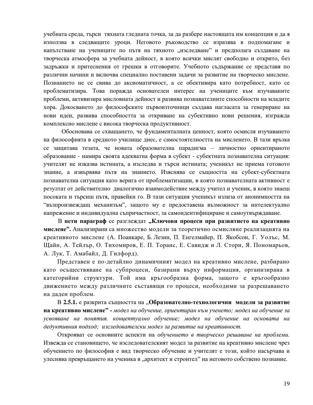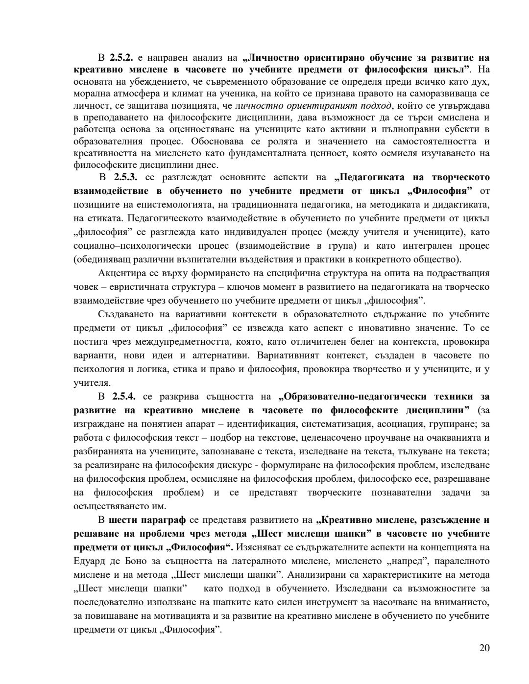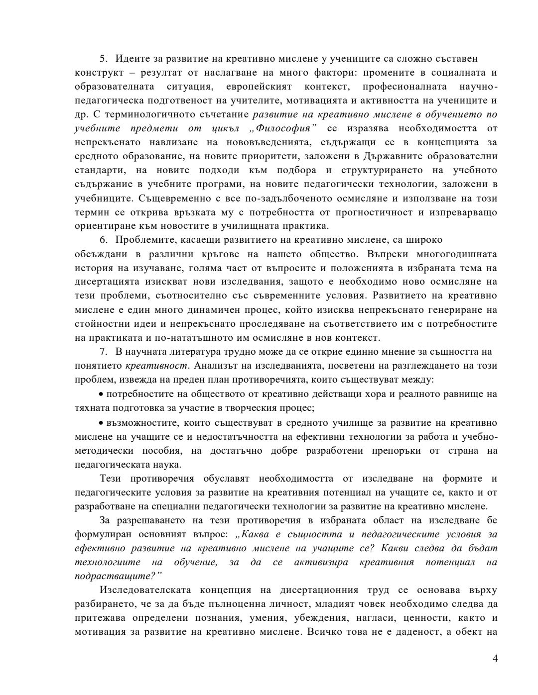 Концептуално-образователен модел за развитие на креативно мислене в обучението по учебните предмети от цикъл „Философия“ : Автореферат / Антоанета Николова Чобанска ; Науч. ръководител Антония Кръстева