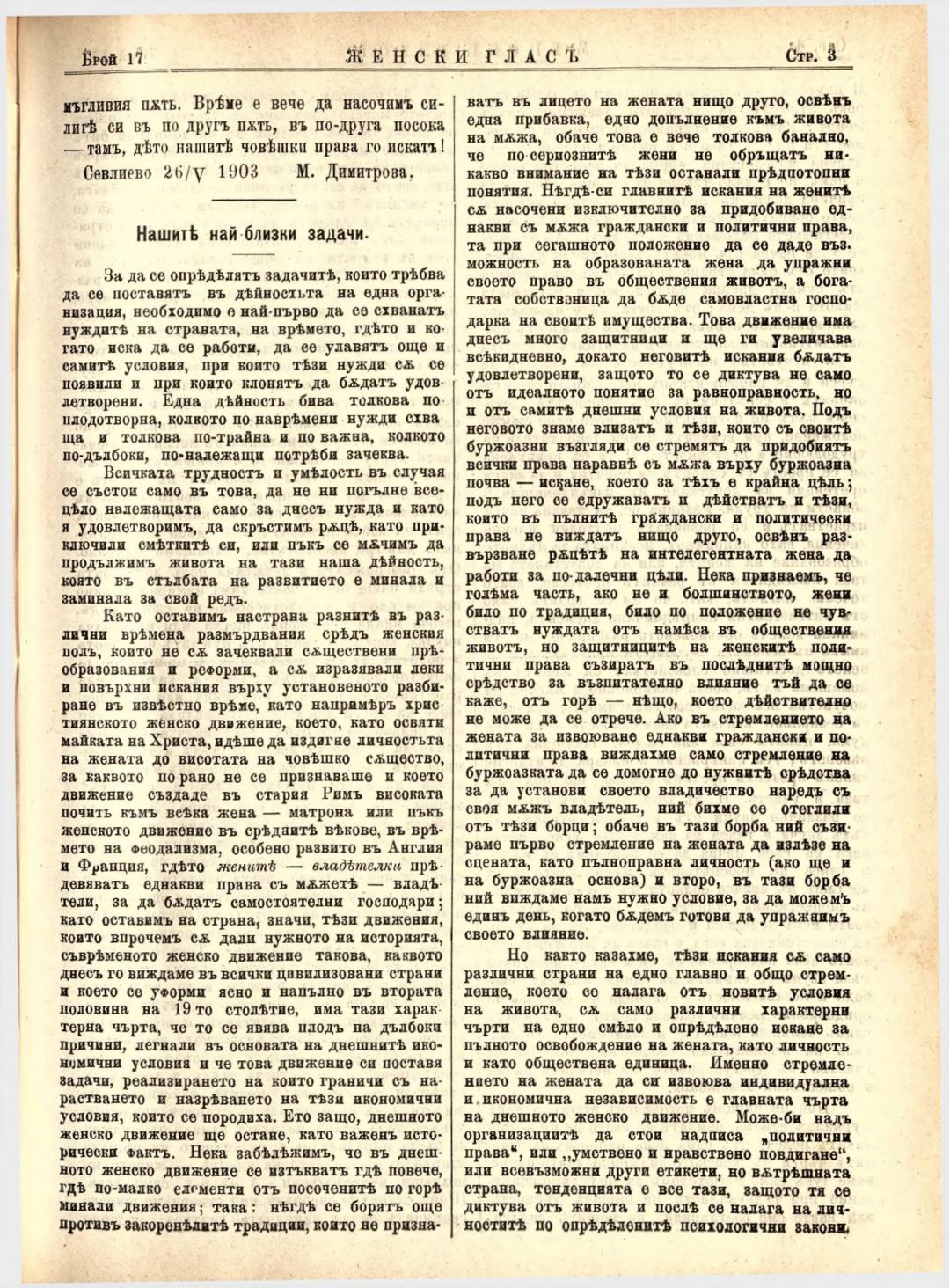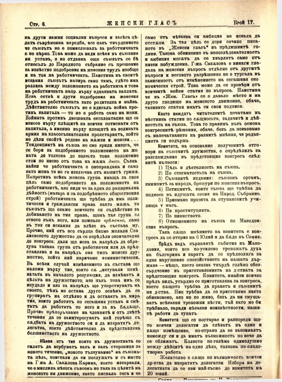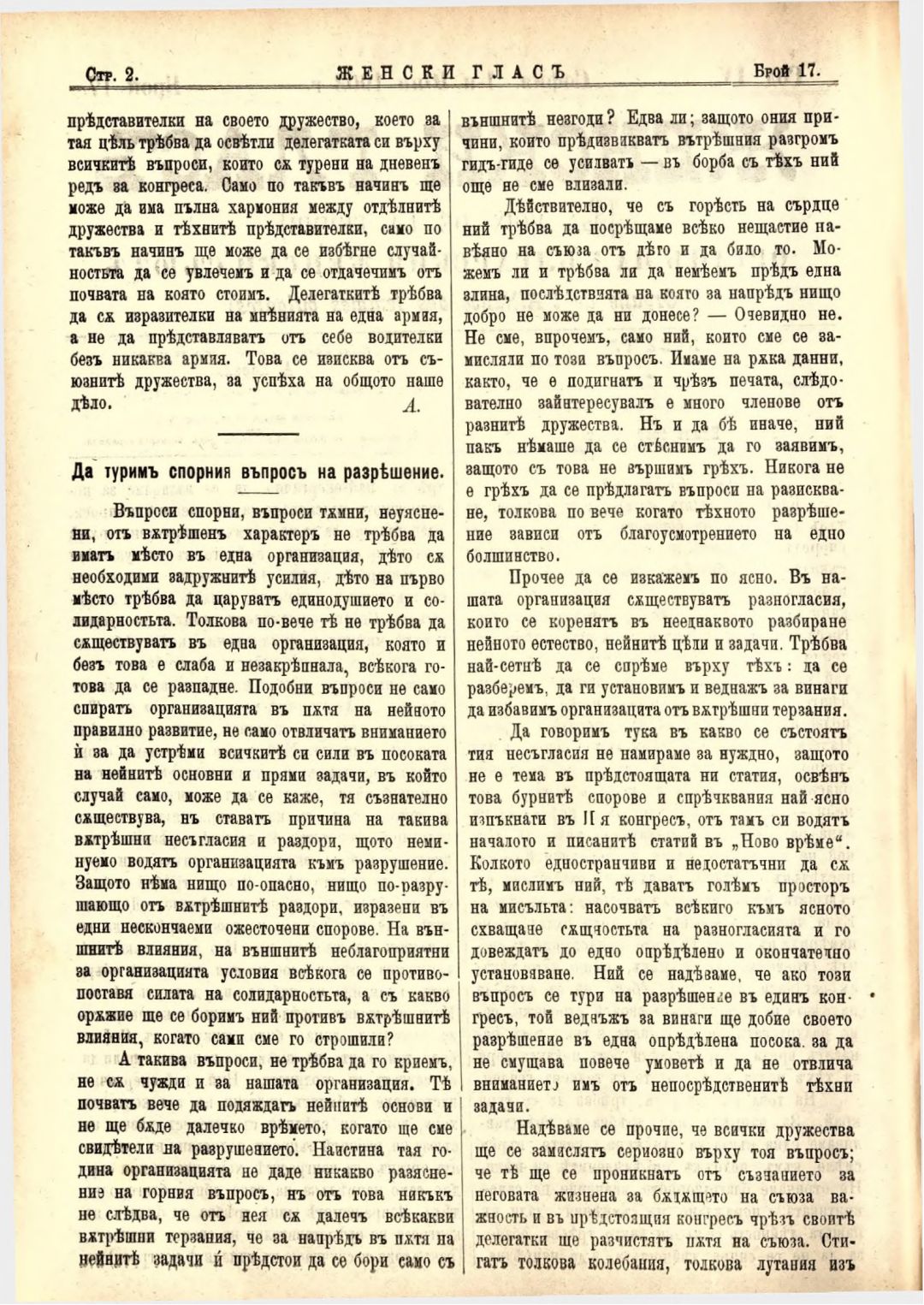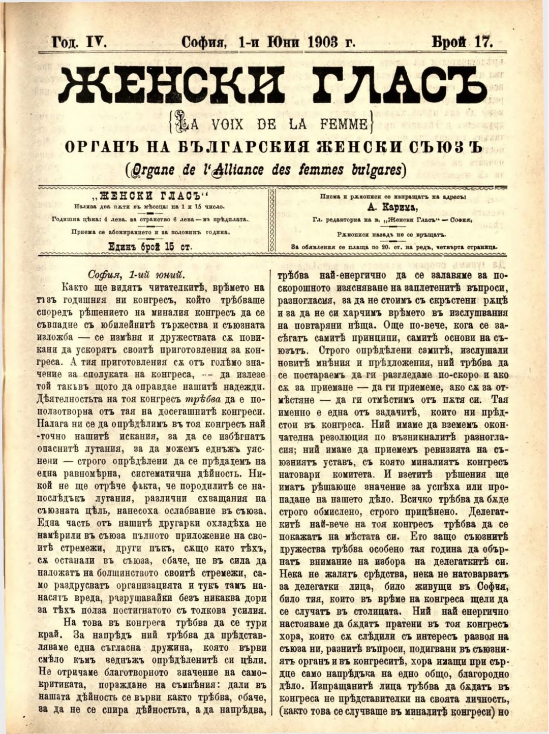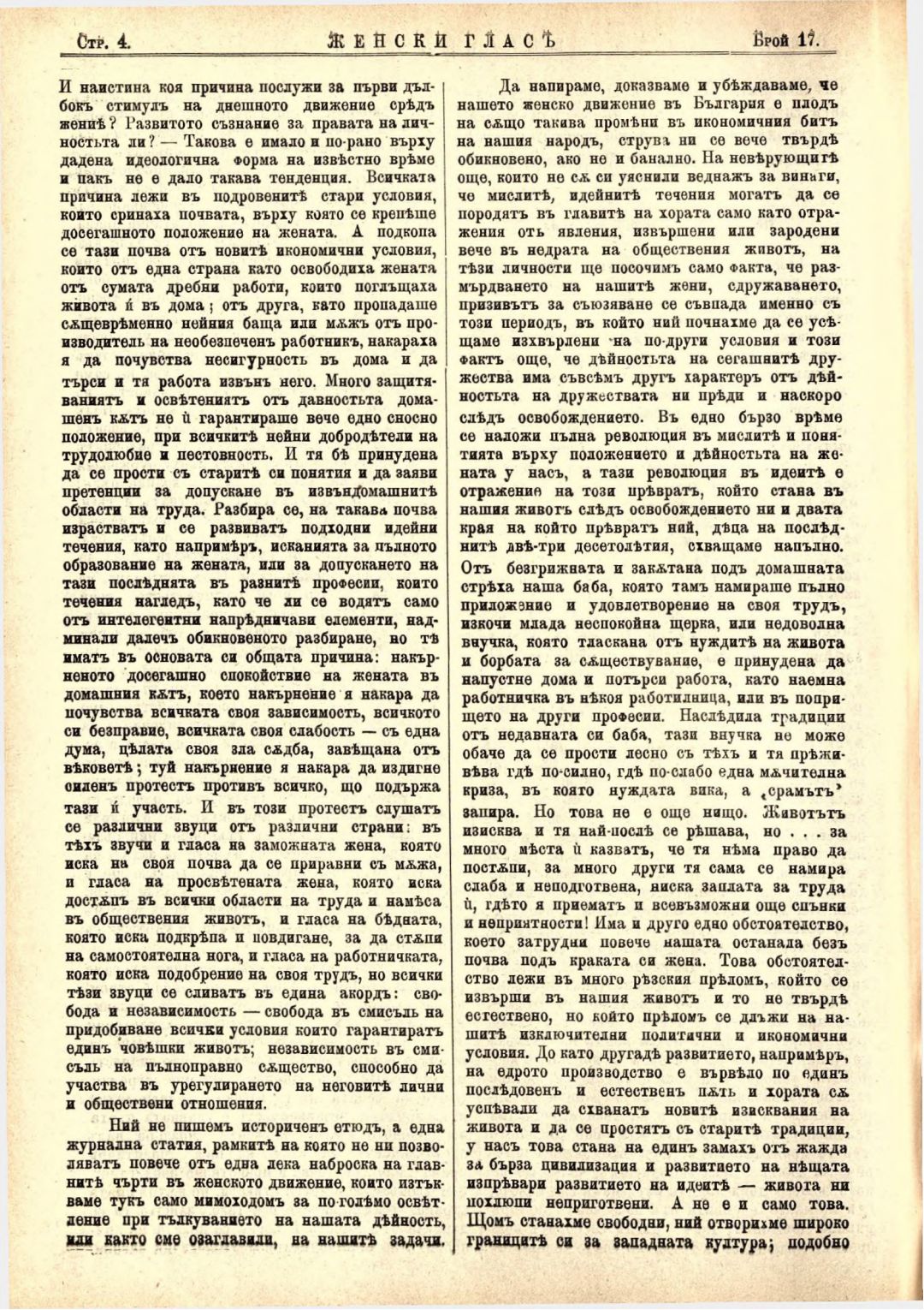 Год. 4,№ 17 Женски глас : Орган на българския женски съюз