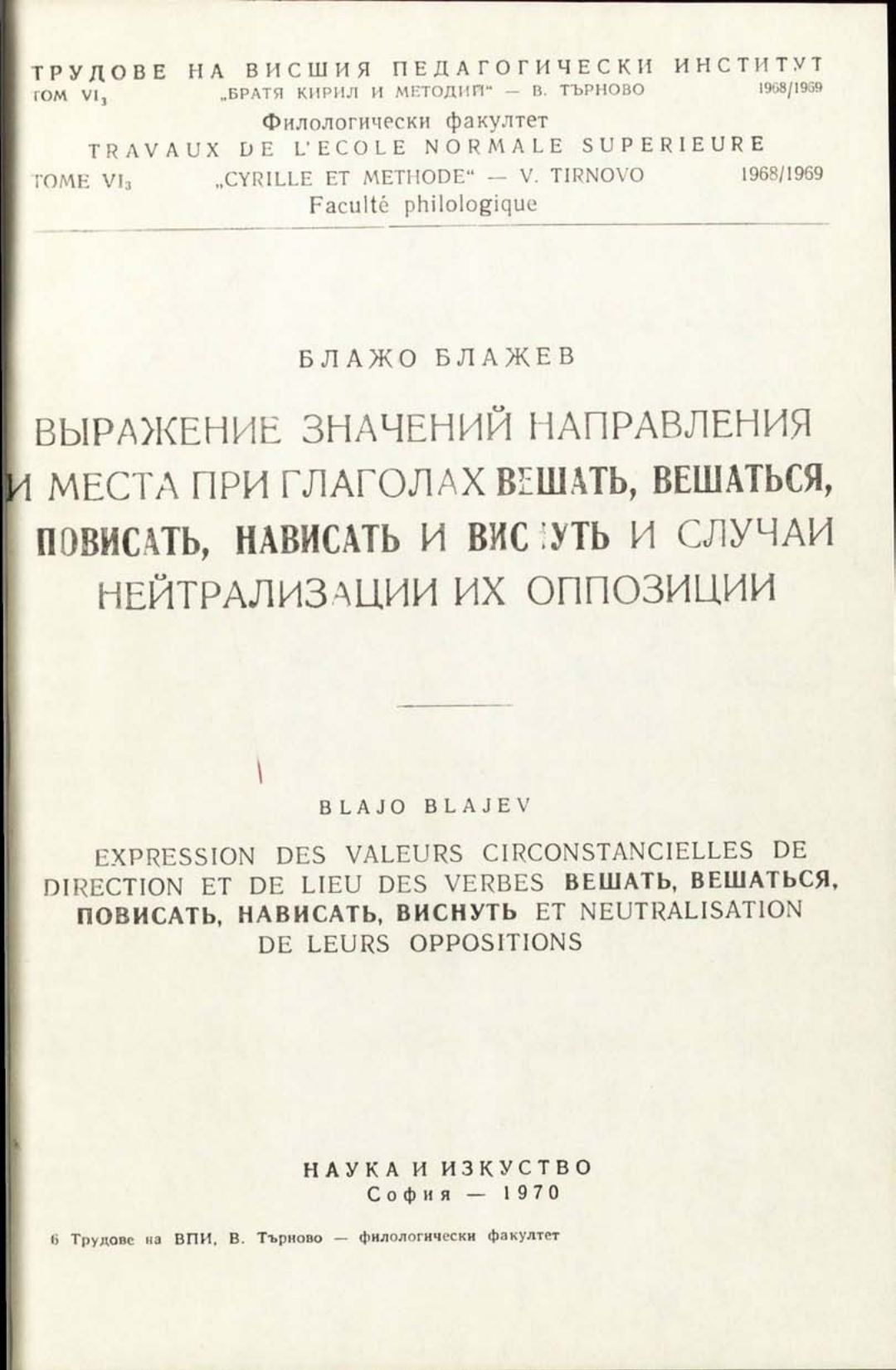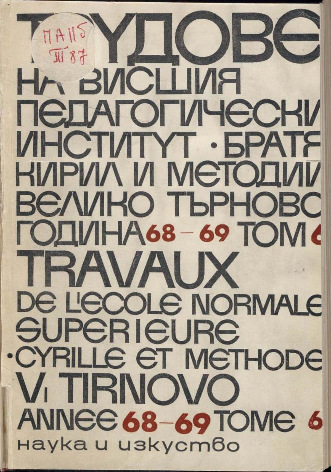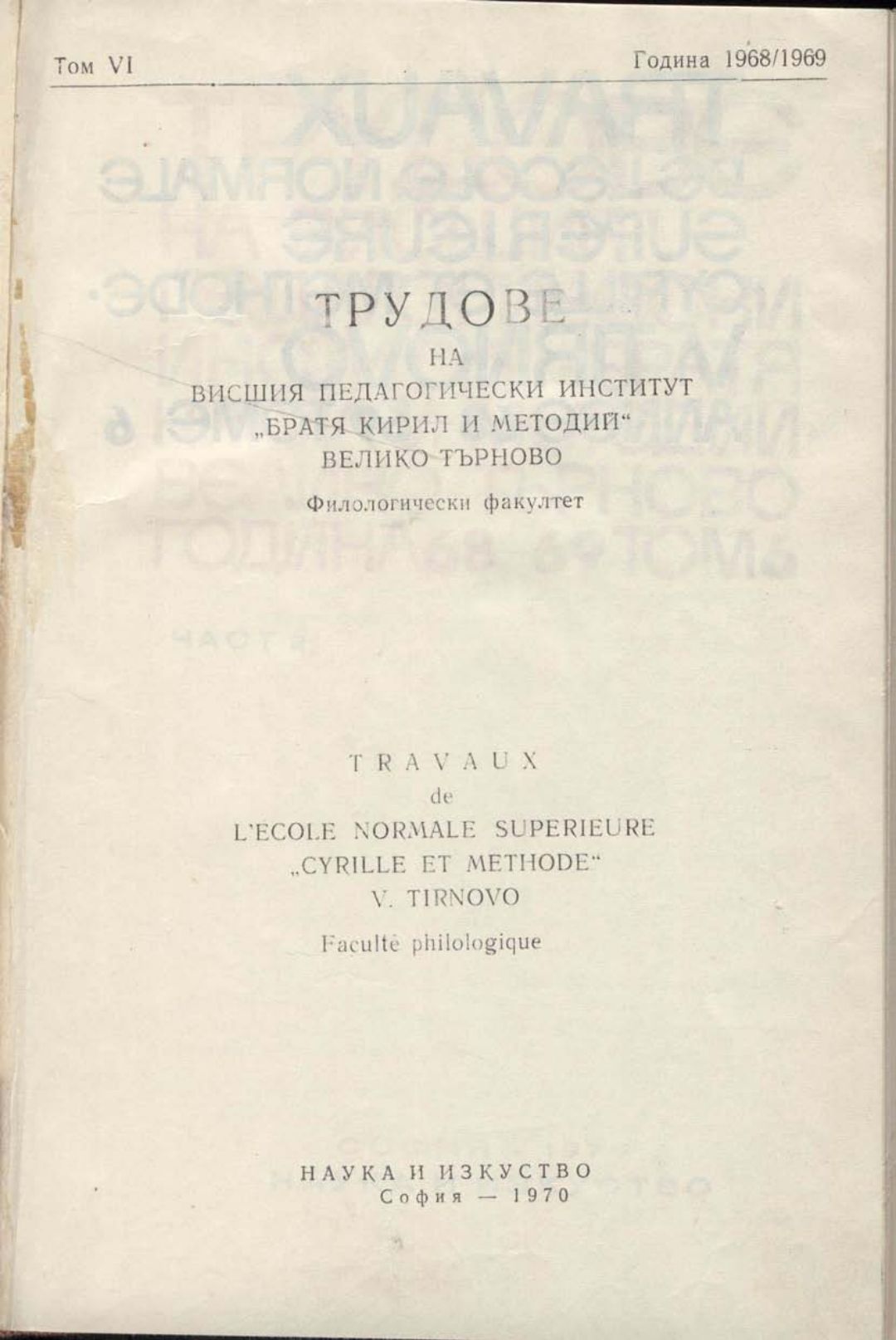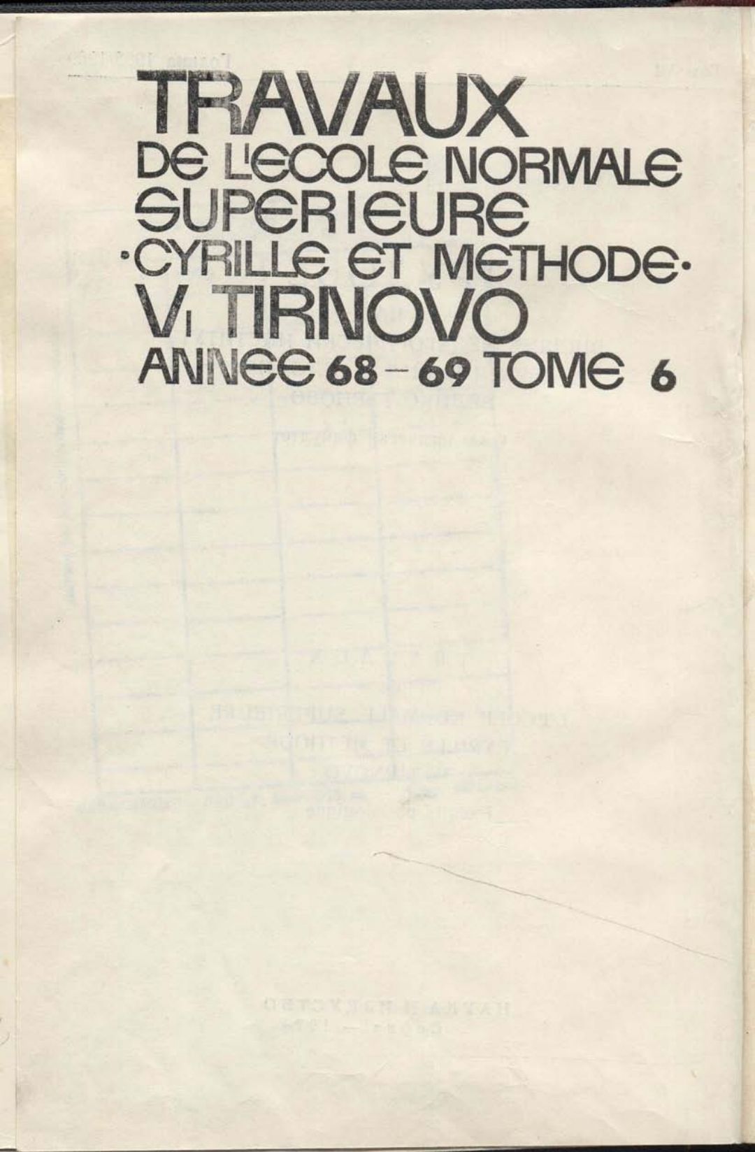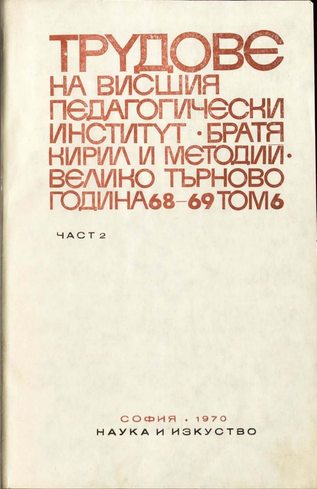 Том 6. Ч. 2. Трудове на Висшия педагогически институт "Братя Кирил и Методий" във Велико Търново = Travaux de L'ecole normale superieure Cyrille et Methode - V.Tirnovo Паралелно заглавие Travaux de L'ecole normale superieure Cyrille et Methode - V.Tirnovo
