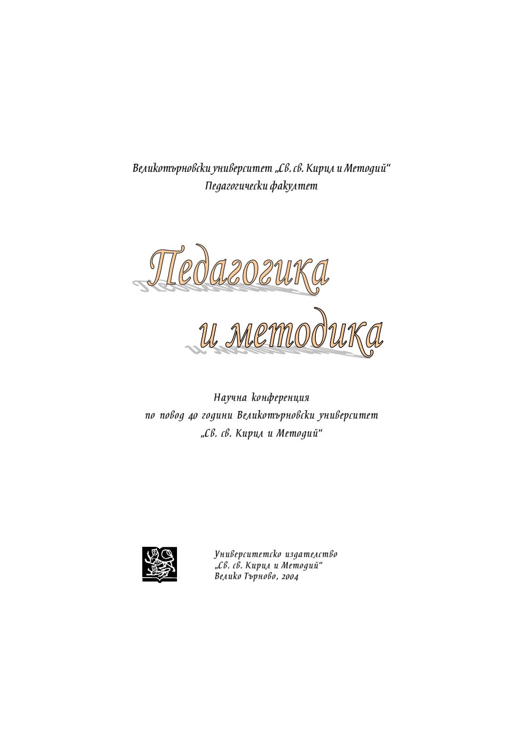 Педагогика и методика : Науч. конф. по повод 40 г. Великотърновски унив. Св. Св. Кирил и Методий