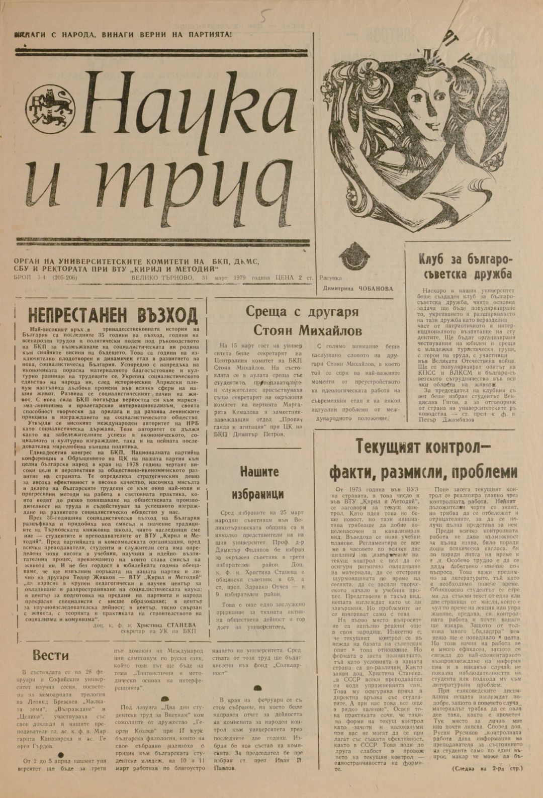 Год.18, 3-4 (205-206). Наука и труд : Орган на университетските комитети на БКП, ДКМС, СБУ и на Ректората при ВТУ "Братя Кирил и Методий"