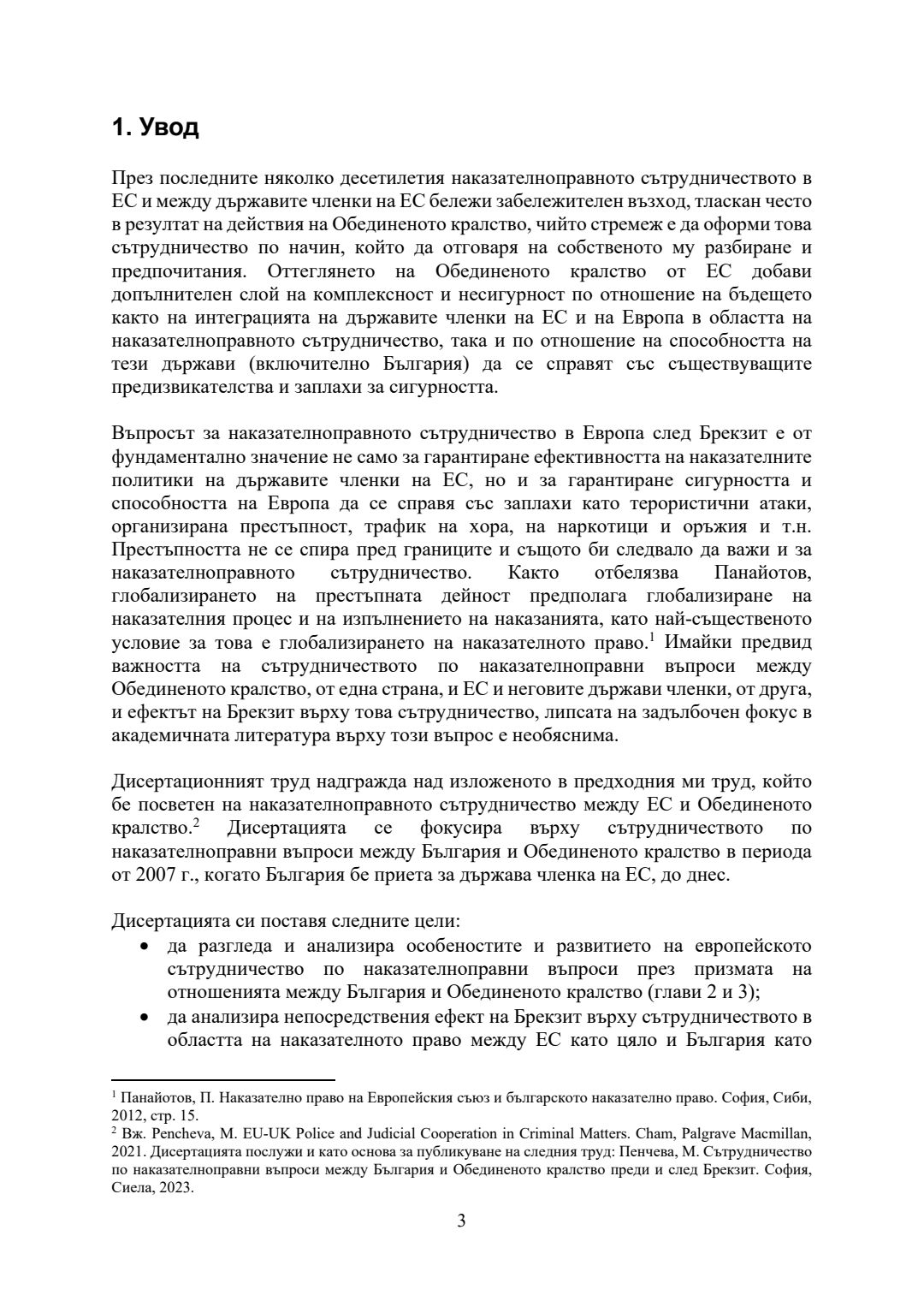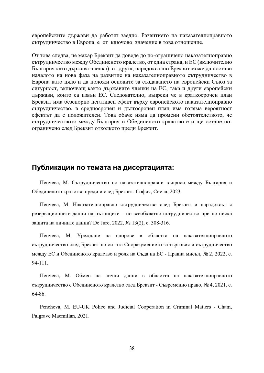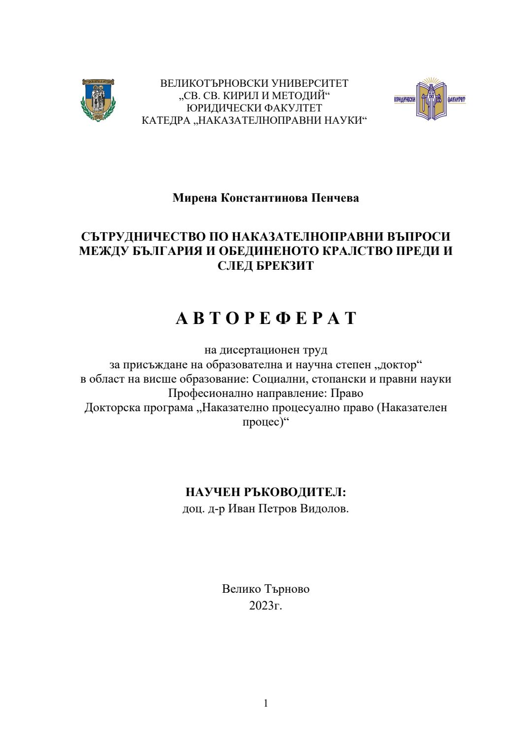 Сътрудничество по наказателноправни въпроси между България и Обединеното Кралство преди и след Брекзит : Автореферат / Мирена Константинова Пенчева ; Науч. ръководител Иван Видолов
