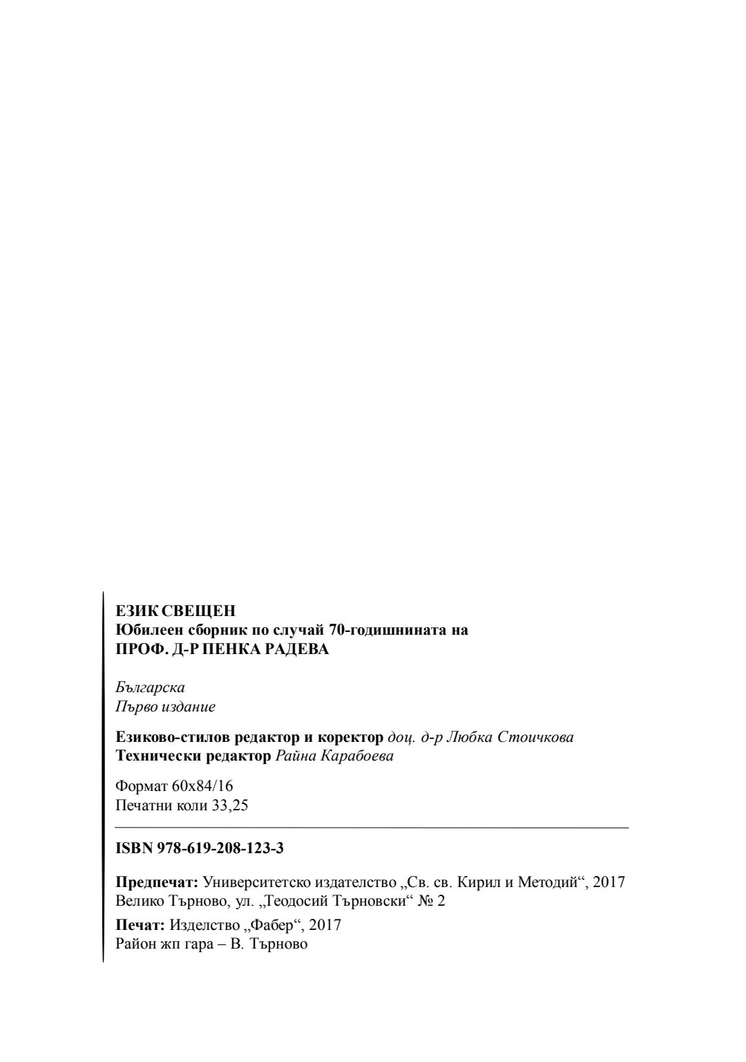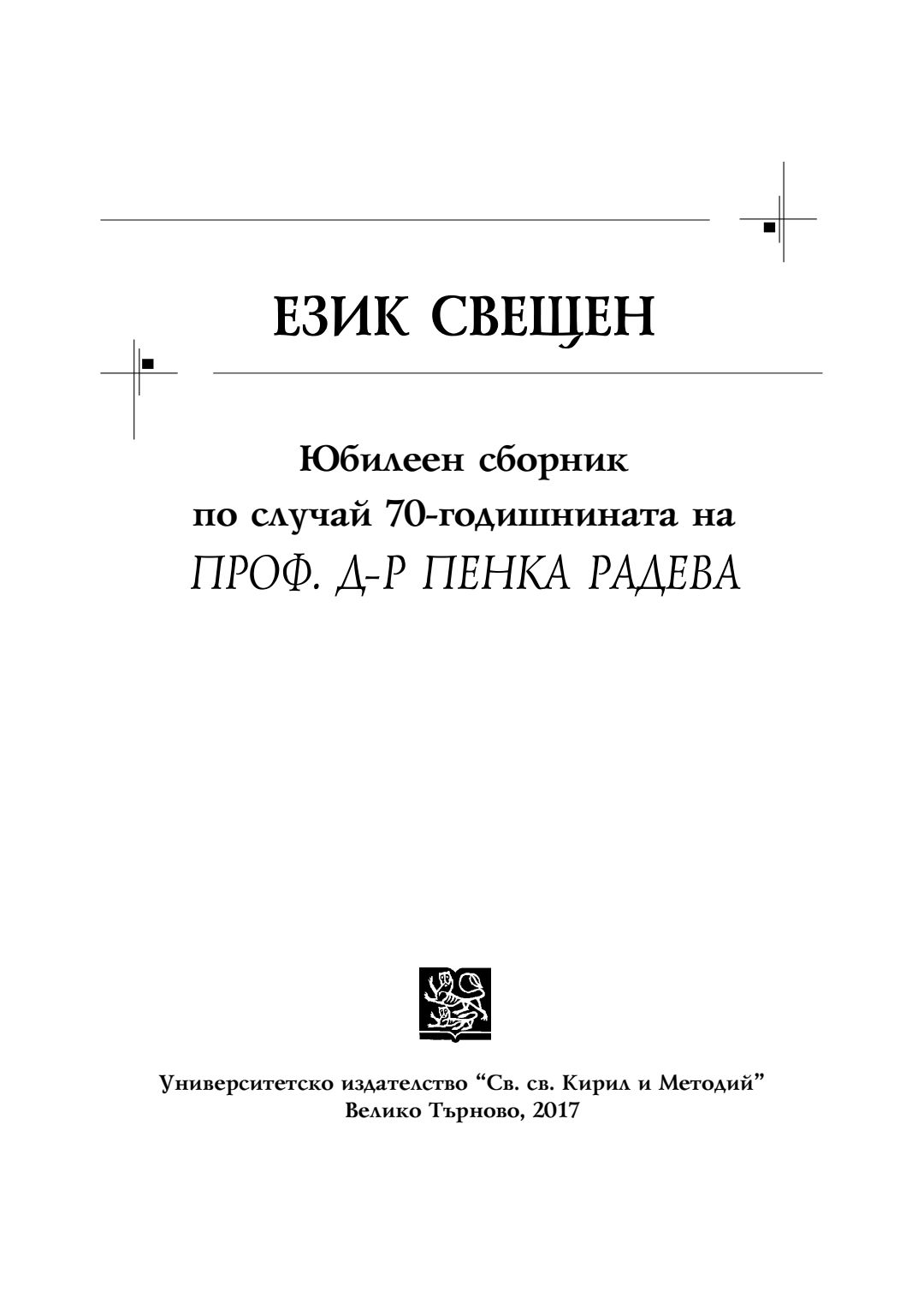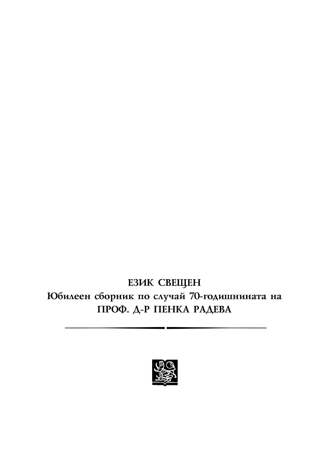 Език свещен : юбилеен сборник по случай 70-годишнината на проф. д-р Пенка Радева