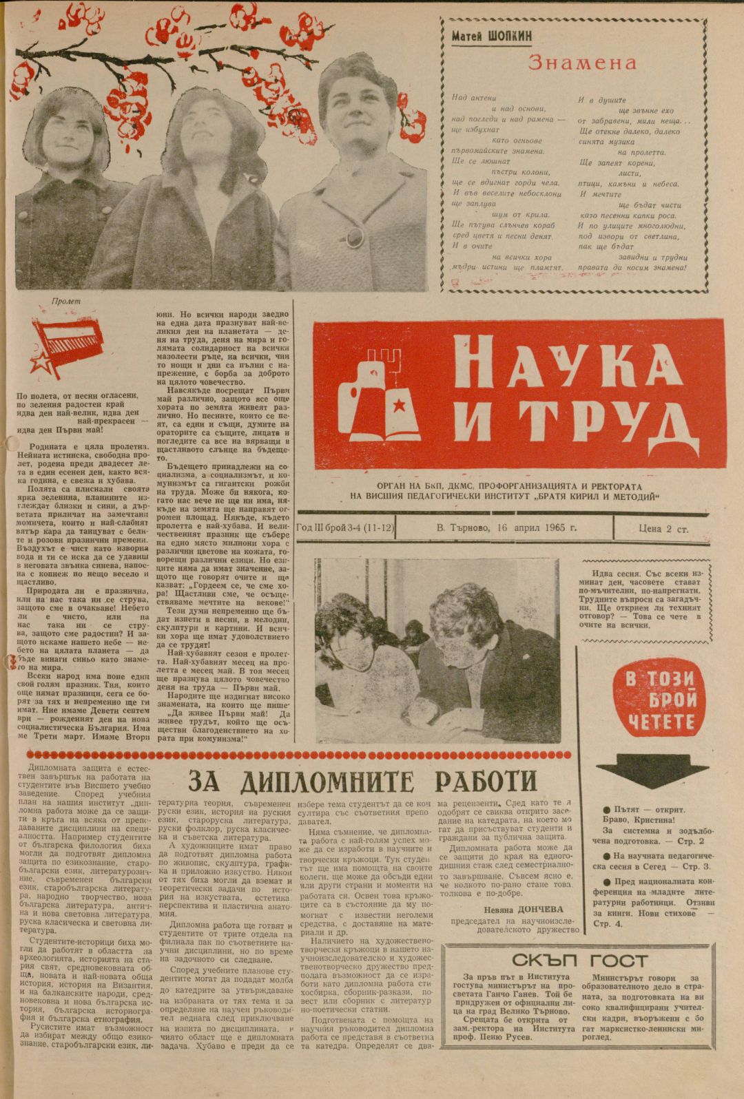 Год. 3, 3-4 (11-12). Наука и труд : Орган на Ректората, ДКМС и Профкомитета при ВПИ "Братя Кирил и Методий"