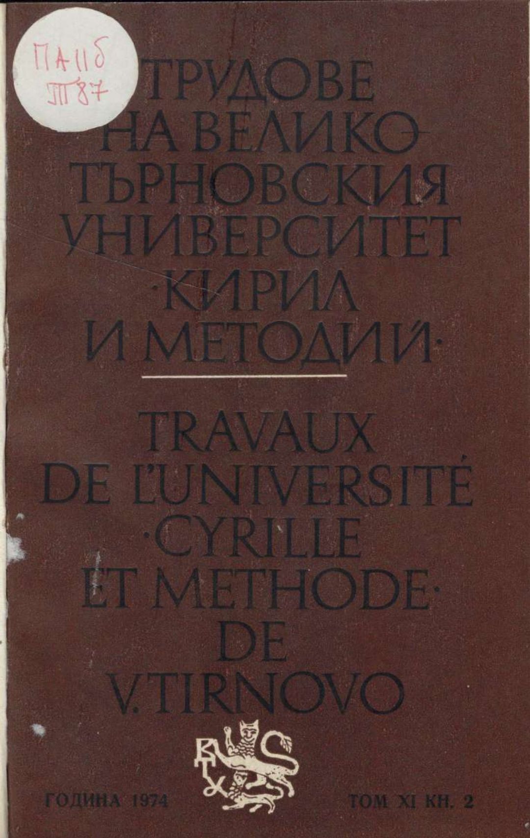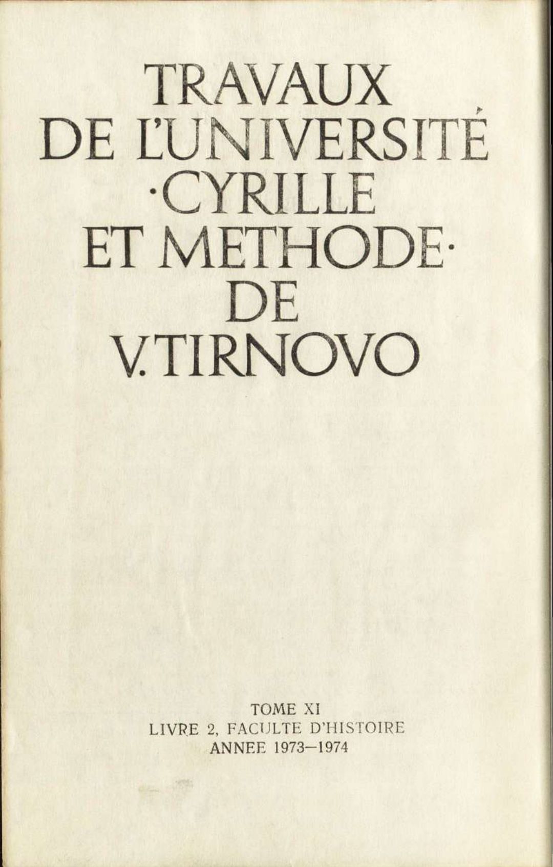 Том 11. Кн. 2. Трудове на Великотърновския университет "Св. св. Кирил и Методий". Исторически факултет = Travaux de L'universite St. St. Cyrille et Methode de V. Tirnovo. Faculte histoire