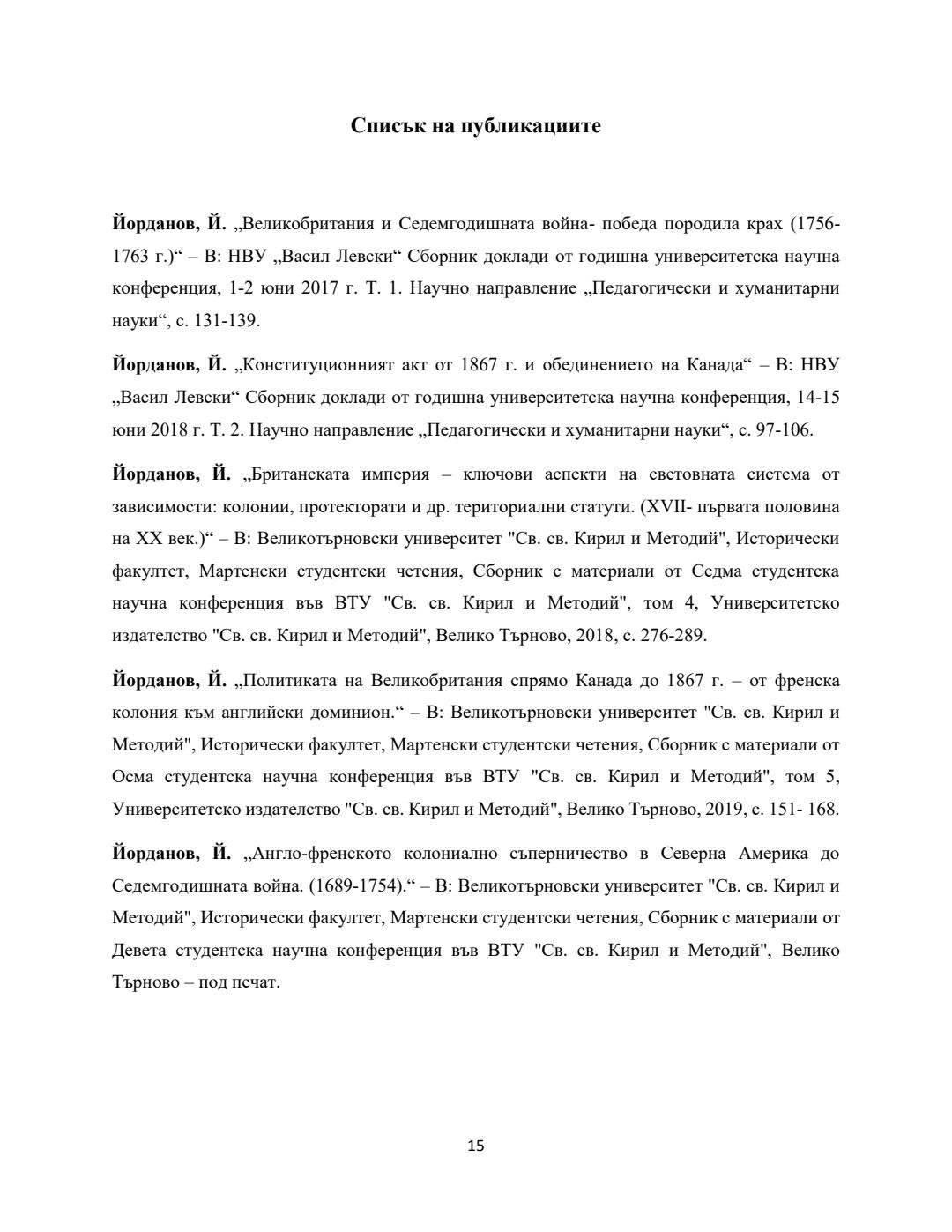 Великобритания в Северна Америка 1756-1867 г. Еволюция на имперската концепция : Автореферат / Йордан Веселинов Йорданов ; Науч. ръководител Валентин Атанасов Спиридонов