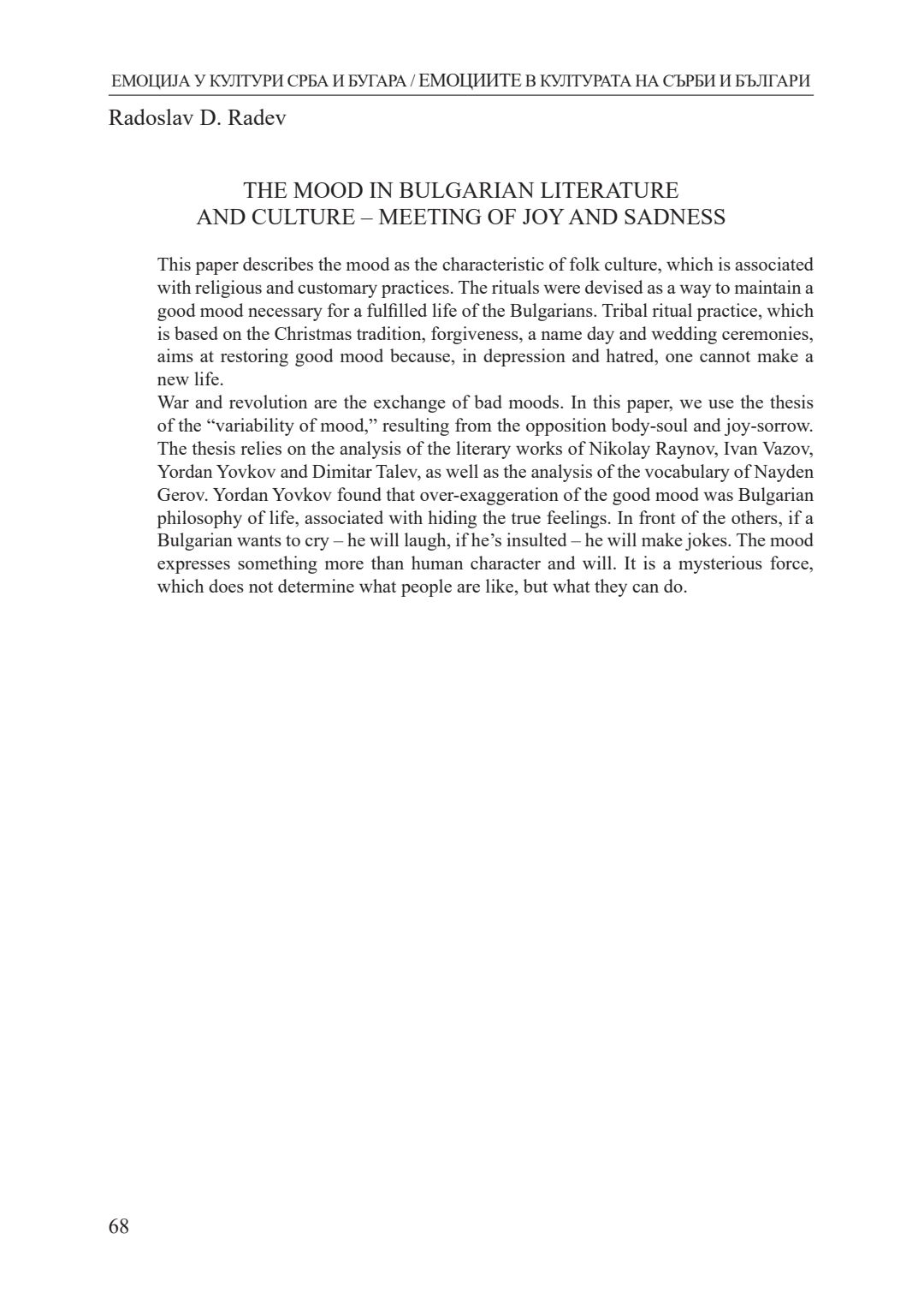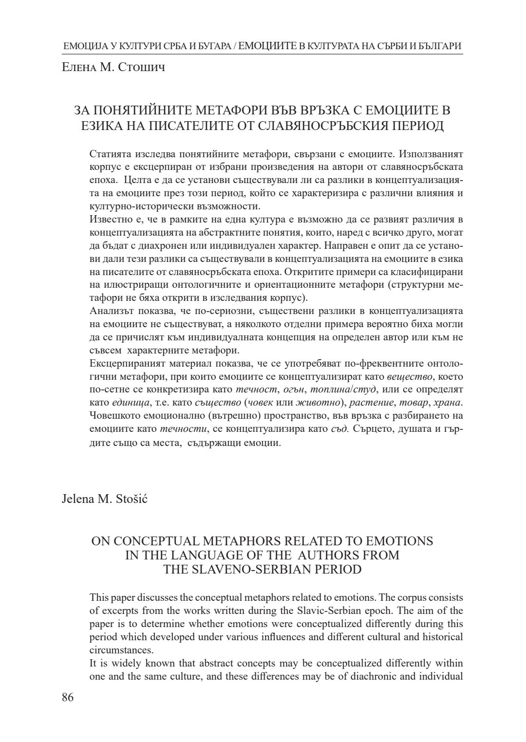 Емоциите в културата на сръби и българи = Eмоције у култури срба и бугара