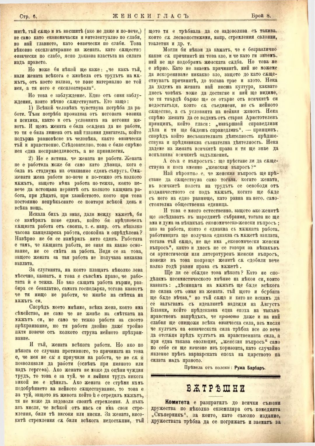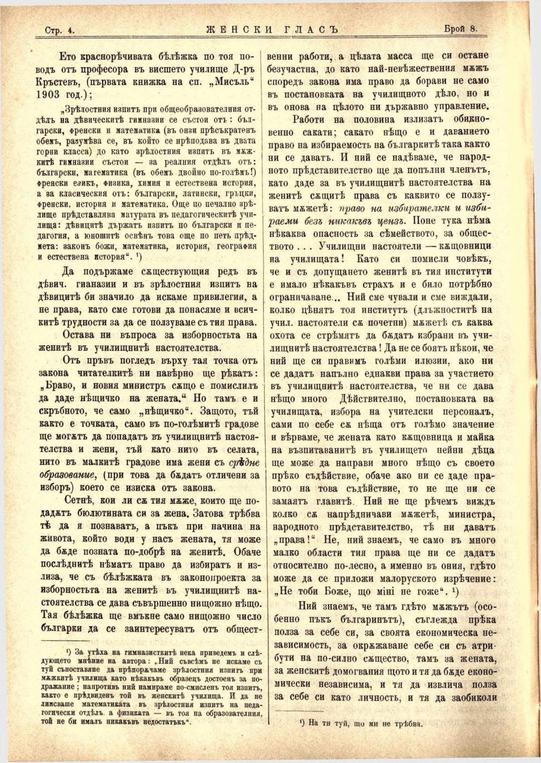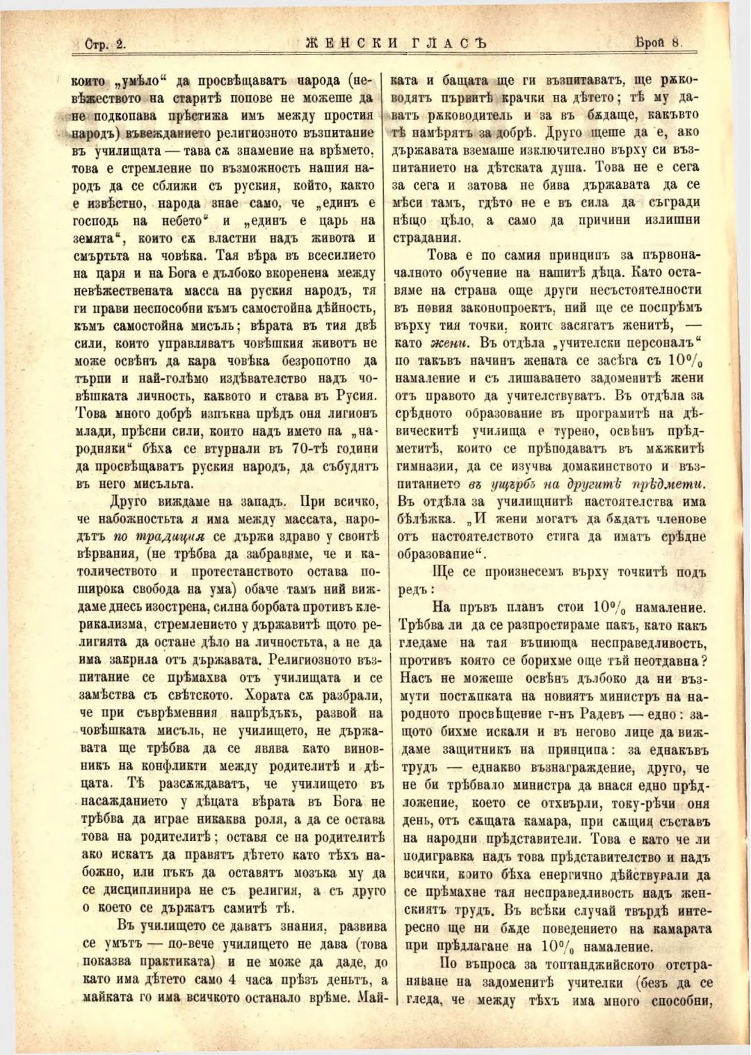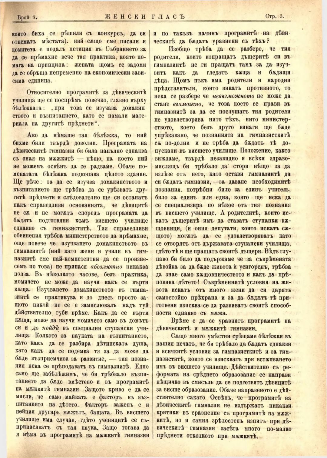 Год. 4, № 8 Женски глас : Орган на българския женски съюз