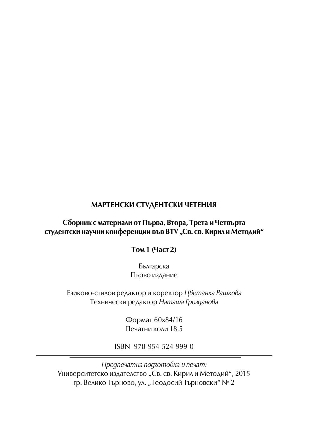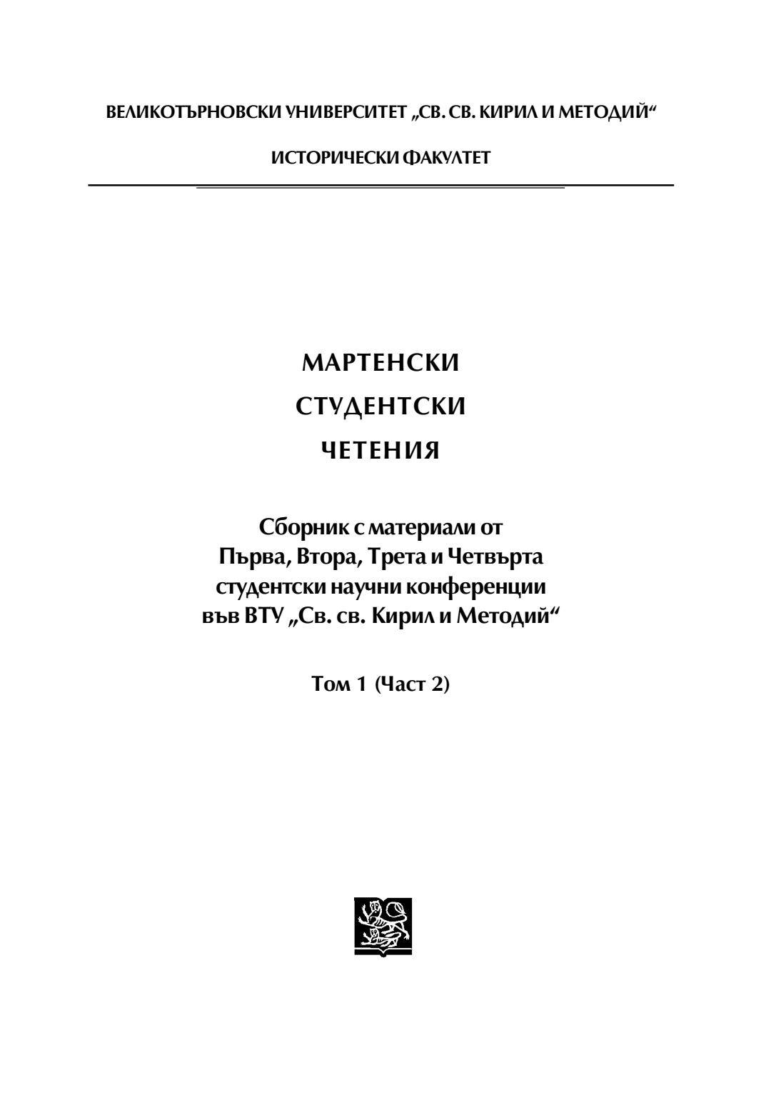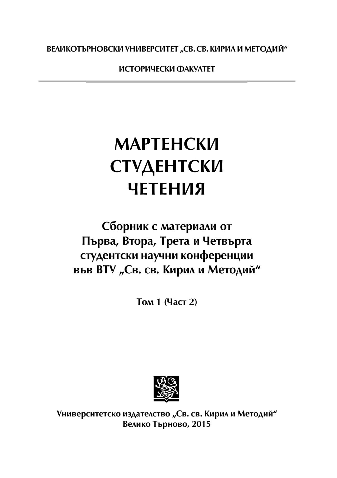 Т. 1, Ч. 1-2. Мартенски студентски четения [Електронен ресурс] : сборник с материали от първа, втора, трета, четвърта студентски научни конференции във ВТУ "Св. св. Кирил и Методий", 2017, Велико Търново