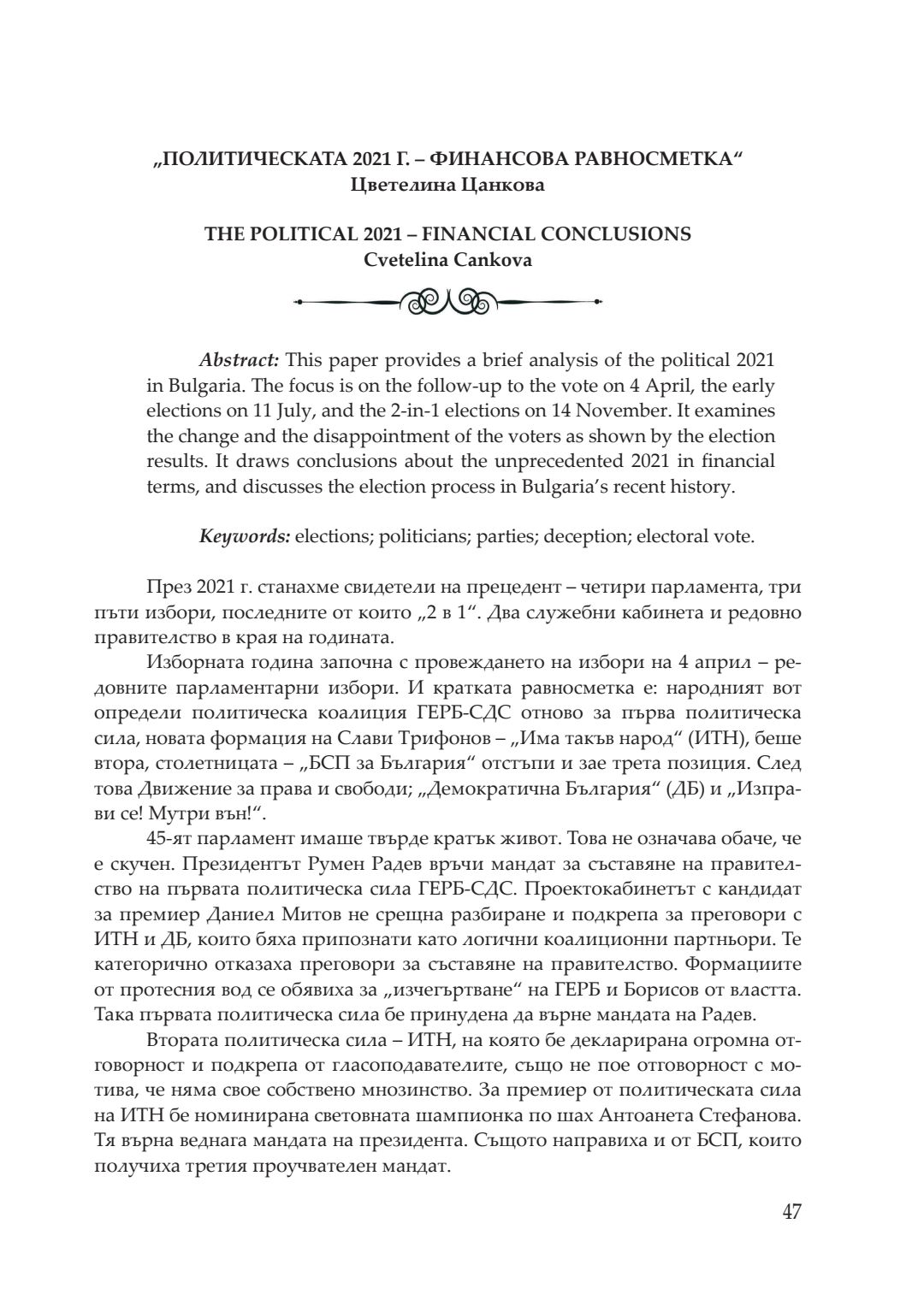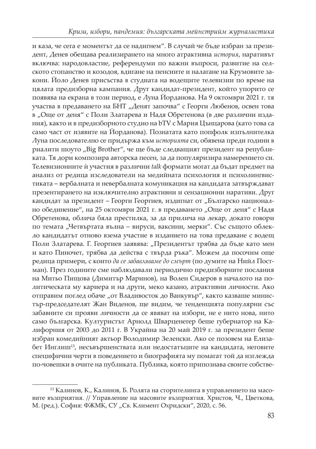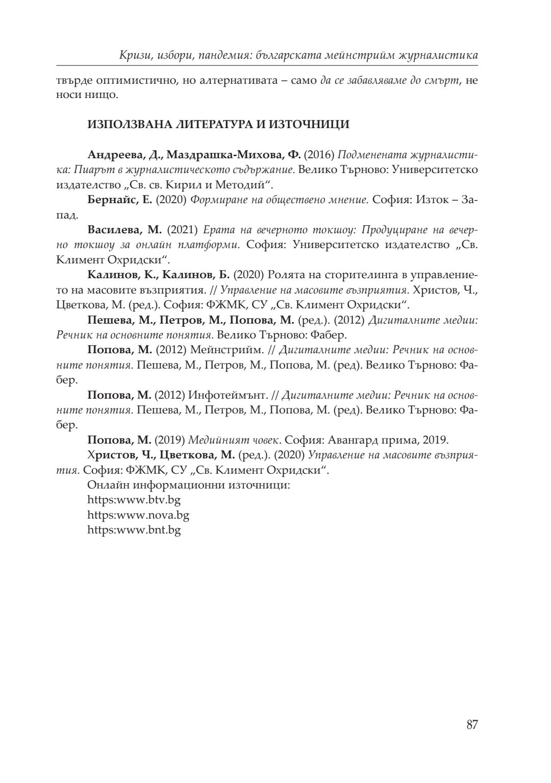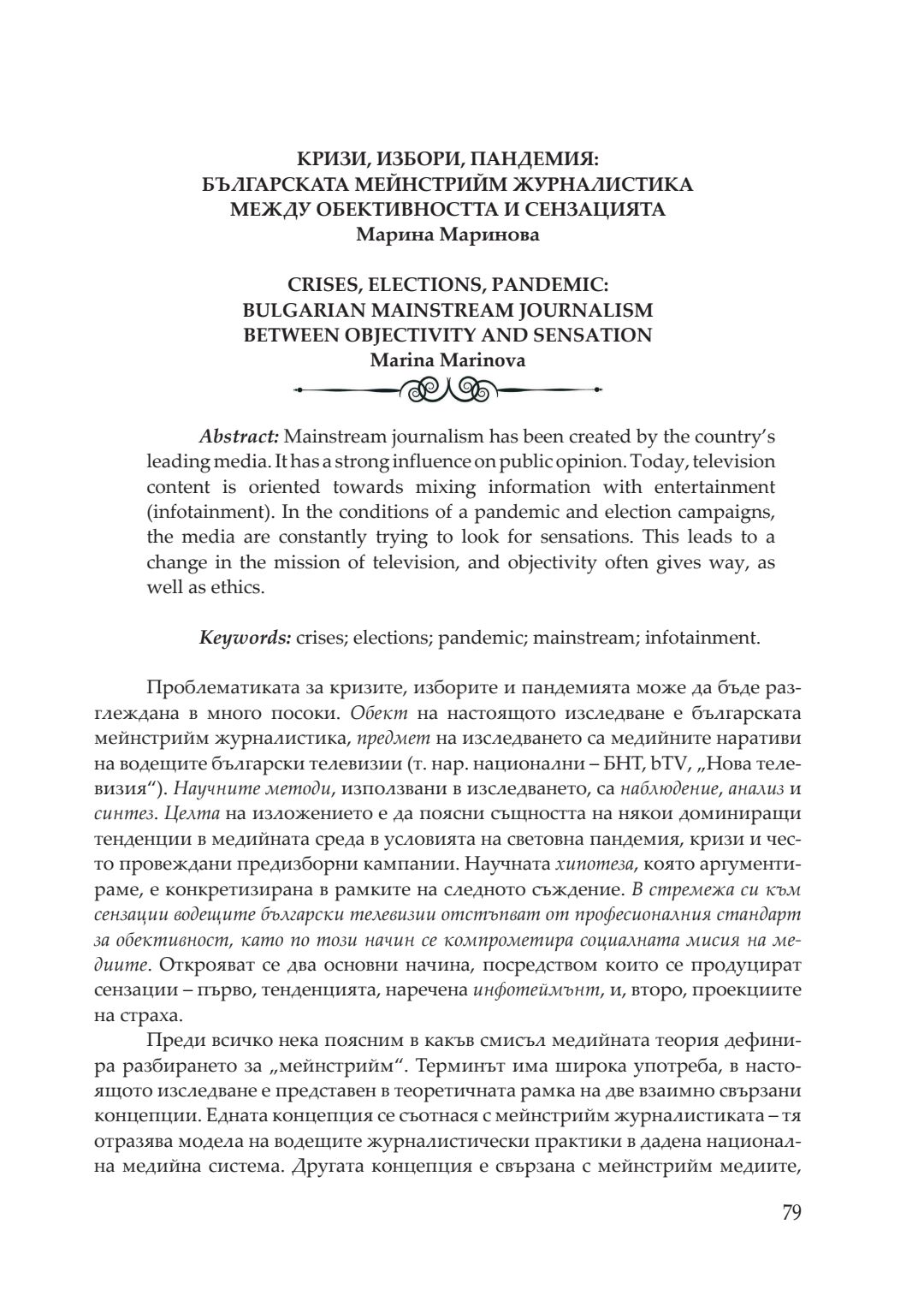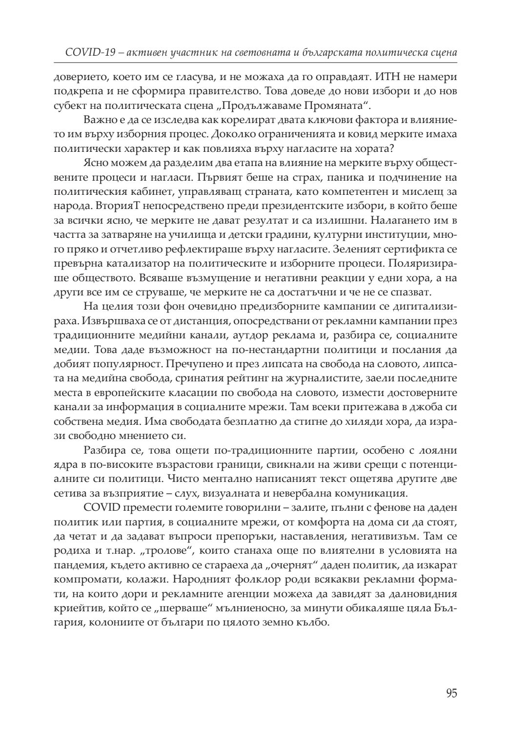 Кризи, избори, пандемия : сборник с доклади от национална кръгла маса, посветена на 20-годишнината на катедра „Политология, социология и културология“, 26–27 ноември 2021 година, Велико Търново. Т. 1