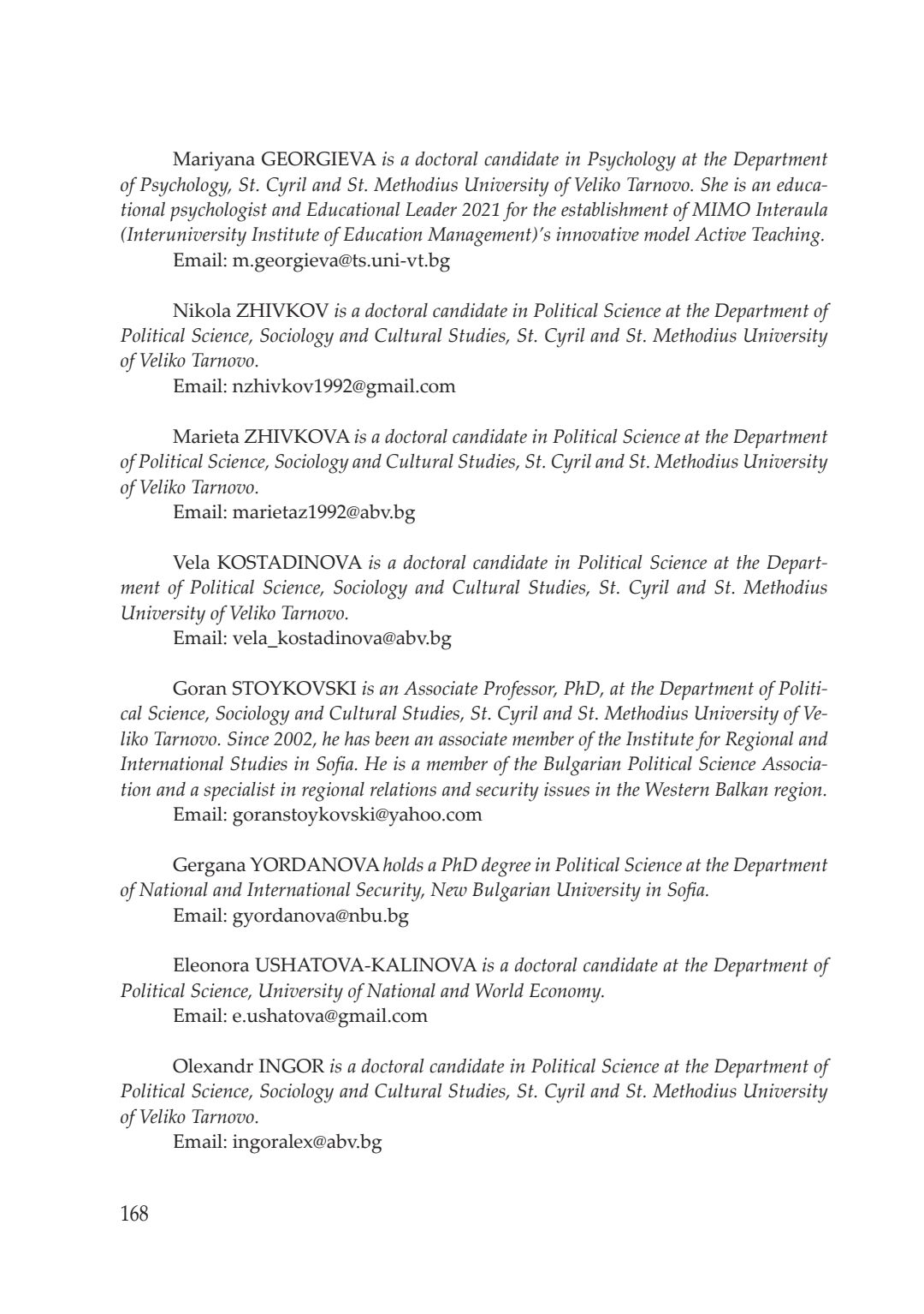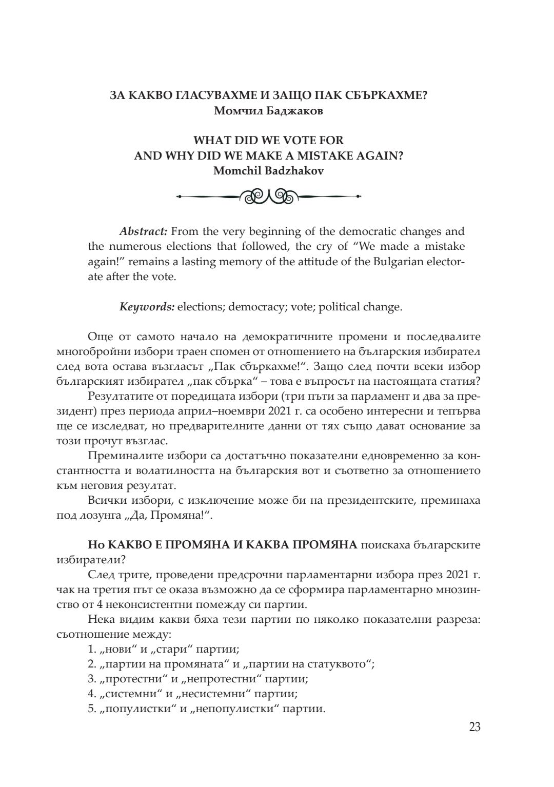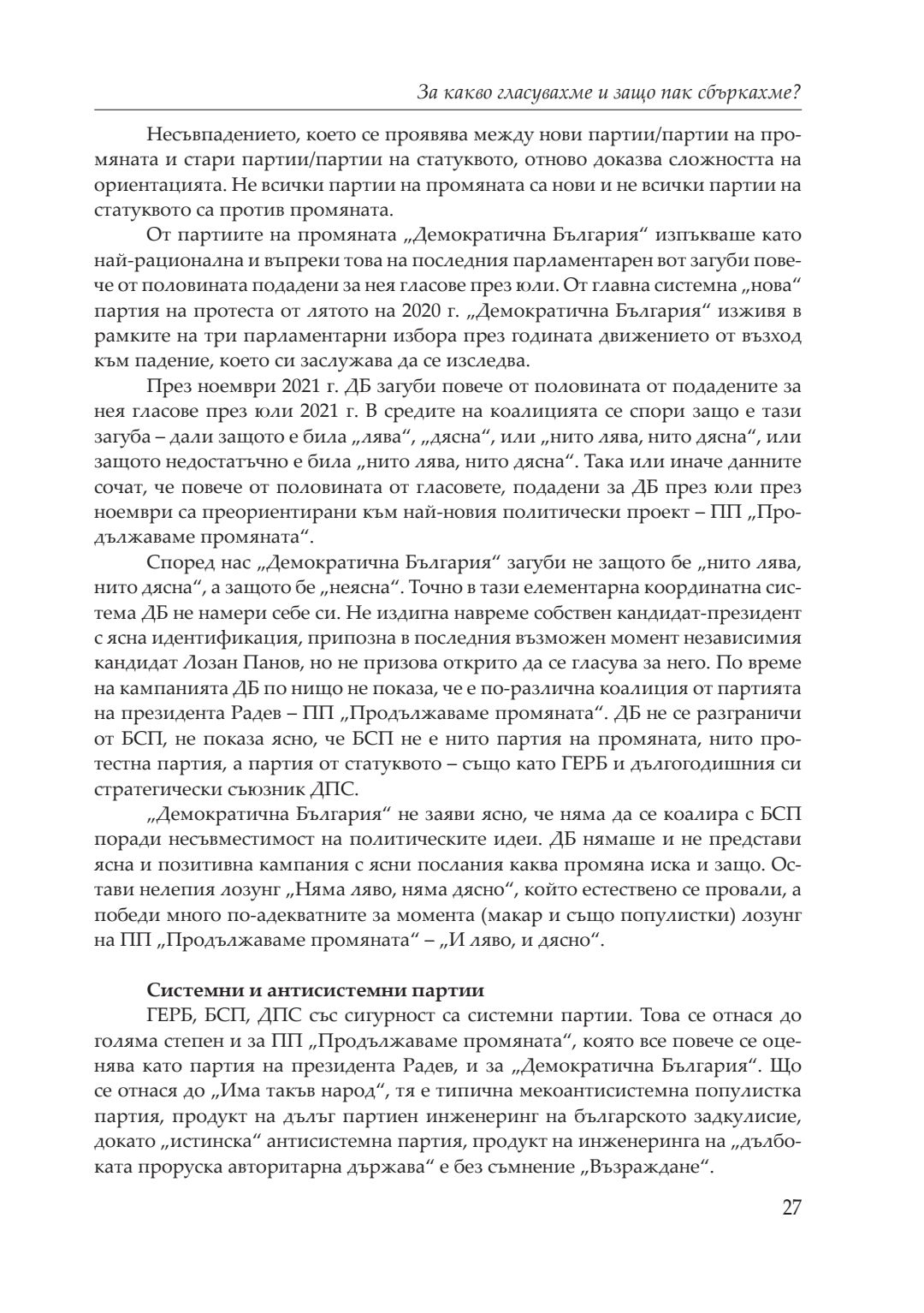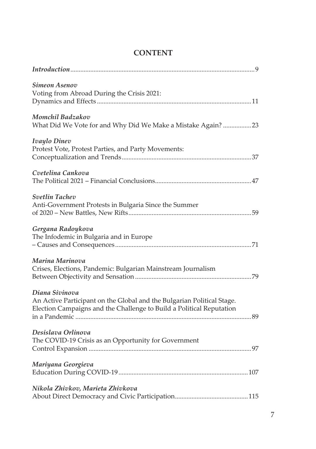 Кризи, избори, пандемия : сборник с доклади от национална кръгла маса, посветена на 20-годишнината на катедра „Политология, социология и културология“, 26–27 ноември 2021 година, Велико Търново. Т. 1